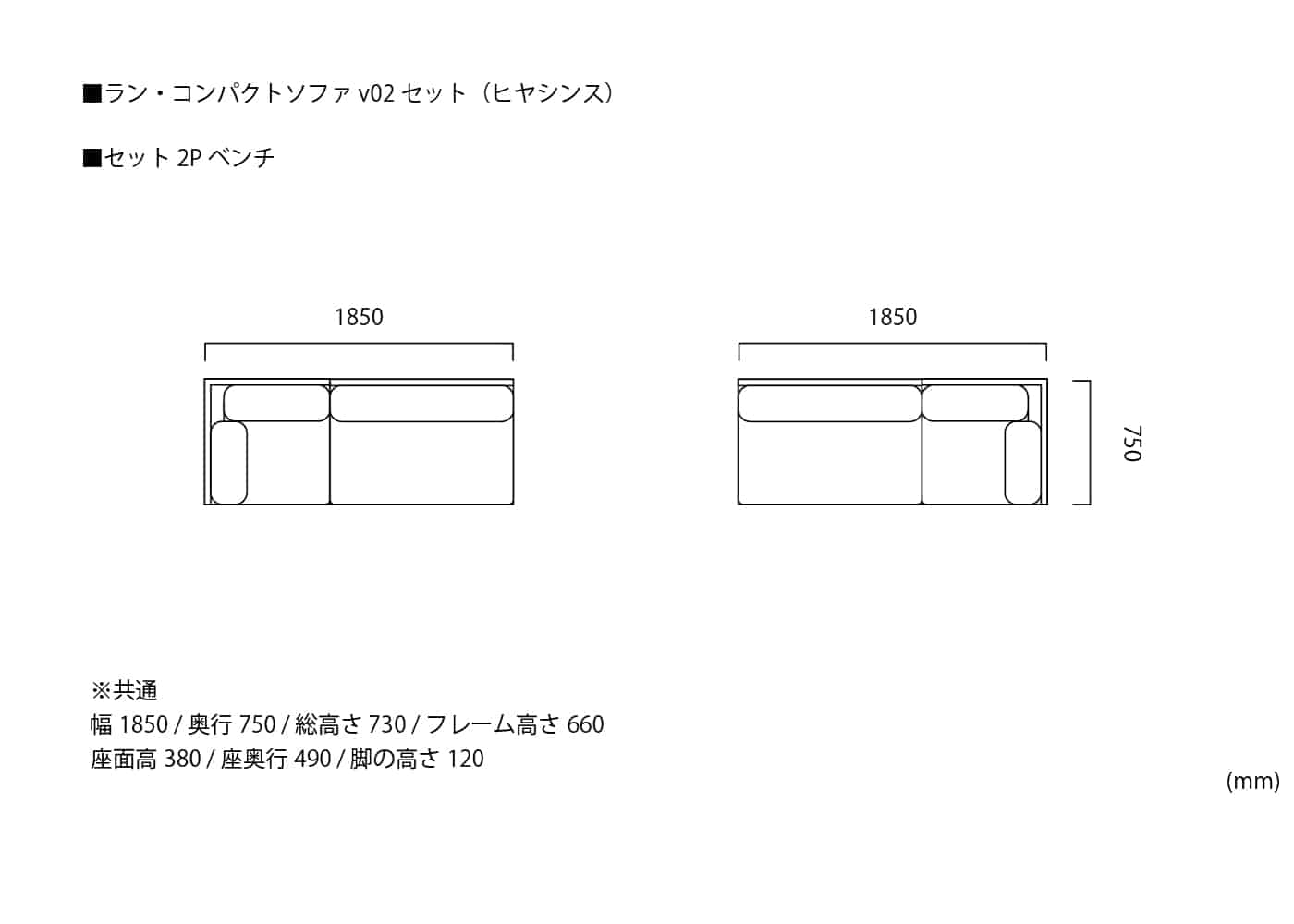 「ゆとりある生活動線の実現」と「様々な座りかたで寛げる」を追求したラン・コンパクトソファのv02セット。