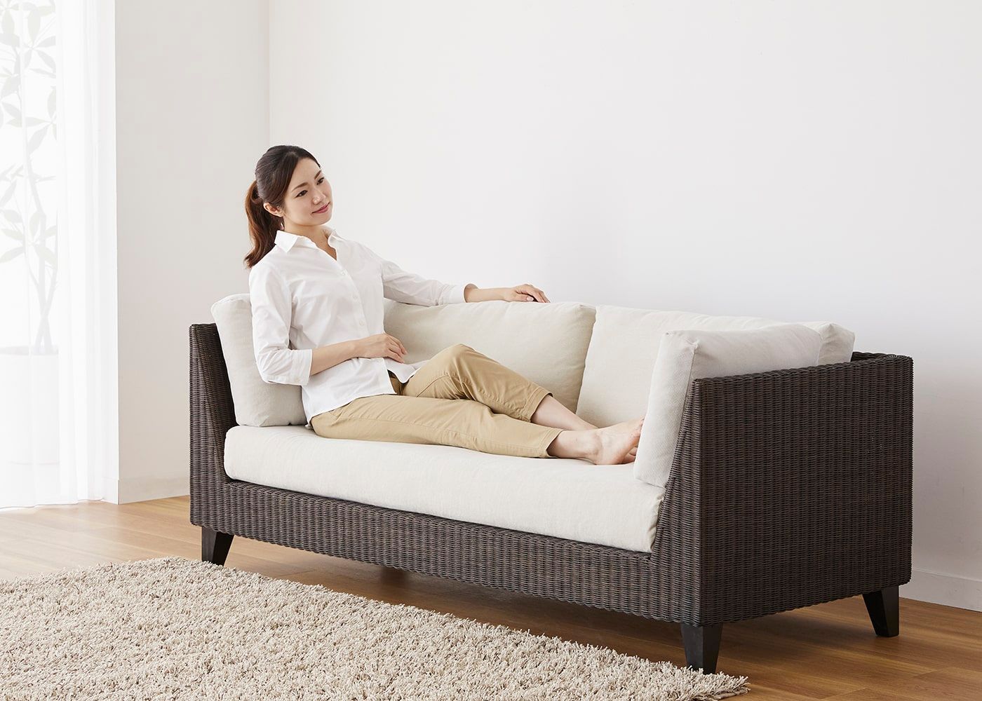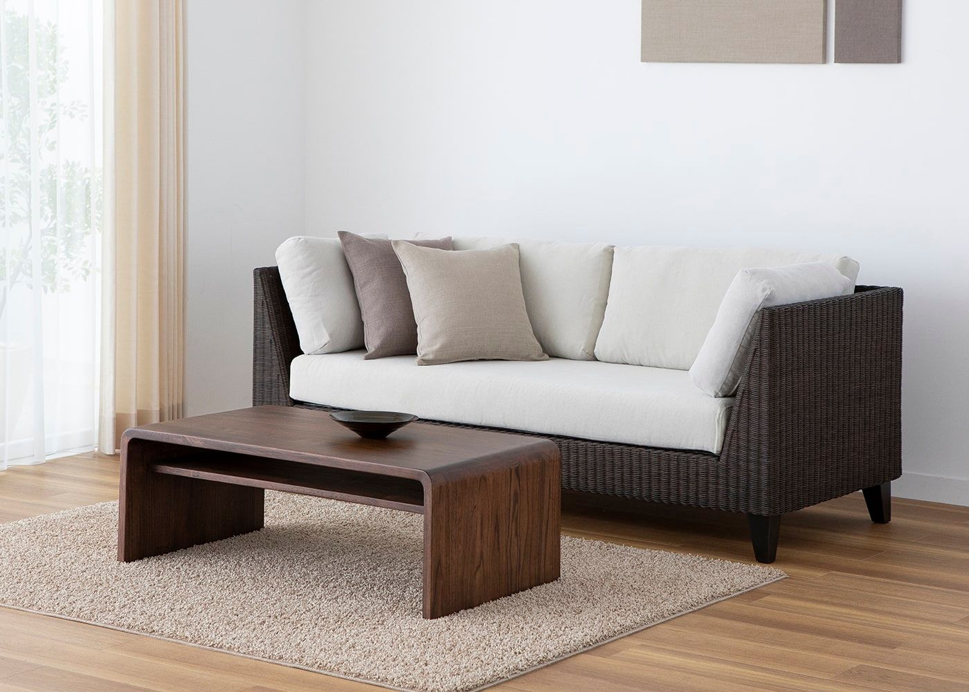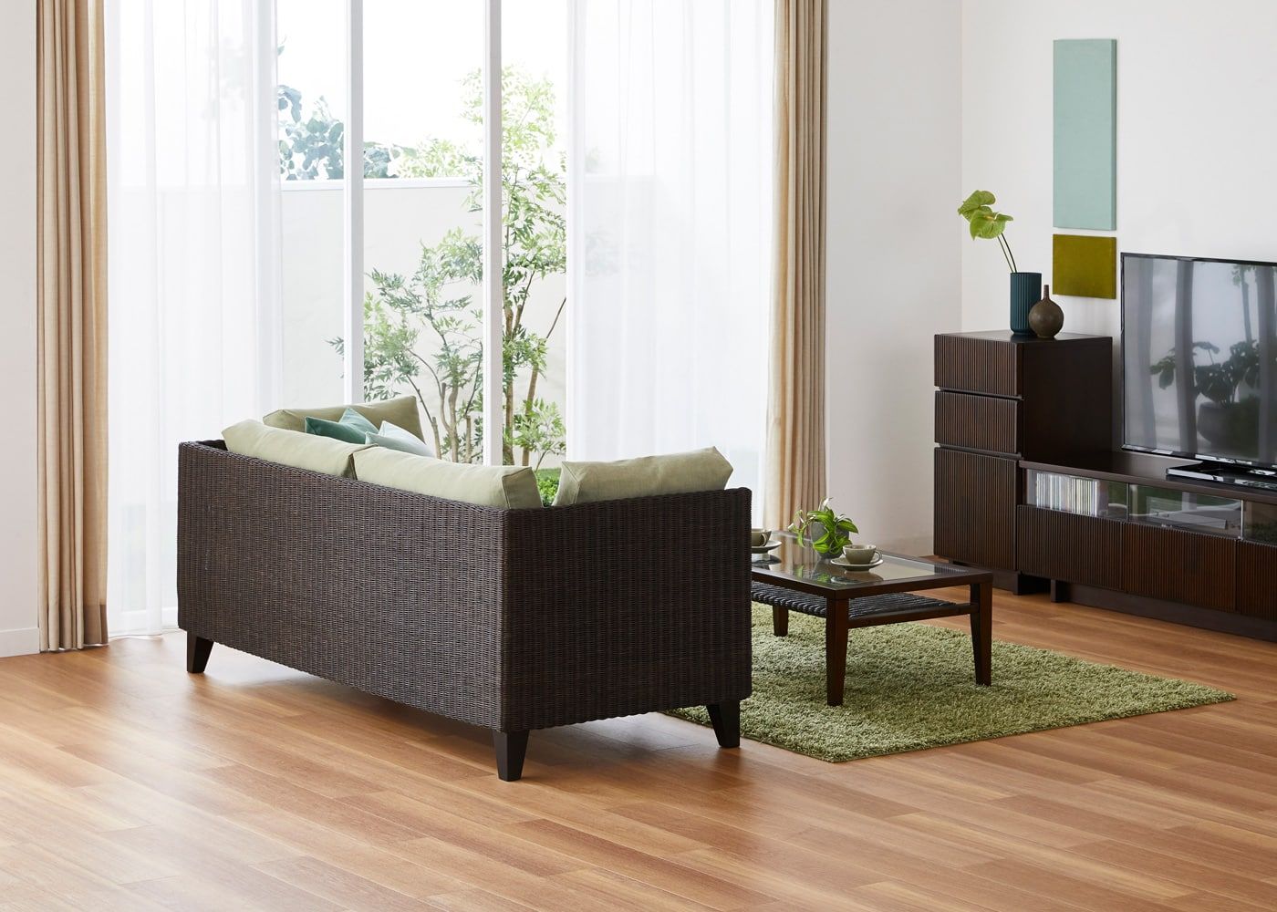 「ゆとりある生活動線の実現」と「様々な座りかたで寛げる」を追求したラン・コンパクトソファ。 両アームで体を預けてリラックスでき、省スペースに収まるコンパクトサイズとラタンの風合いが魅力の、アジアの風を感じるソファです。