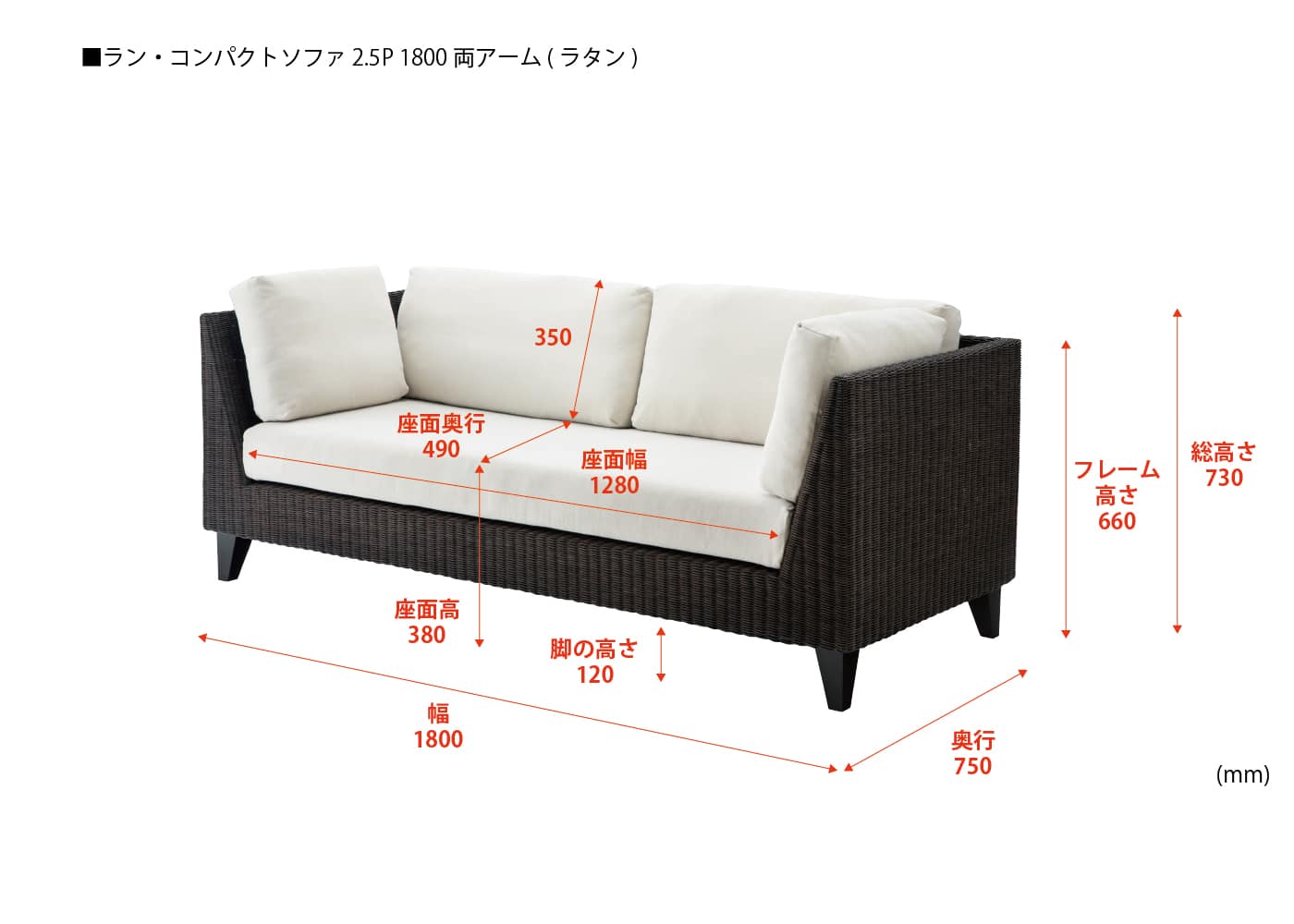 幅 1800 / 奥行 750 / 高さ 730 / 座面高 380 / 座奥行 490