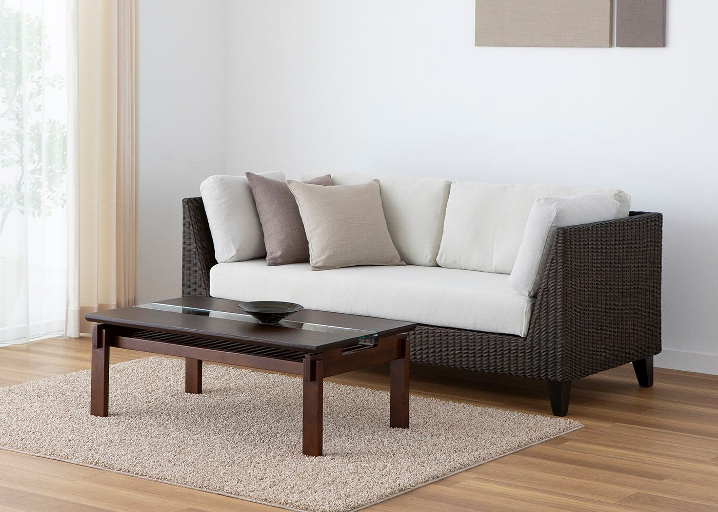 ローテーブルは1000 高さ330タイプ、ソファは幅1800mmの2.5人掛け
