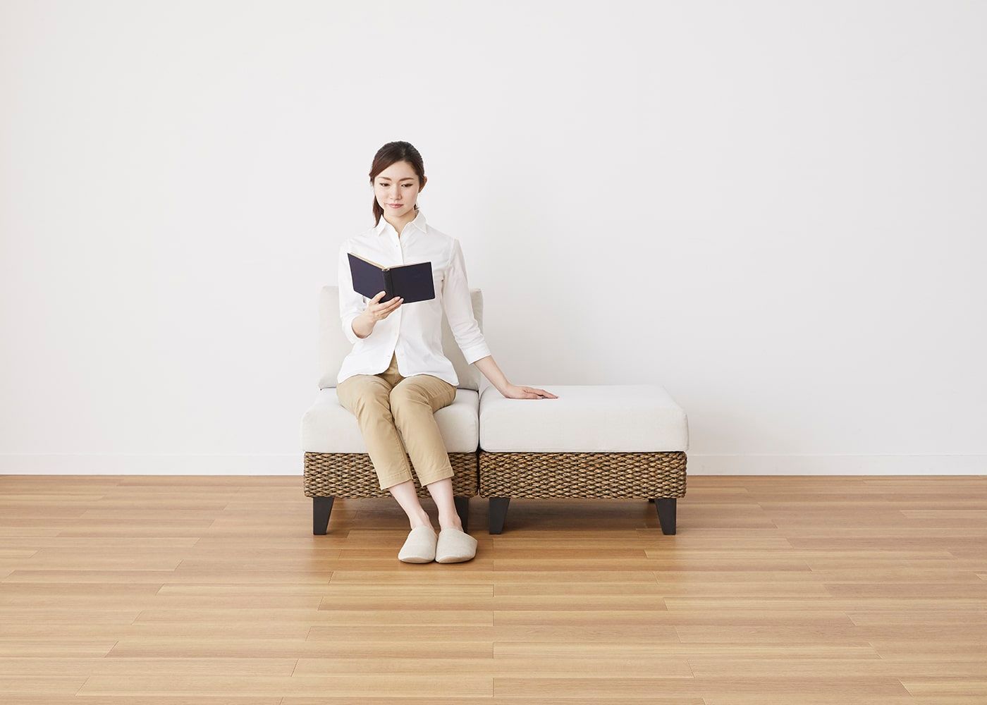 オットマンをソファ前に移動すれば、脚を伸ばしてリラックスすることができます。くつろぎたい方向に合わせて自由に組み合わせたり、オットマンを空間のアクセントとして取り入れるのもおすすめです。