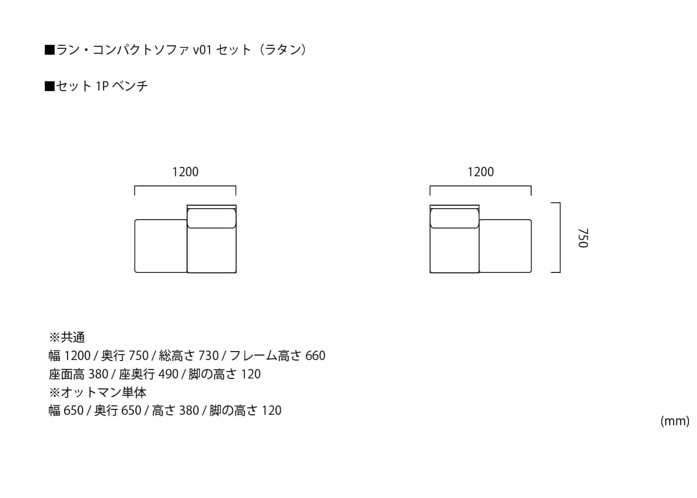 幅1200 / 奥行750 / 高さ730 / 座面高380 / 座奥行 490