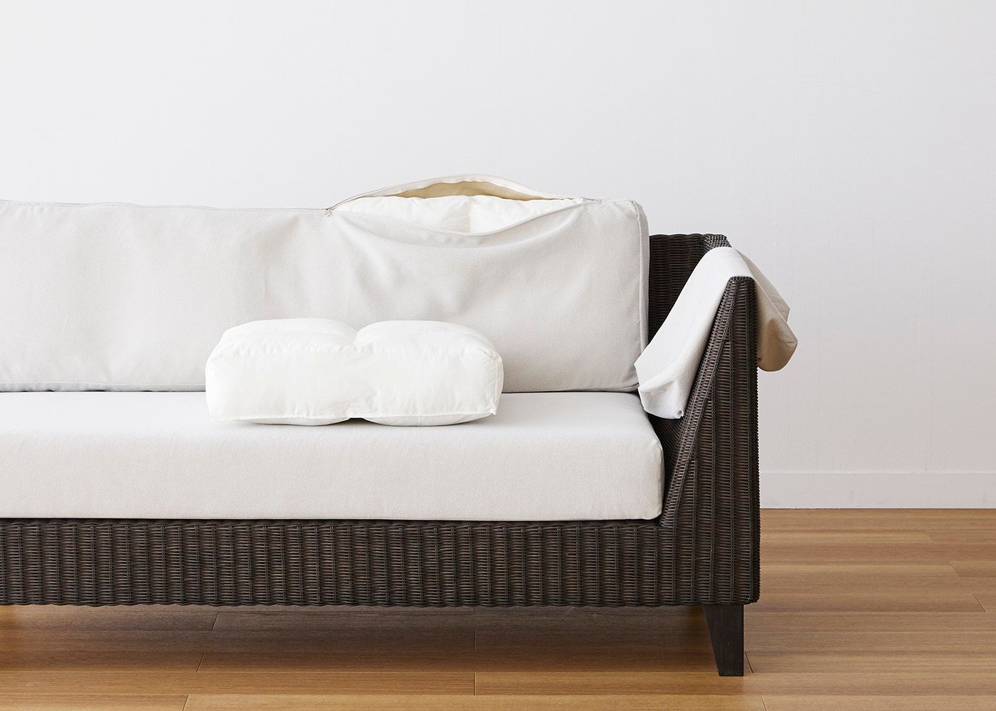 バッククッション、ボトムクッション、サイドクッションのカバーはファスナー式で、カバーの取り外しや交換が可能です。ご自宅でカバーのお洗濯ができます。