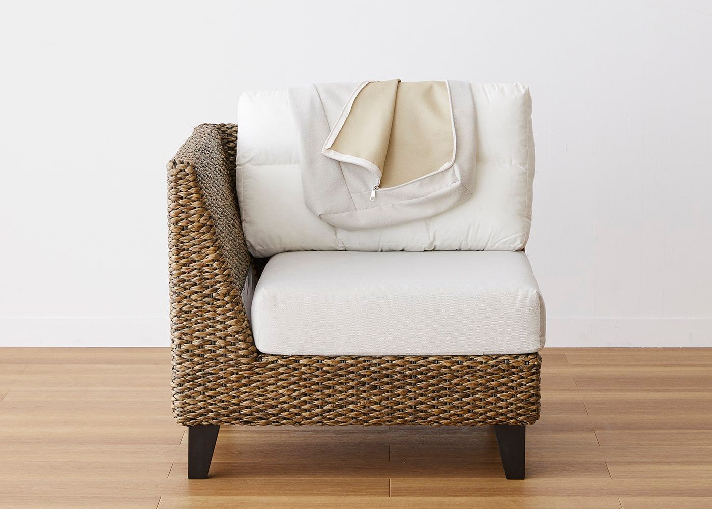 バッククッション、ボトムクッション、サイドクッションのカバーはファスナー式で、カバーの取り外しや交換が可能です。ご自宅でカバーのお洗濯ができます。