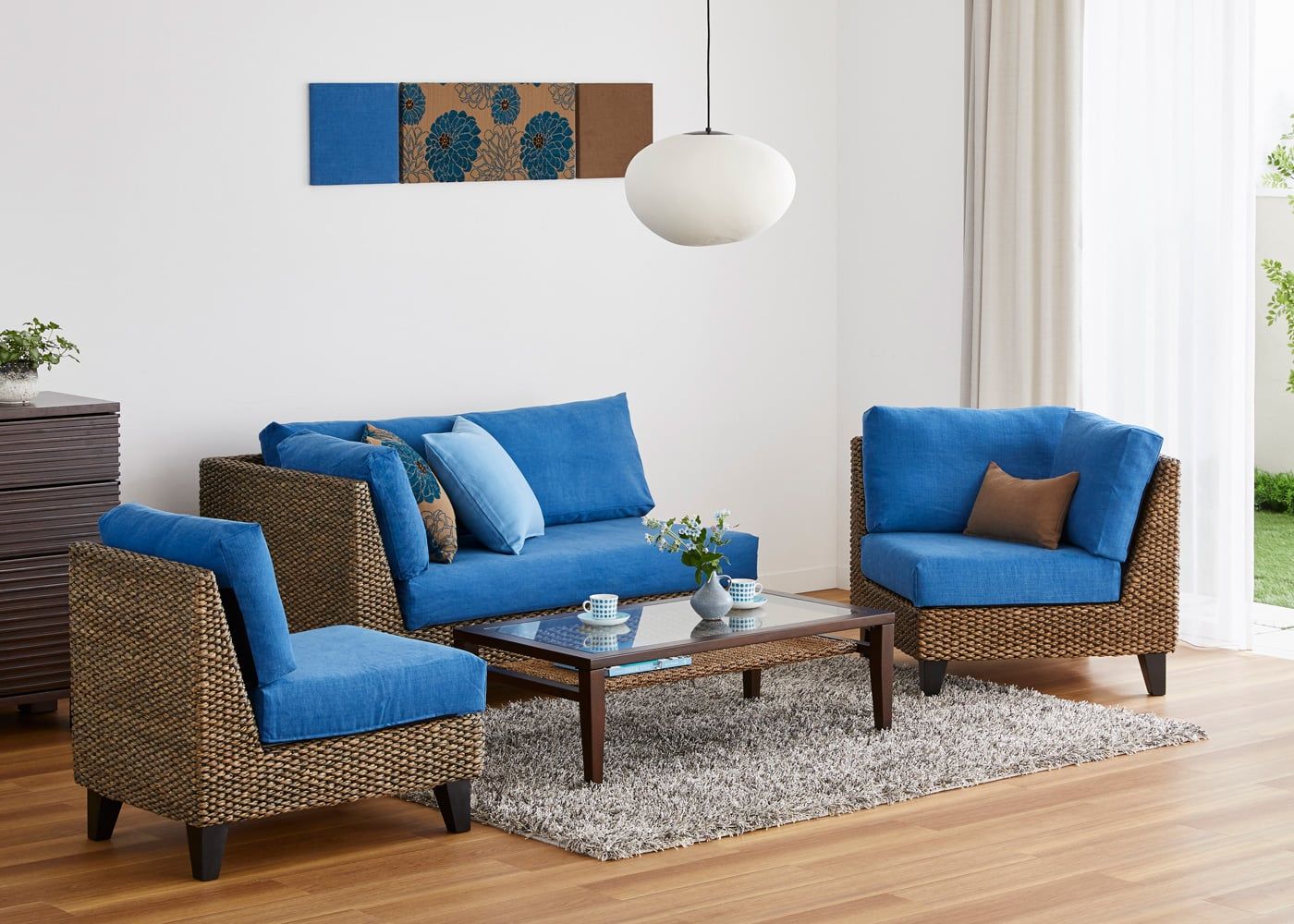 各パーツをセパレートして使えば3~4名で寛ぎやすくなります。海のような爽やかな部屋で過ごしたい時は「