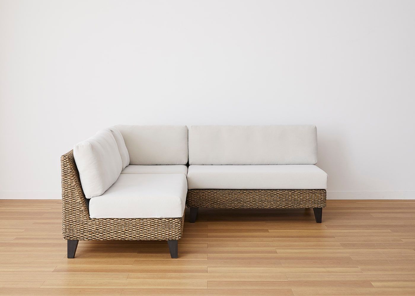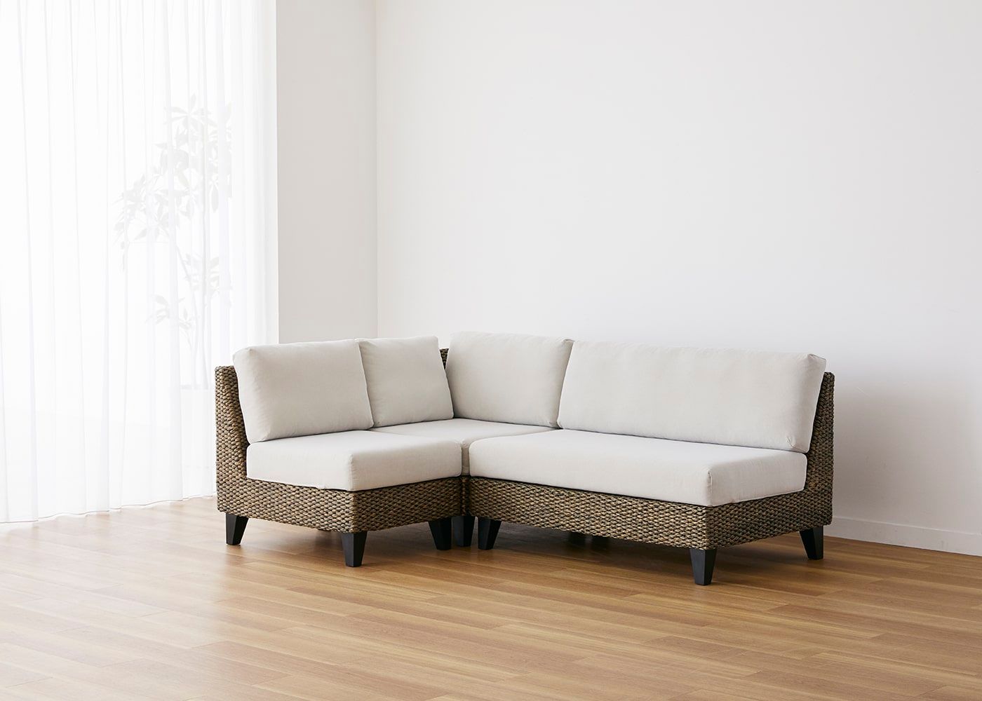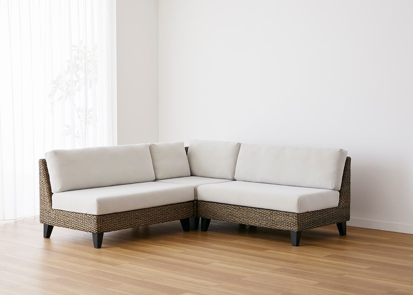 コーナーソファセット 2Pベンチ×2は、コーナーソファで過ごしながら開放的な部屋づくりをしたい方に最適です。アームレスなデザインは視覚的に広がりを感じさせ、自然な流れで部屋全体を広く見せる効果があります。