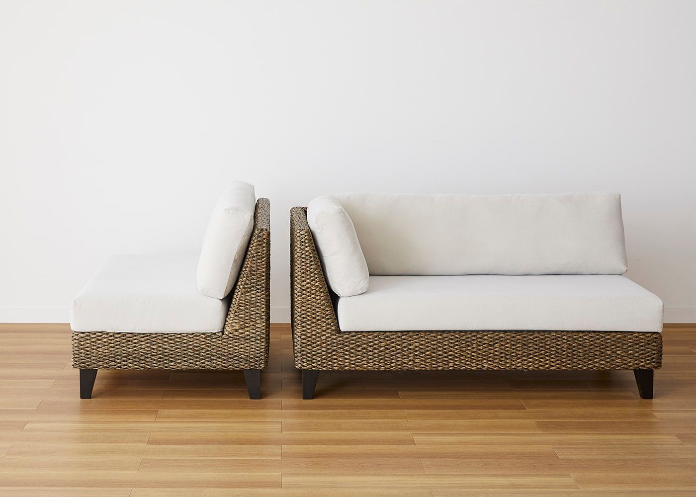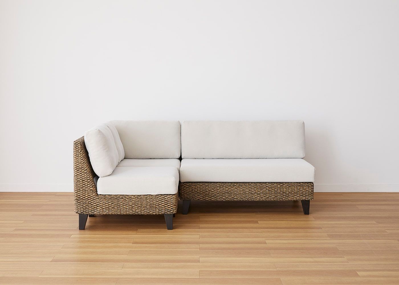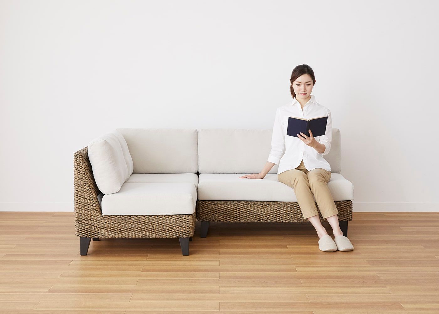 コーナーソファセット 2Pベンチ×2は、コーナーソファで過ごしながら開放的な部屋づくりをしたい方に最適です。アームレスなデザインは視覚的に広がりを感じさせ、自然な流れで部屋全体を広く見せる効果があります。