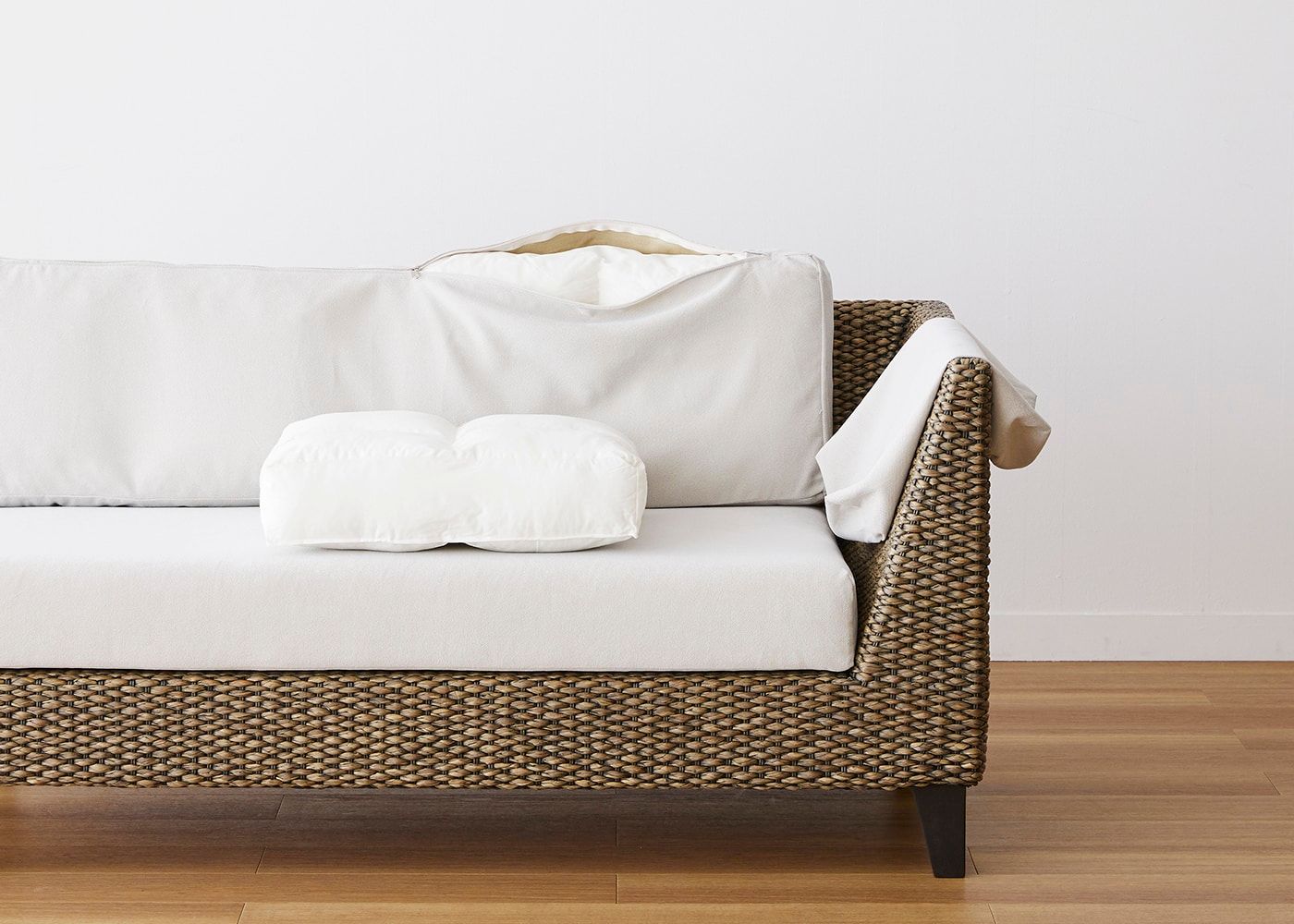 バッククッション、ボトムクッション、サイドクッションのカバーはファスナー式で、カバーの取り外しや交換が可能です。ご自宅でカバーのお洗濯ができます。