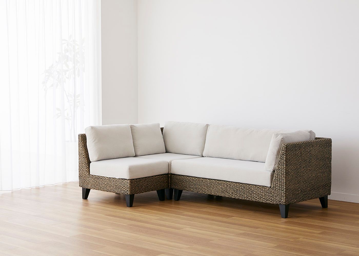 コーナーソファセット 2P左アーム+1Pベンチ:斜め前