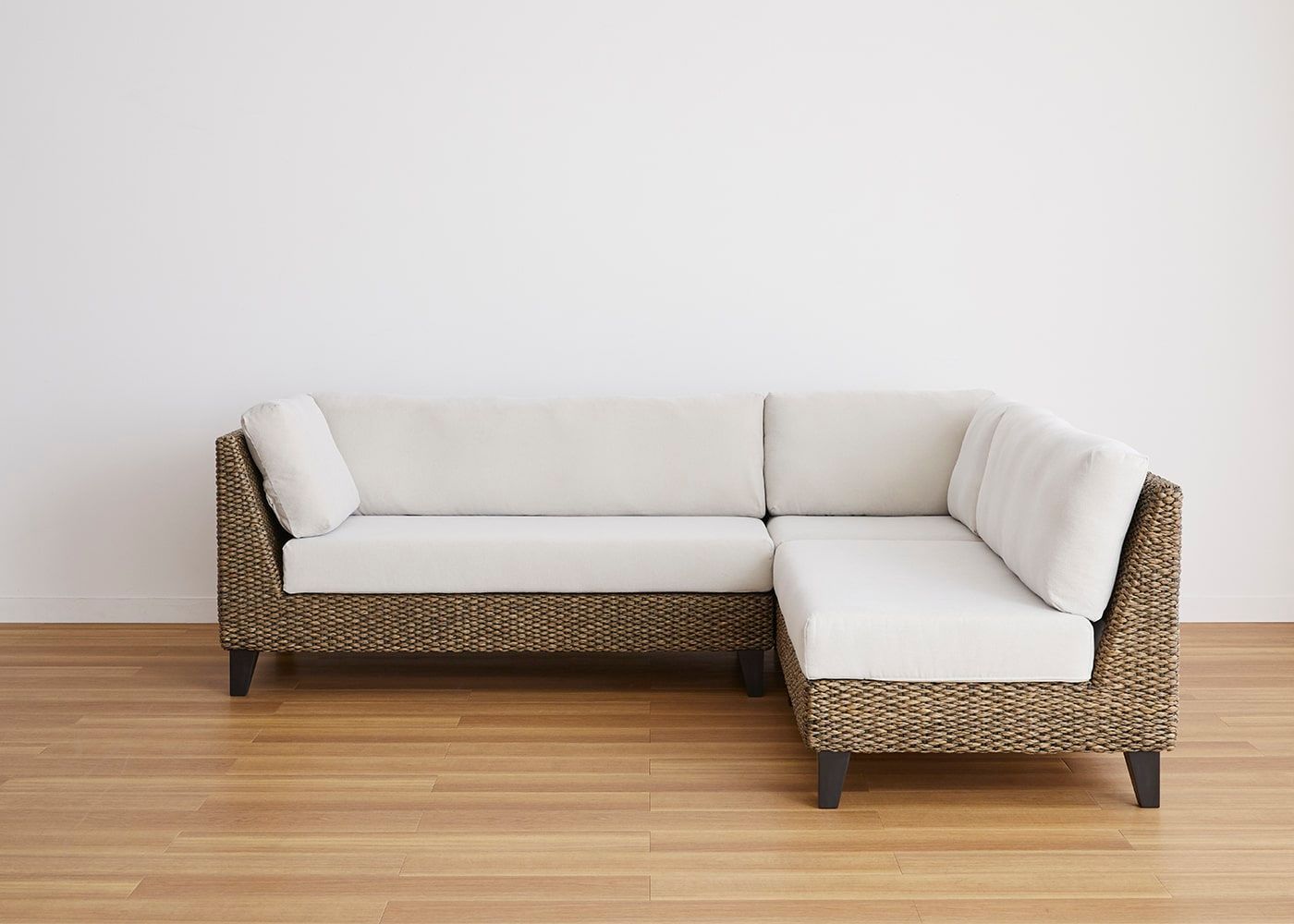 コーナーソファセット 2P右アーム+1Pベンチ:斜め前