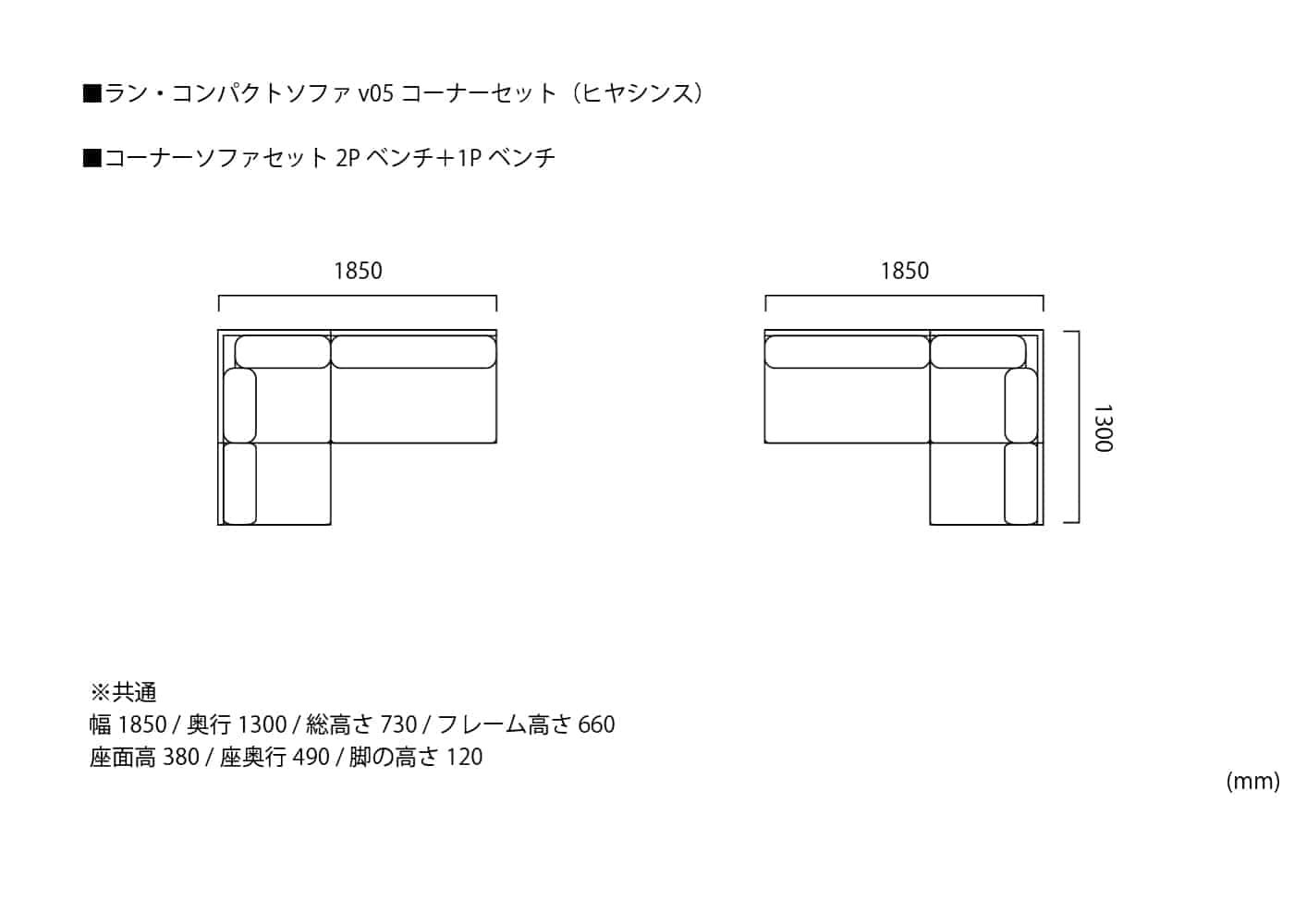 幅1850 / 奥行1300 / 高さ730 / 座面高380 / 座奥行490