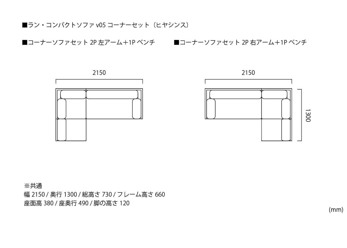 幅2150 / 奥行1300 / 高さ730 / 座面高380 / 座奥行490