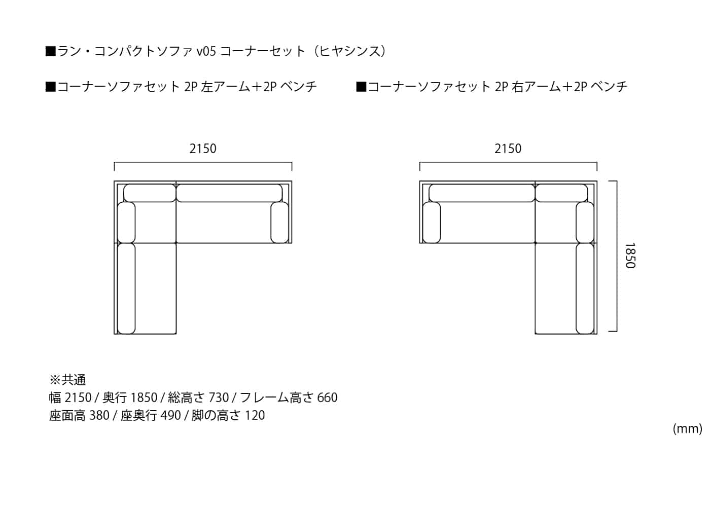 幅2150 / 奥行1850 / 高さ730 / 座面高380 / 座奥行490