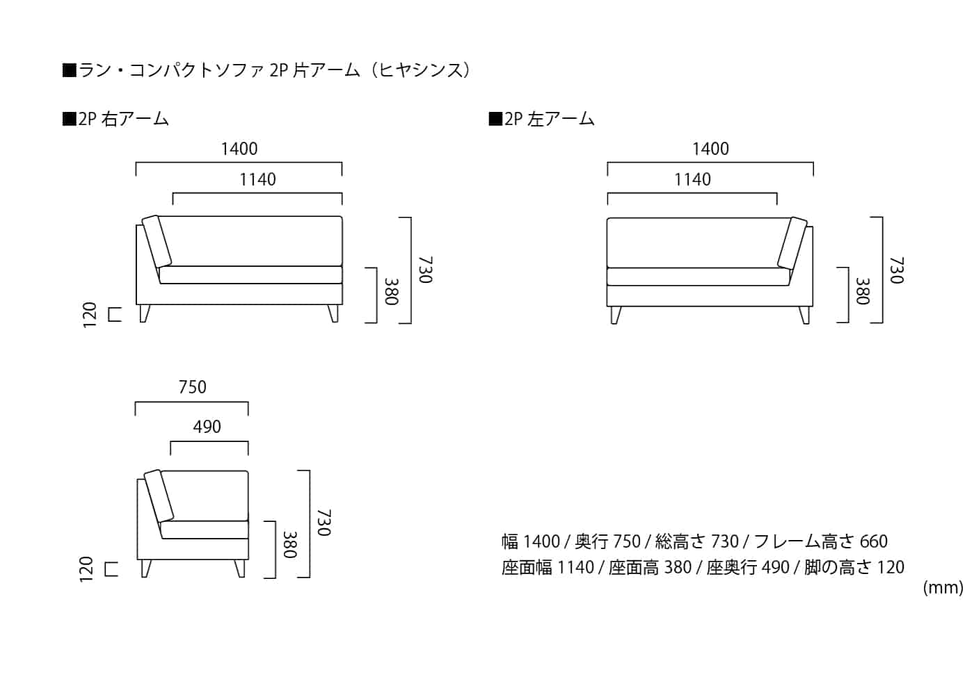 幅1400 / 奥行750 / 高さ730 / 座面高380 / 座奥行490