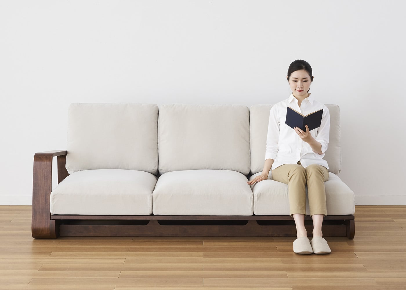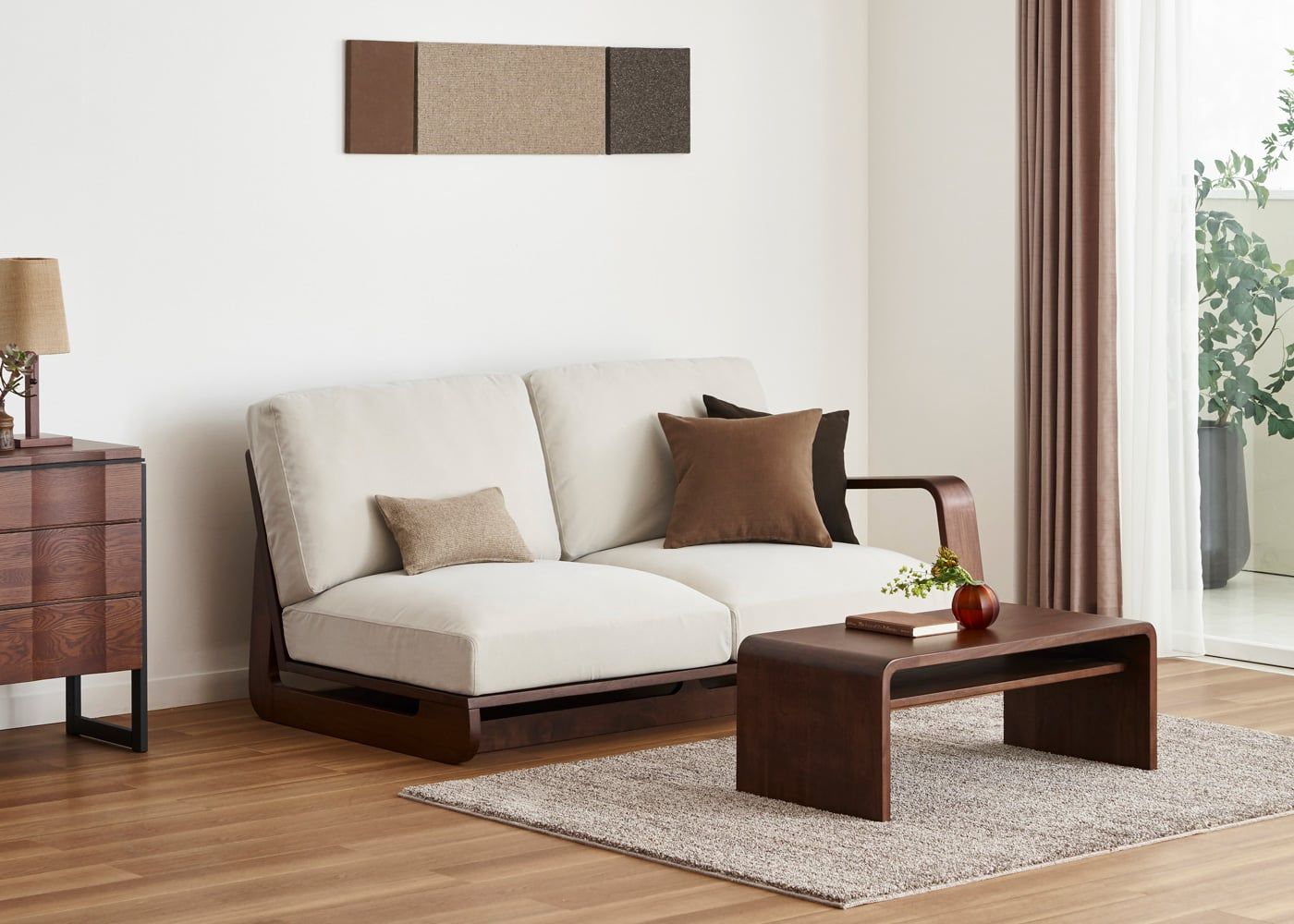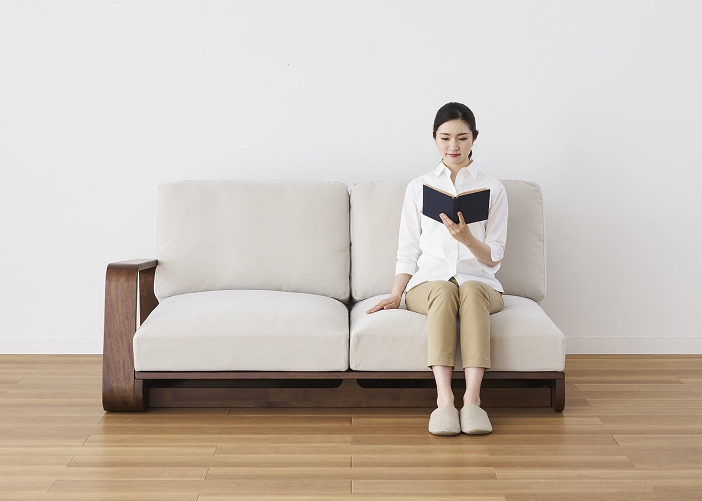 a.flatのソファはカバーの着せ替えができるのが魅力。約100色のファブリックから素材や色を選んで、あなただけのカラーコーディネートをお楽しみください。(別売、受注生産)