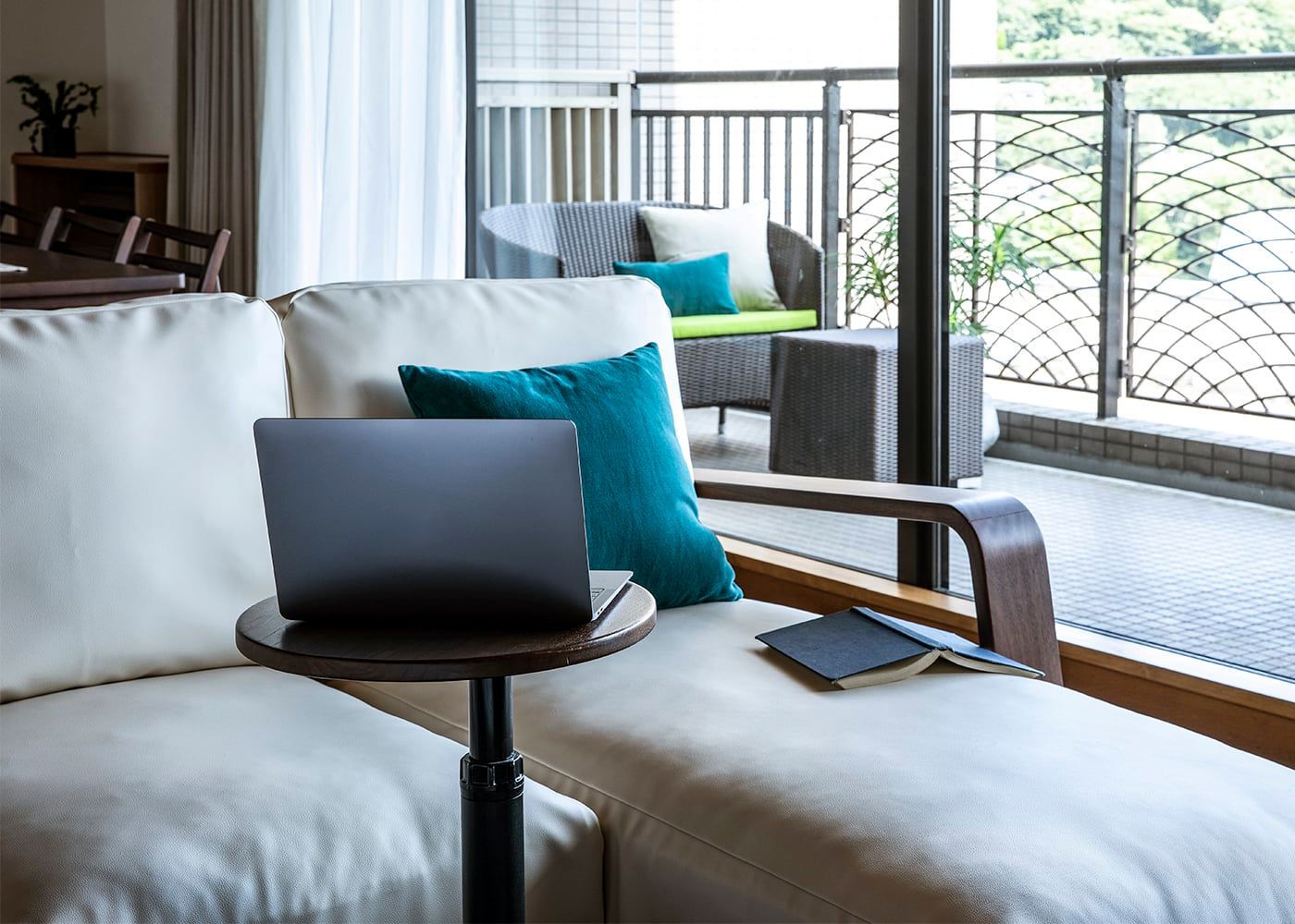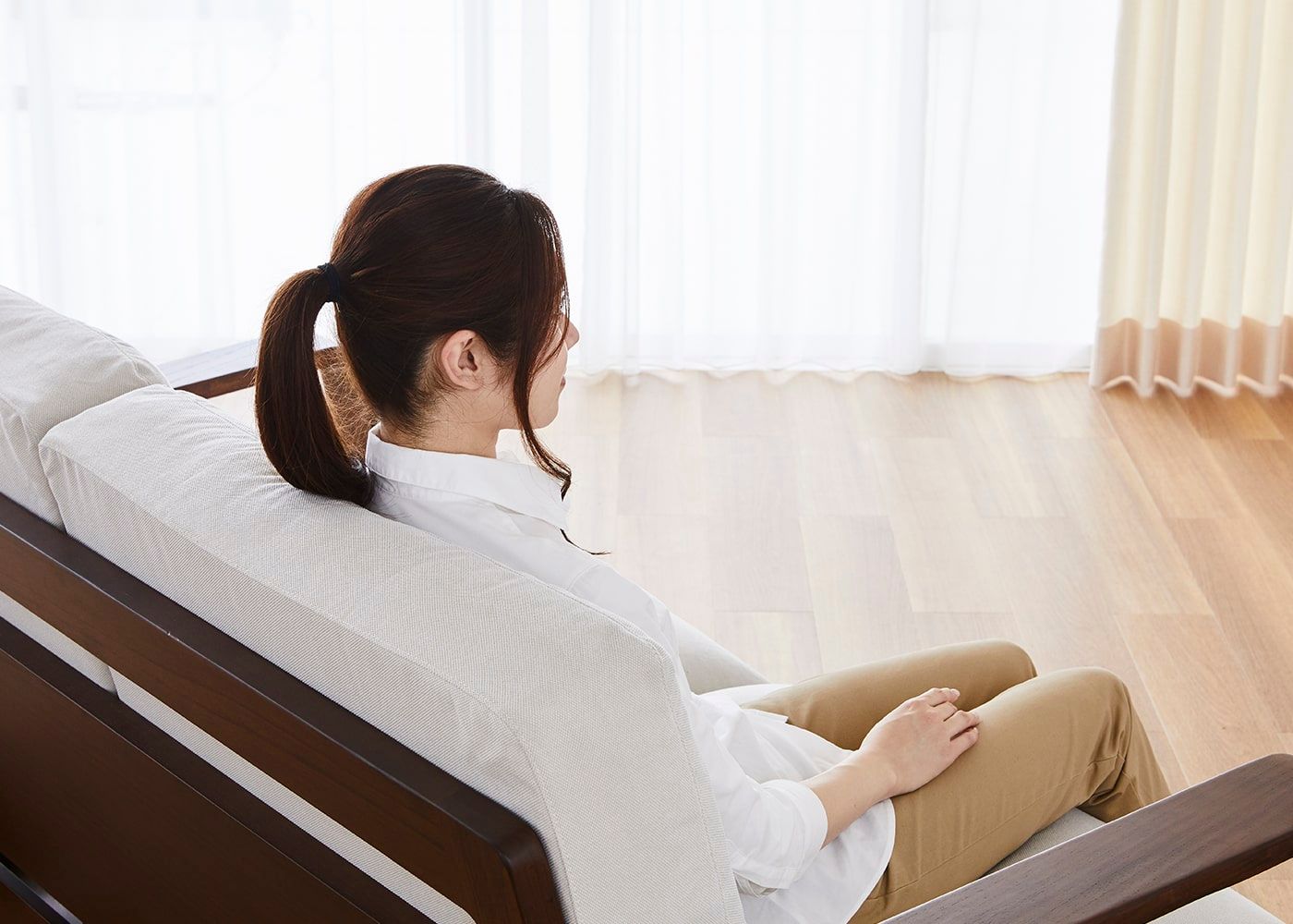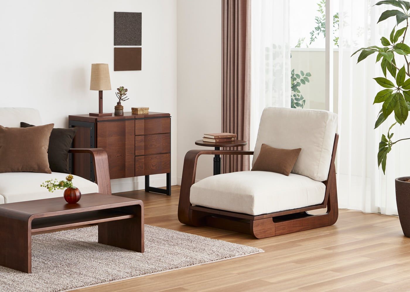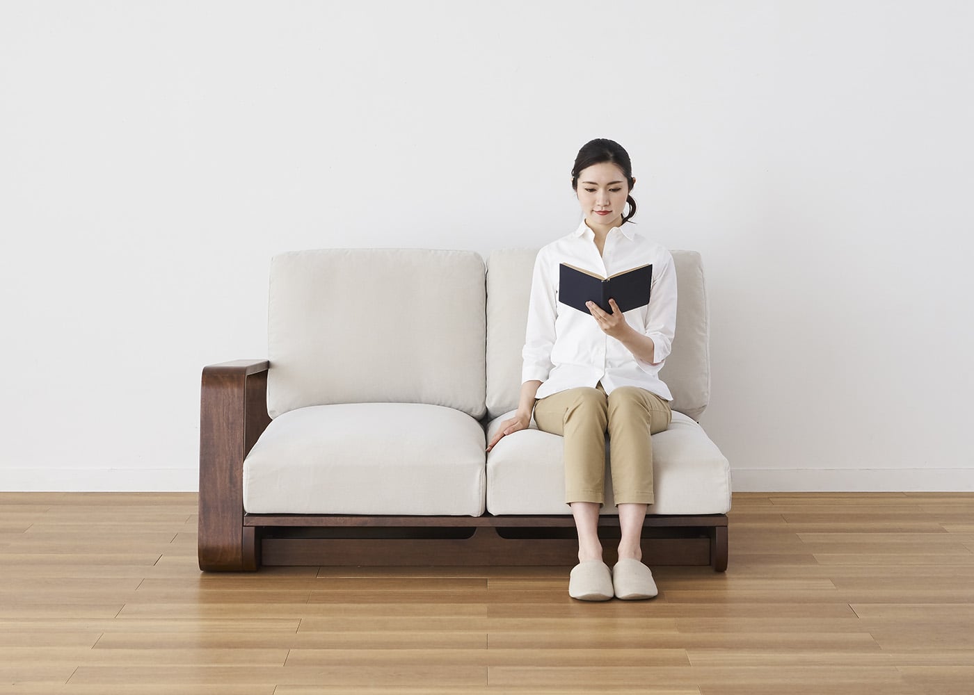 a.flatのソファはカバーの着せ替えができるのが魅力。約100色のファブリックから素材や色を選んで、あなただけのカラーコーディネートをお楽しみください。(別売、受注生産)