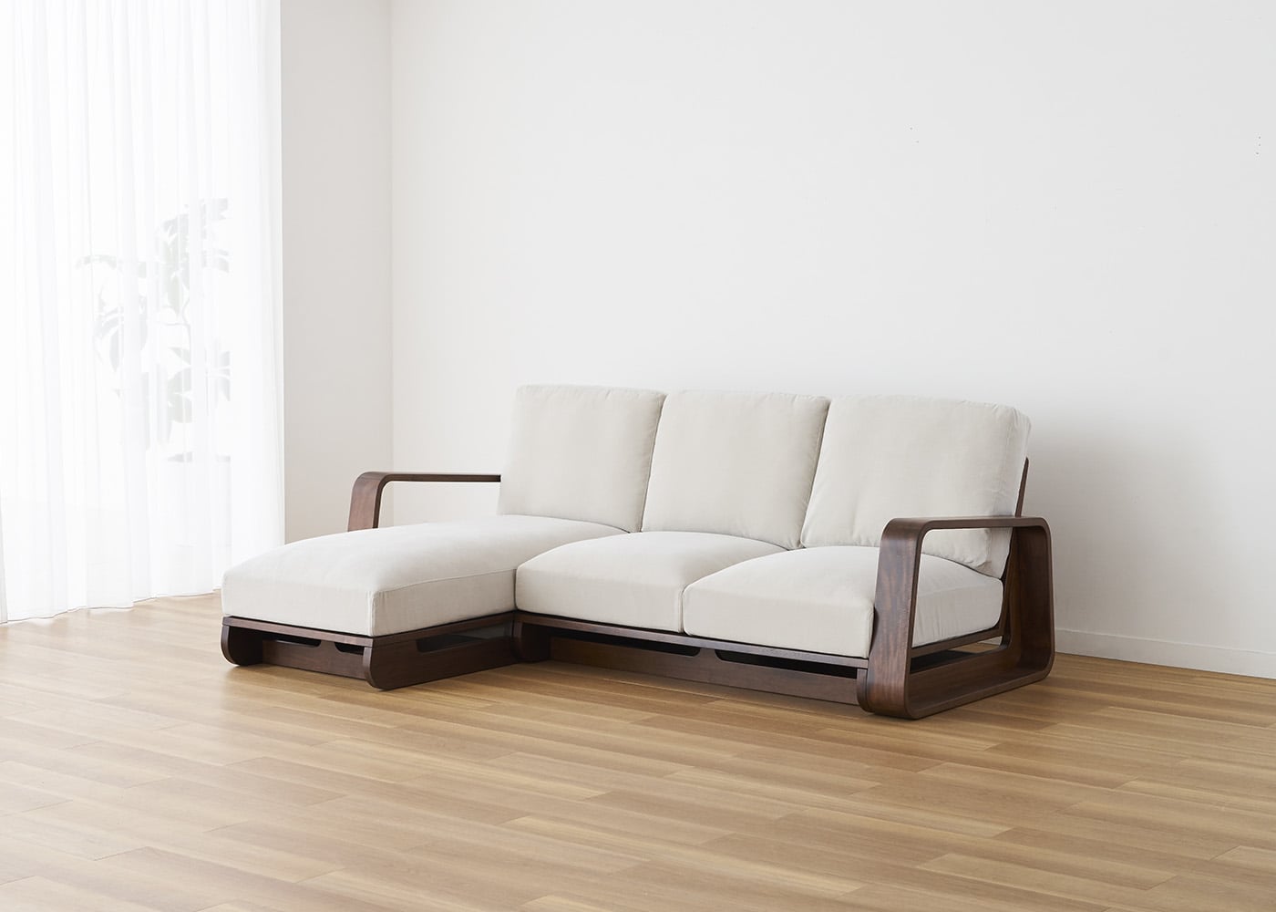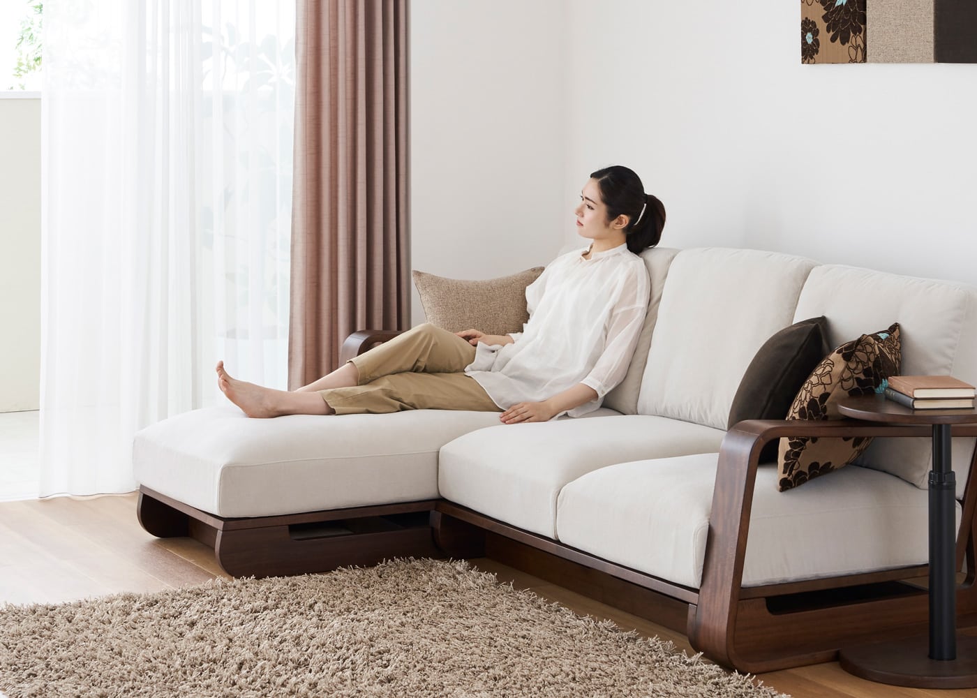 a.flatのソファはカバーの着せ替えができるのが魅力。約100色のファブリックから素材や色を選んで、あなただけのカラーコーディネートをお楽しみください。(別売、受注生産)