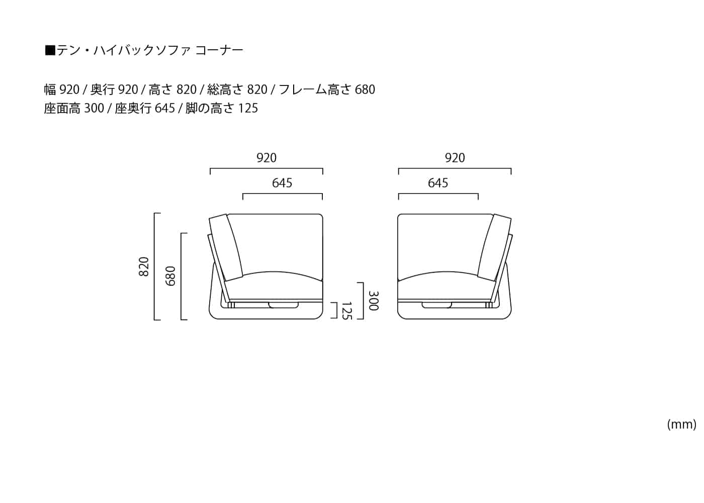 幅920 / 奥行920 / 高さ820 / 座面高 300 / 座奥行645
