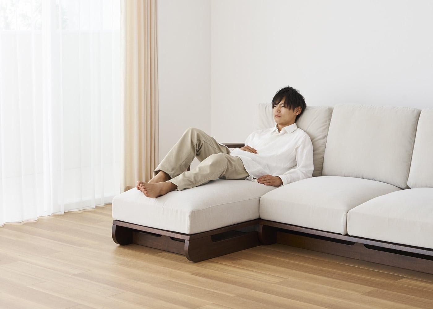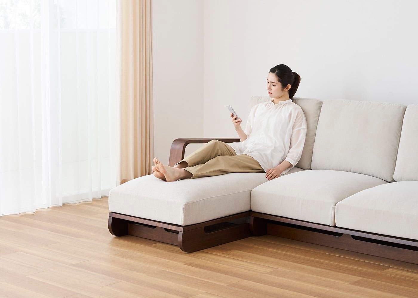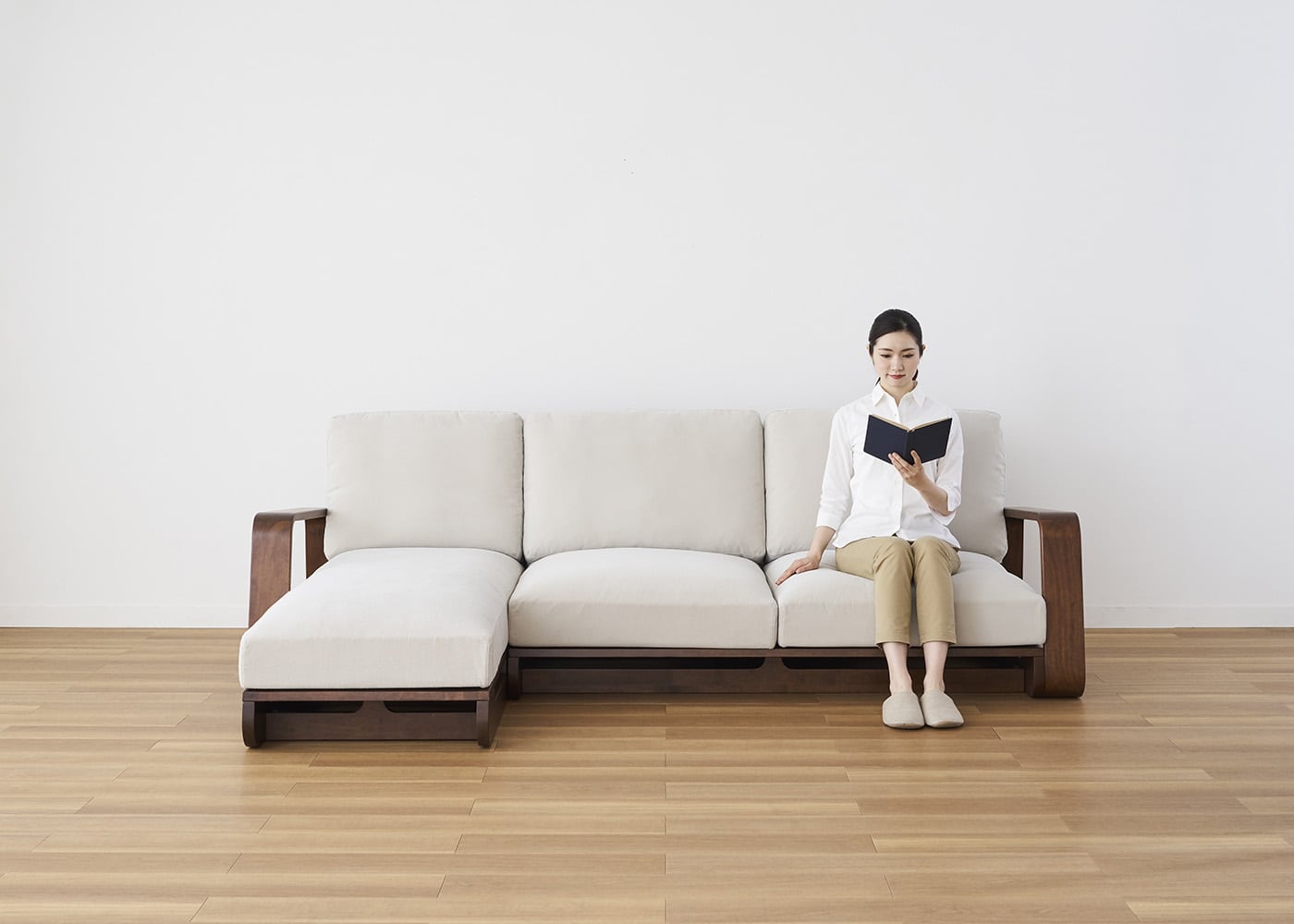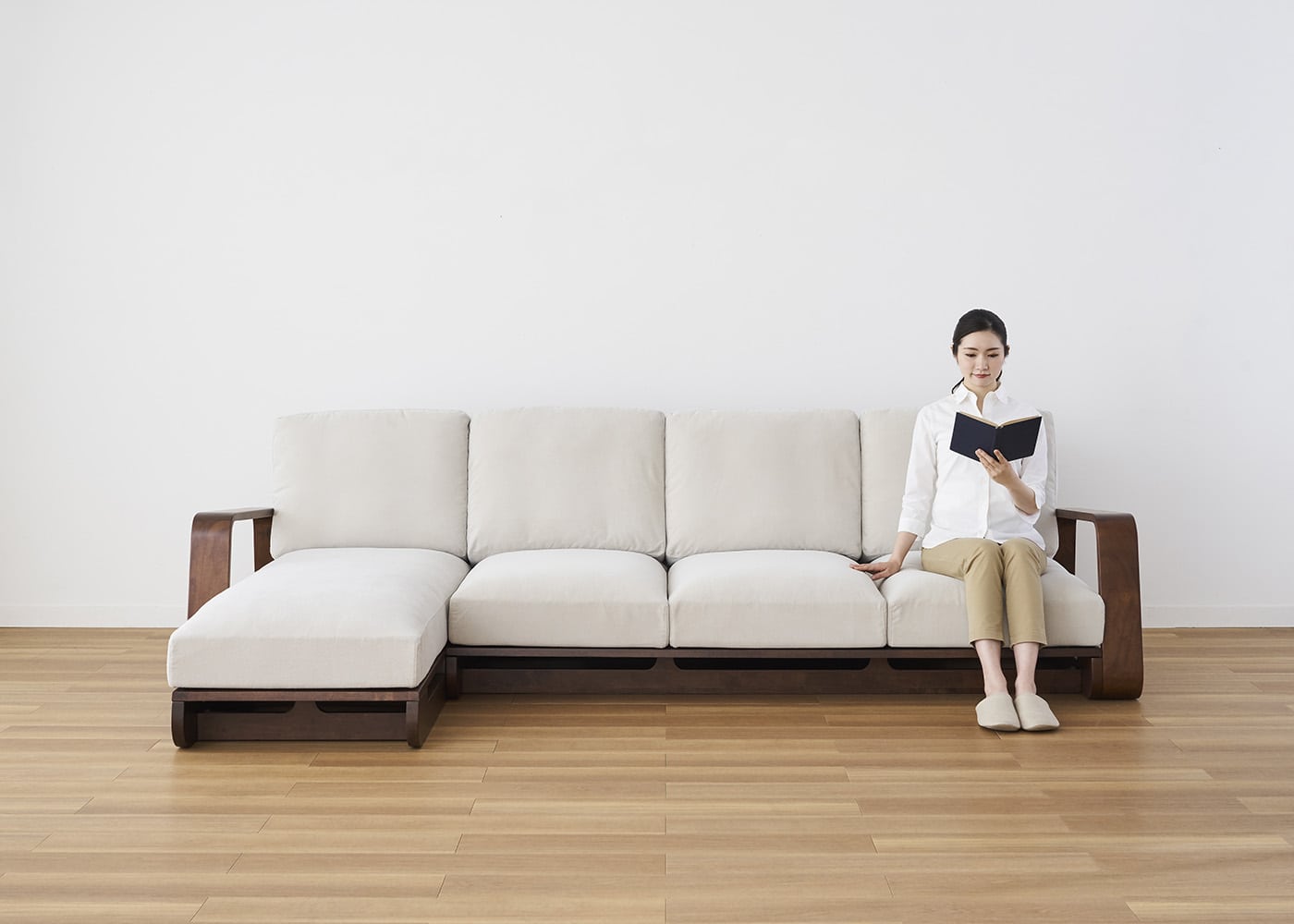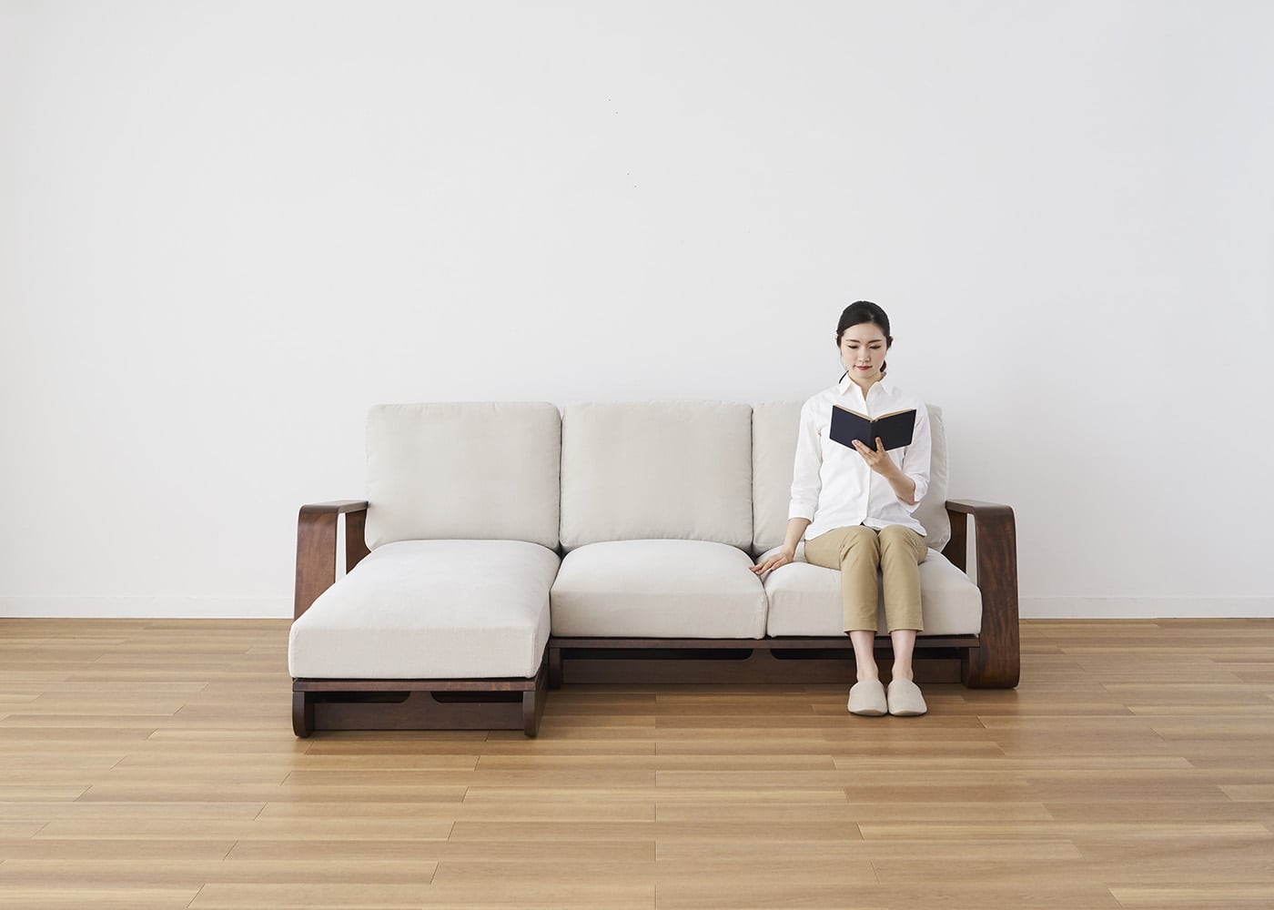 a.flatのソファはカバーの着せ替えができるのが魅力。約100色のファブリックから素材や色を選んで、あなただけのカラーコーディネートをお楽しみください。(別売、受注生産)