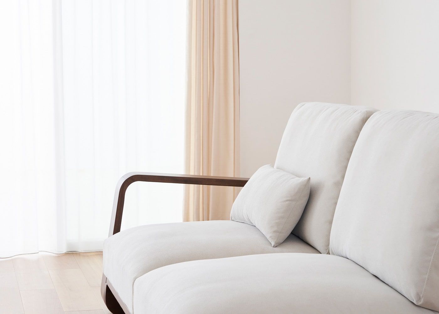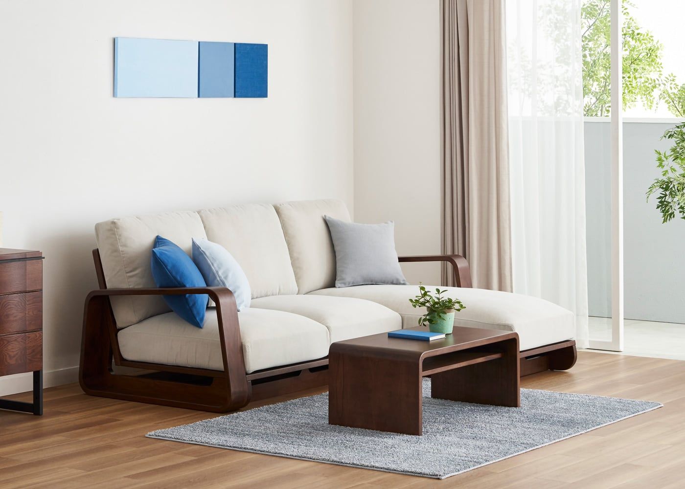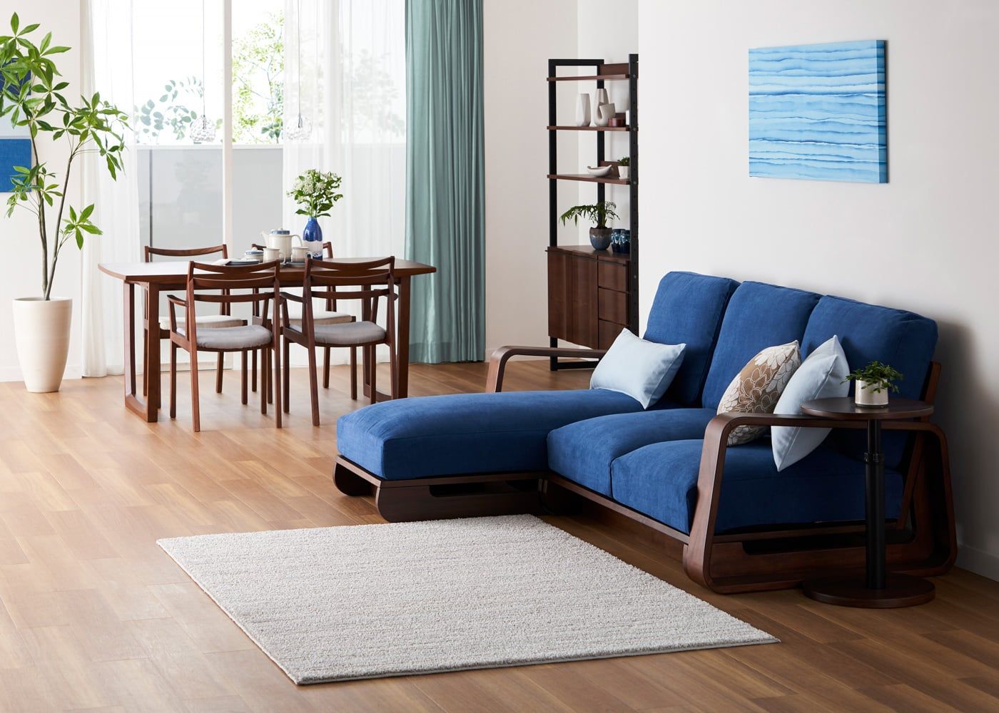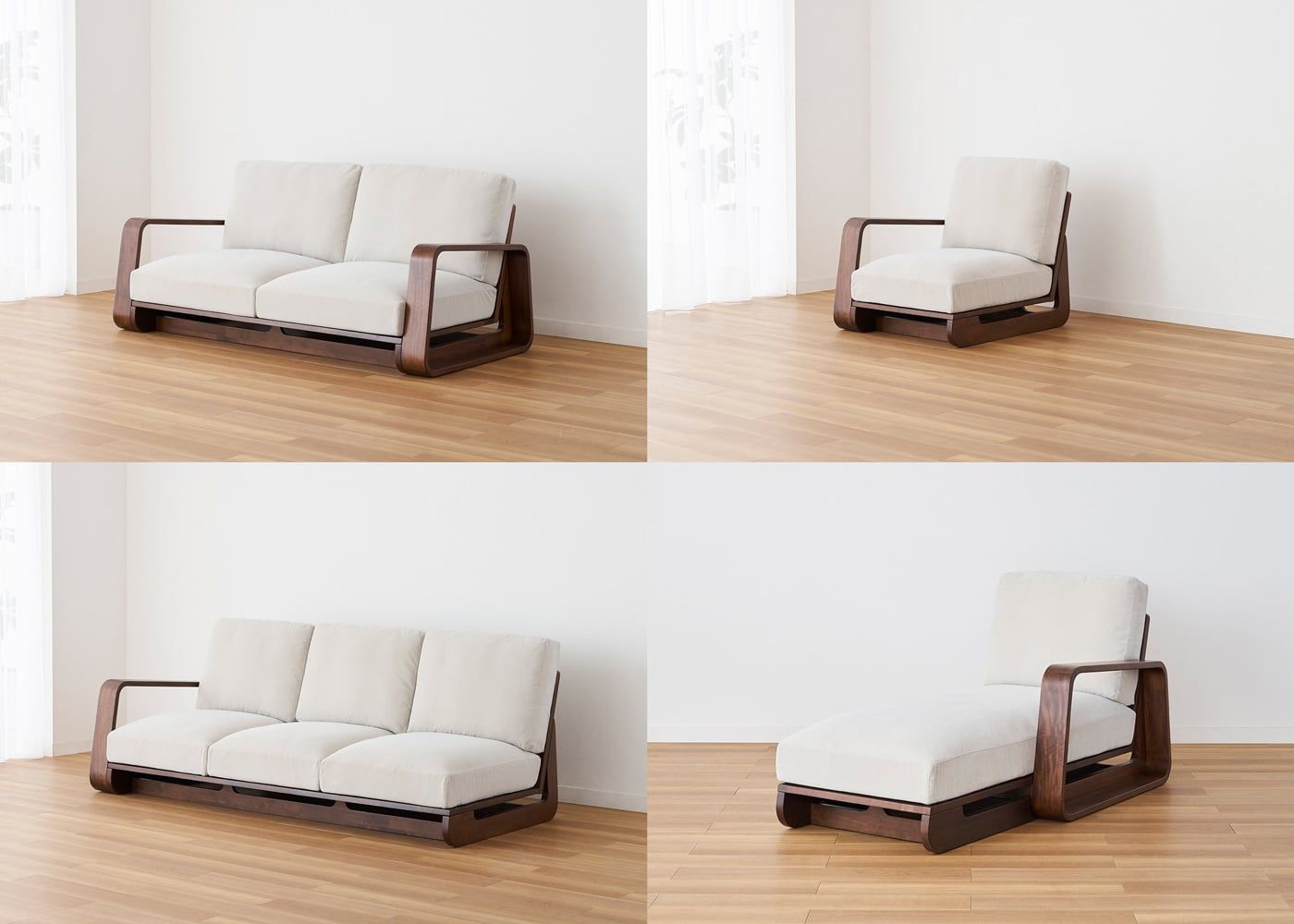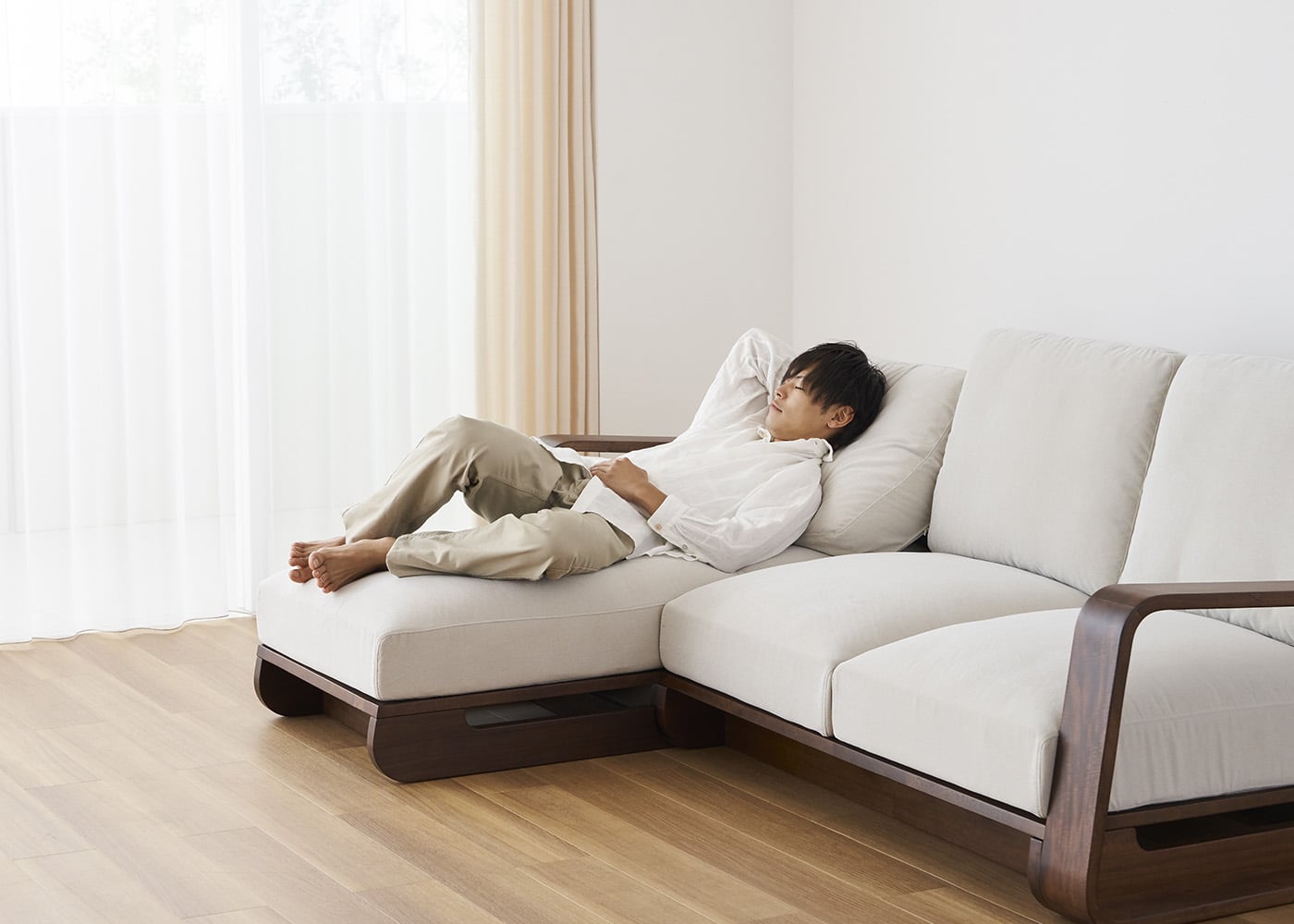 a.flatのソファはカバーの着せ替えができるのが魅力。約100色のファブリックから素材や色を選んで、あなただけのカラーコーディネートをお楽しみください。(別売、受注生産)