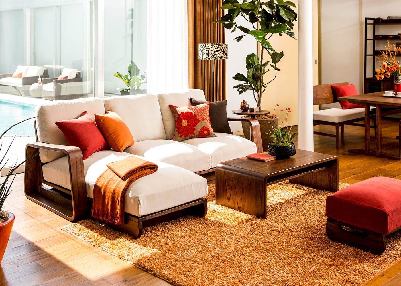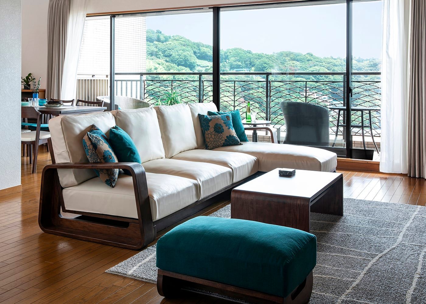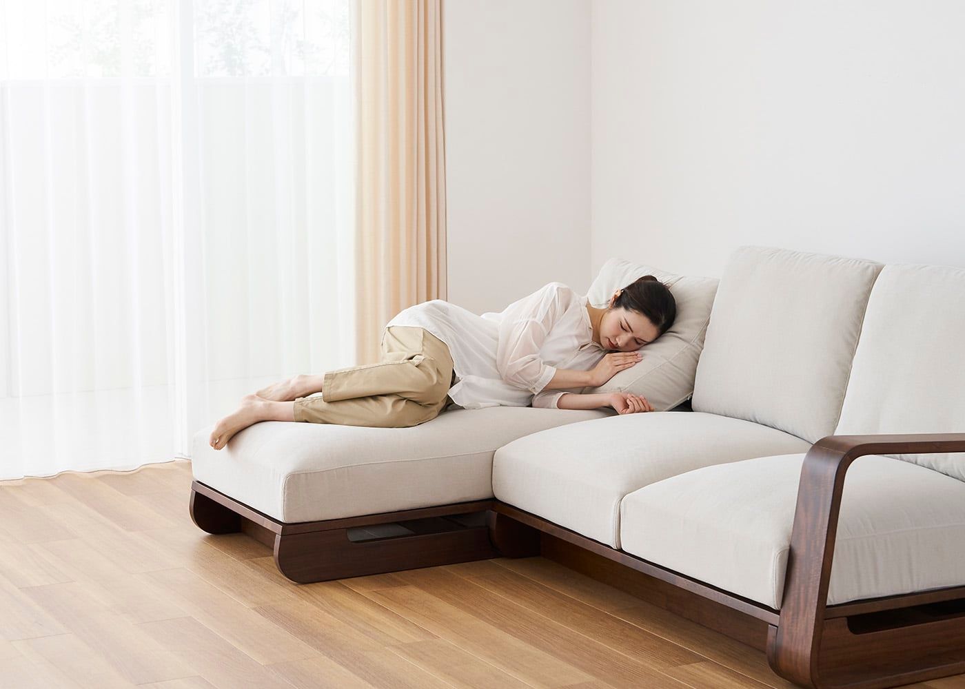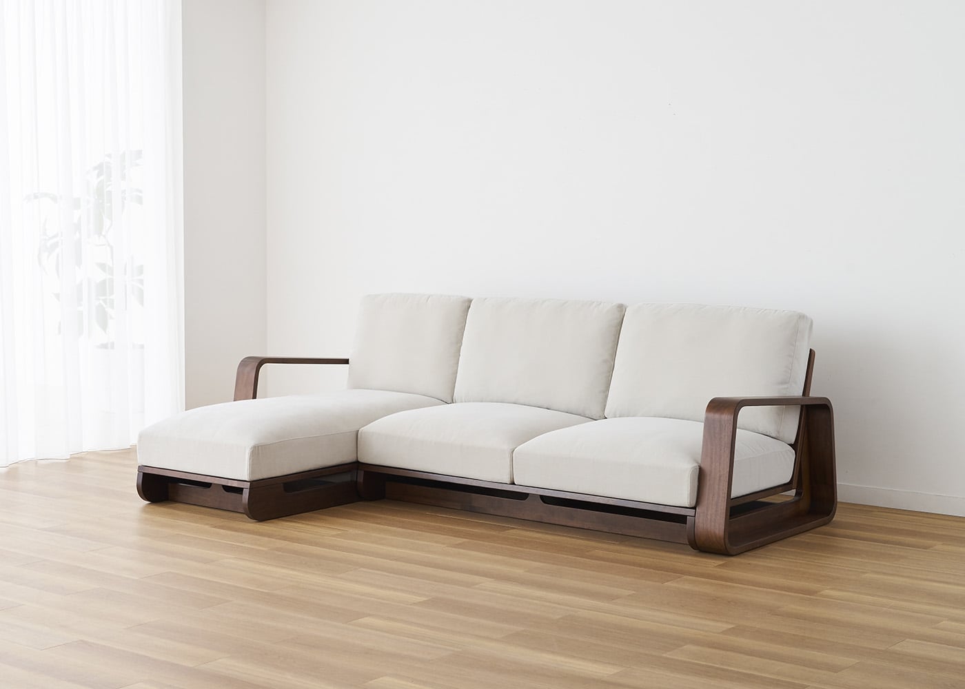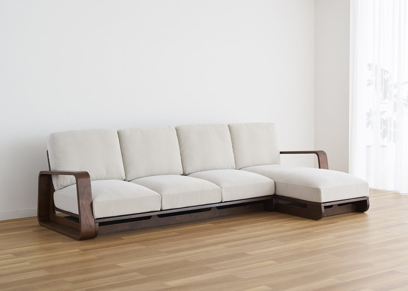 a.flatのソファはカバーの着せ替えができるのが魅力。約100色のファブリックから素材や色を選んで、あなただけのカラーコーディネートをお楽しみください。(別売、受注生産)
