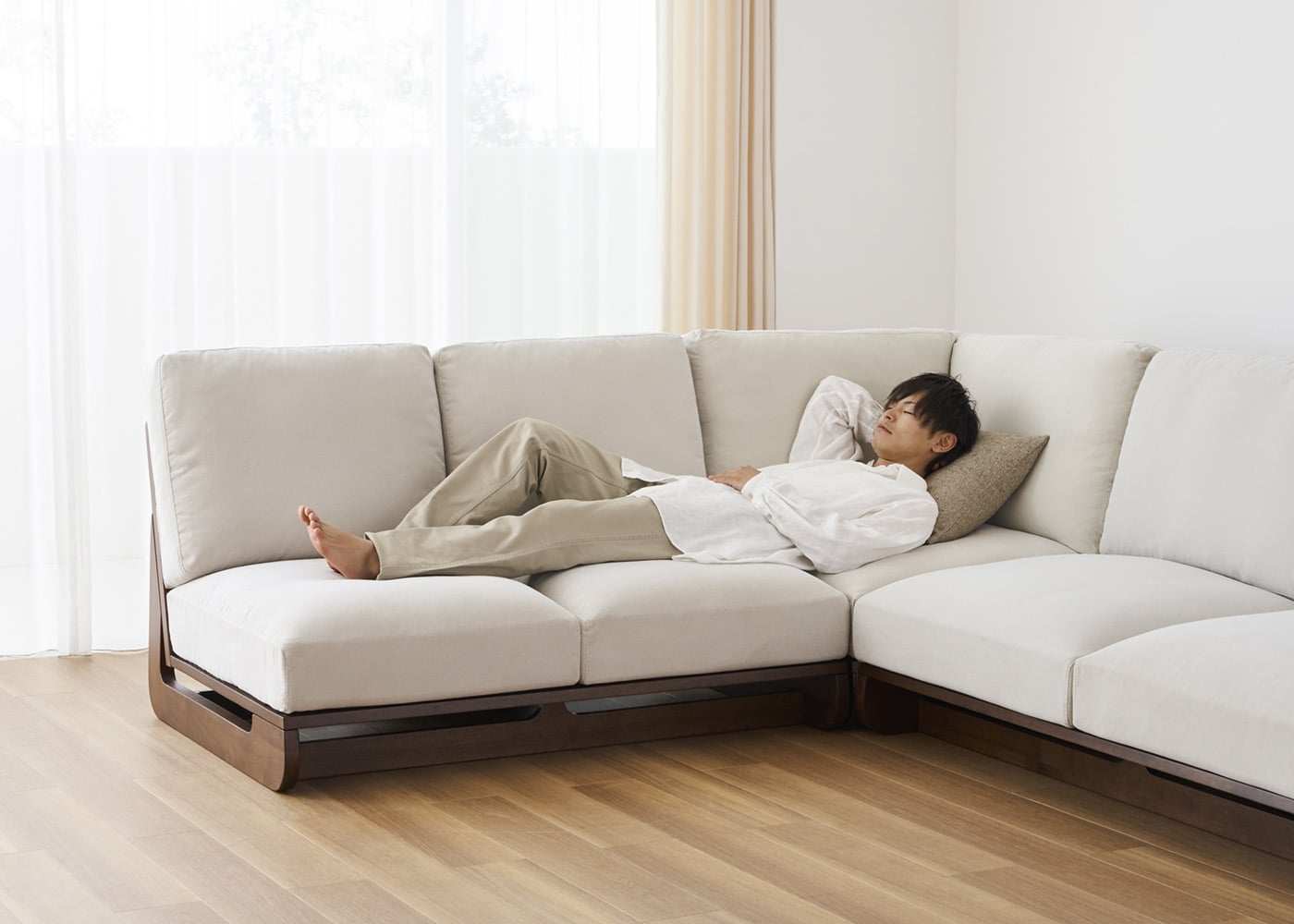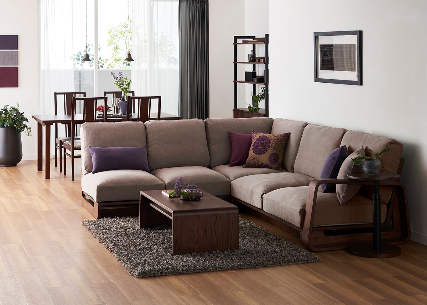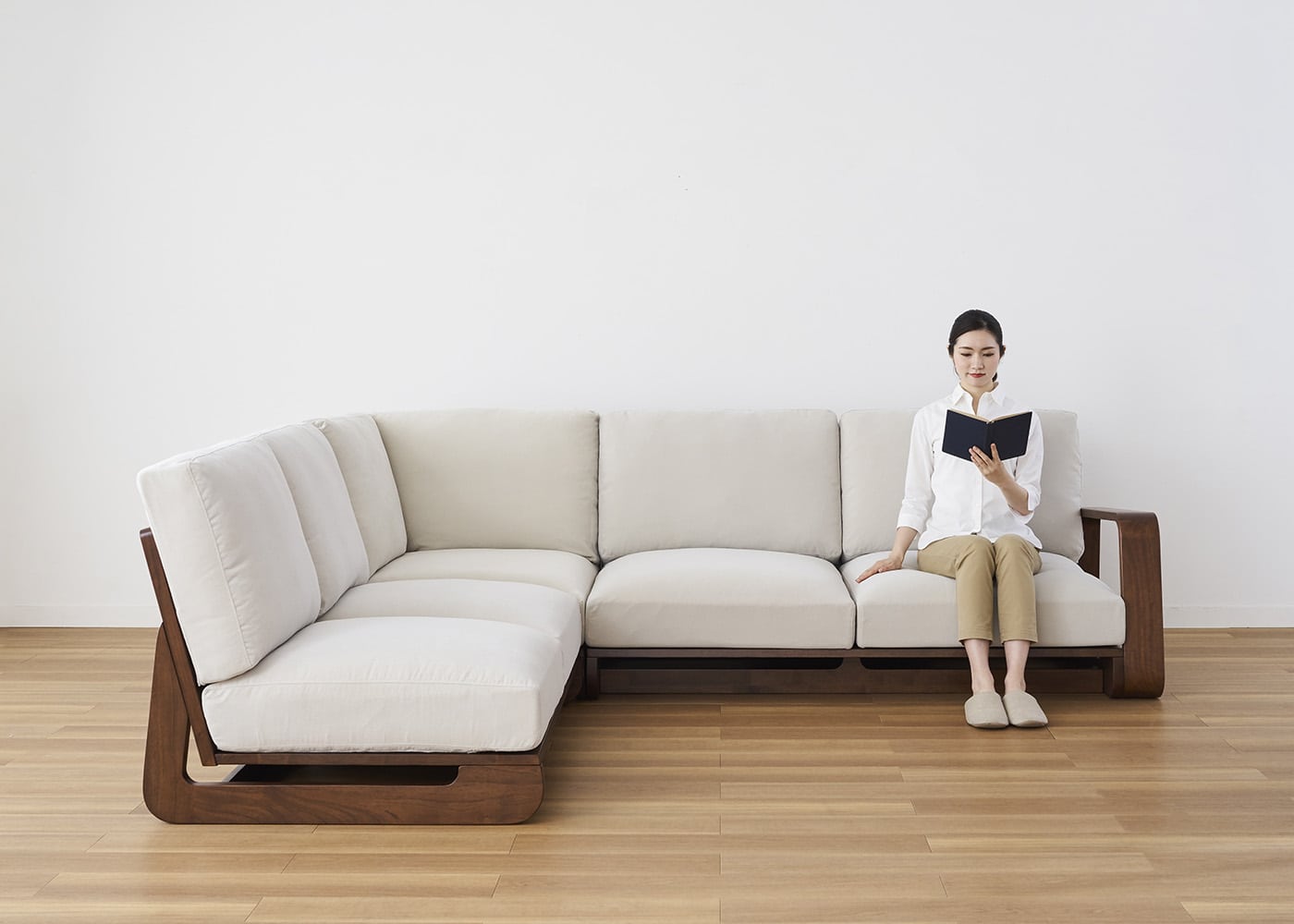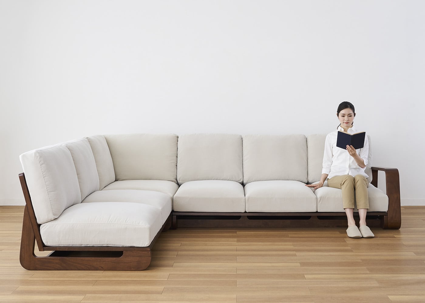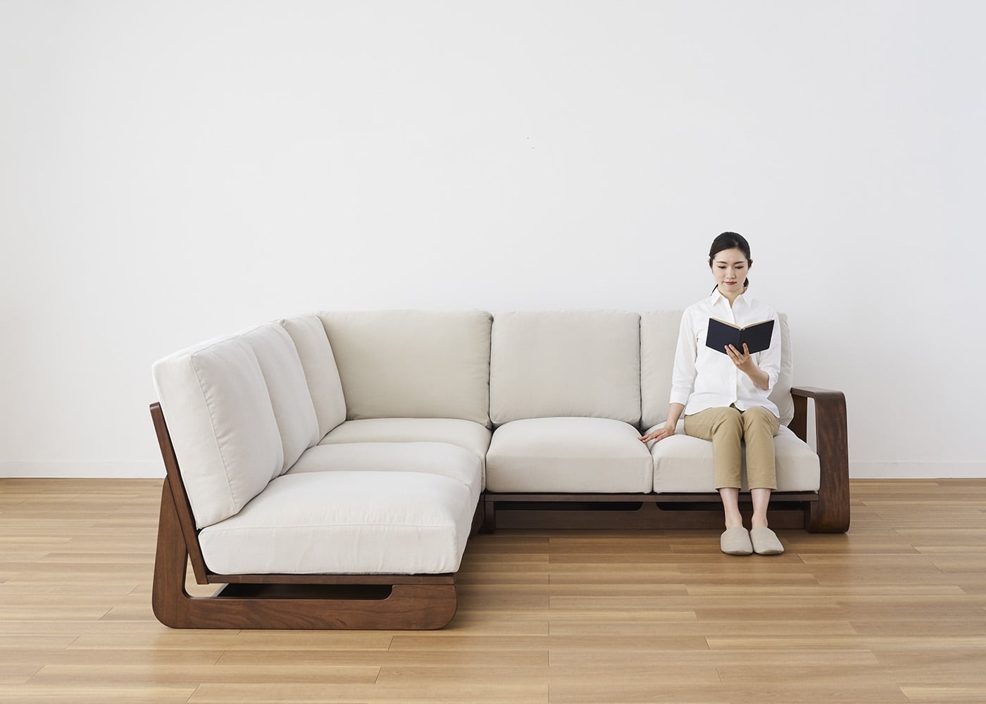 a.flatのソファはカバーの着せ替えができるのが魅力。約100色のファブリックから素材や色を選んで、あなただけのカラーコーディネートをお楽しみください。(別売、受注生産)