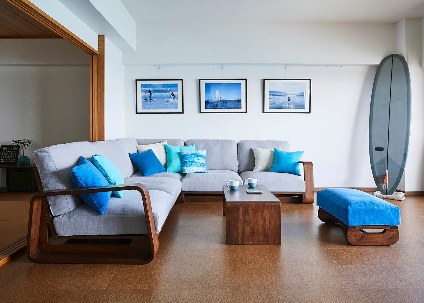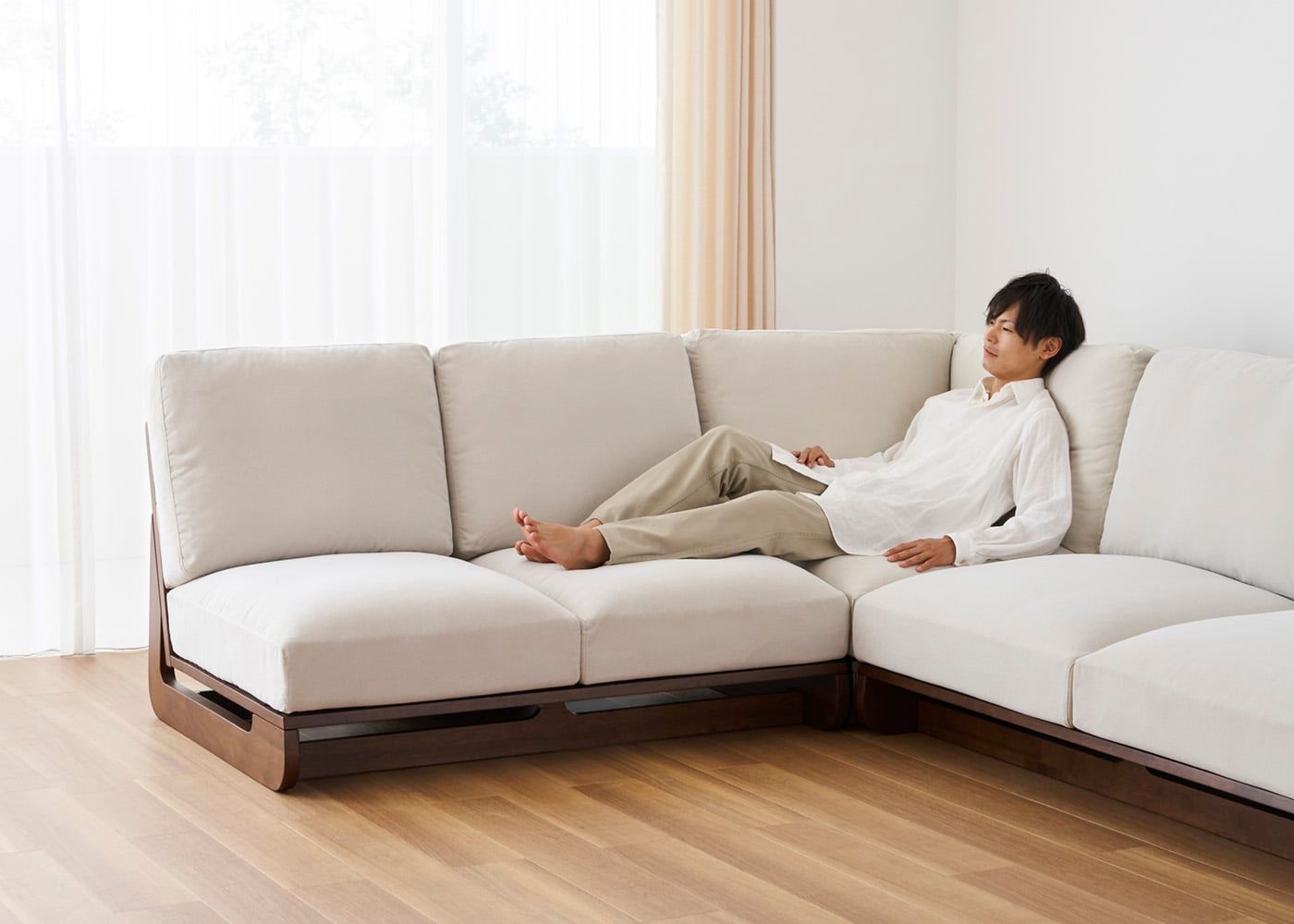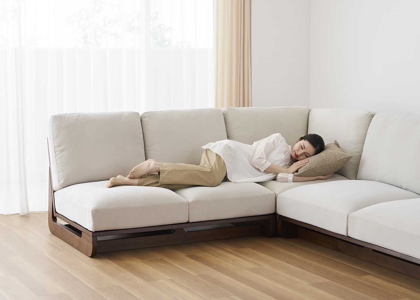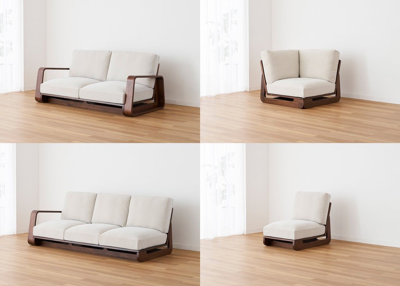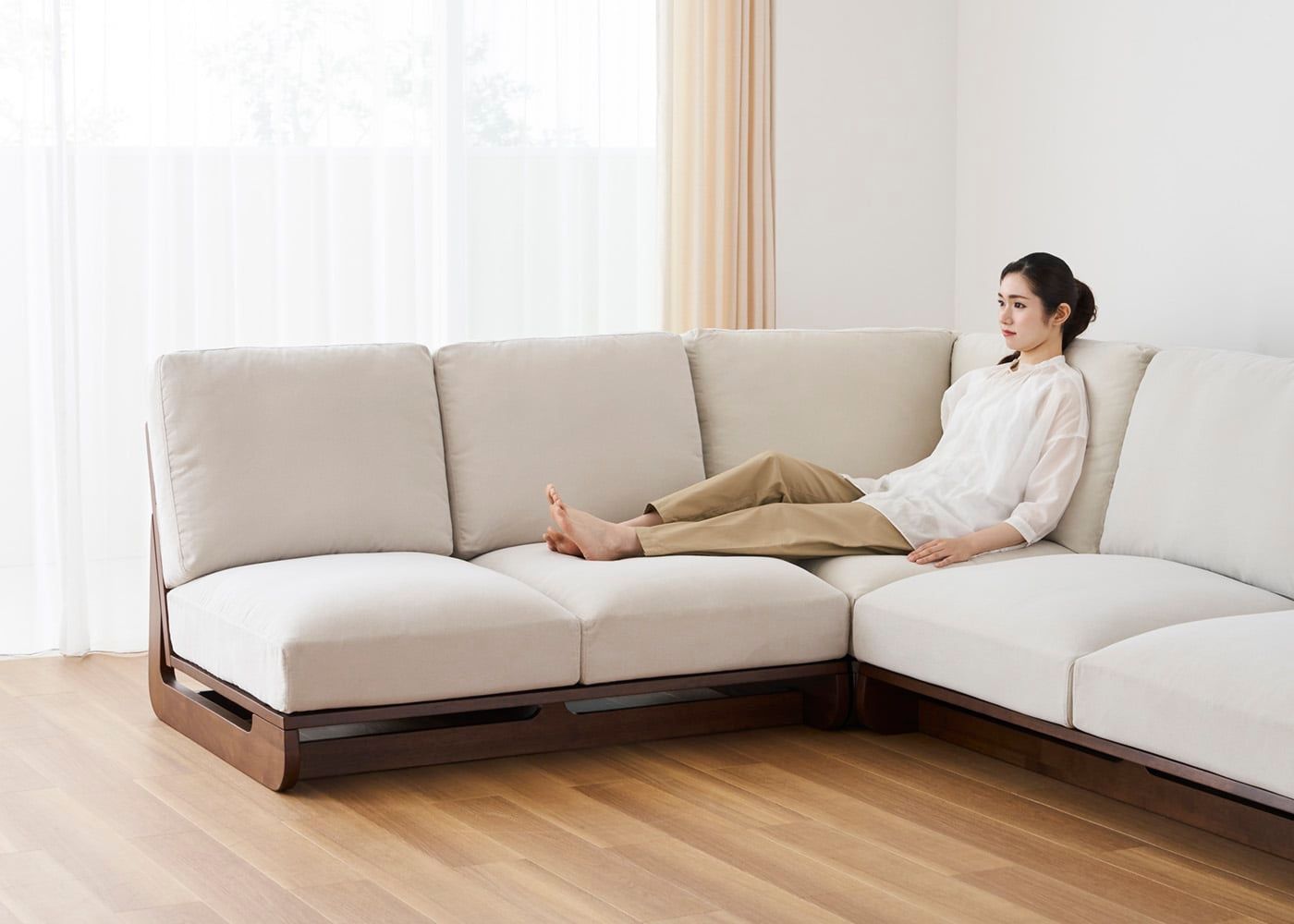 a.flatのソファはカバーの着せ替えができるのが魅力。約100色のファブリックから素材や色を選んで、あなただけのカラーコーディネートをお楽しみください。(別売、受注生産)