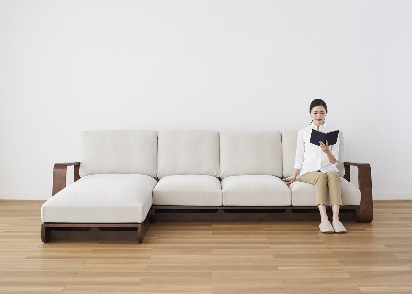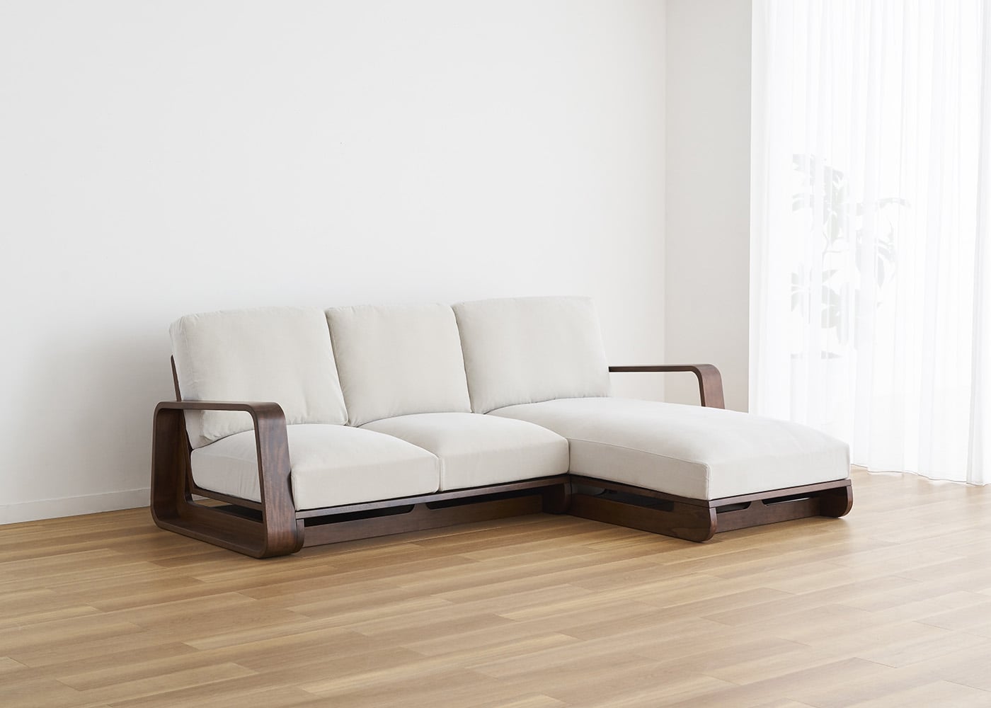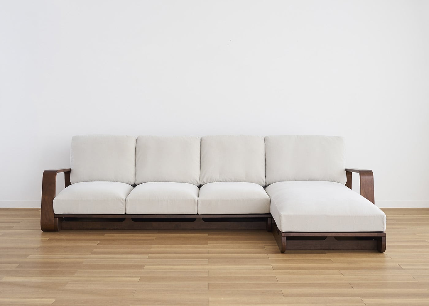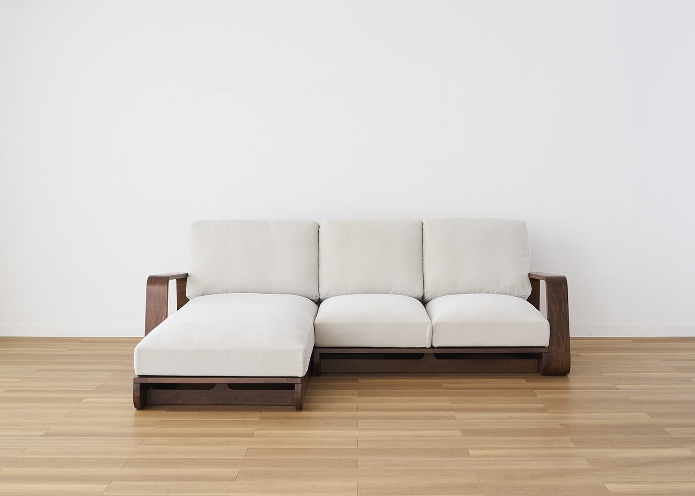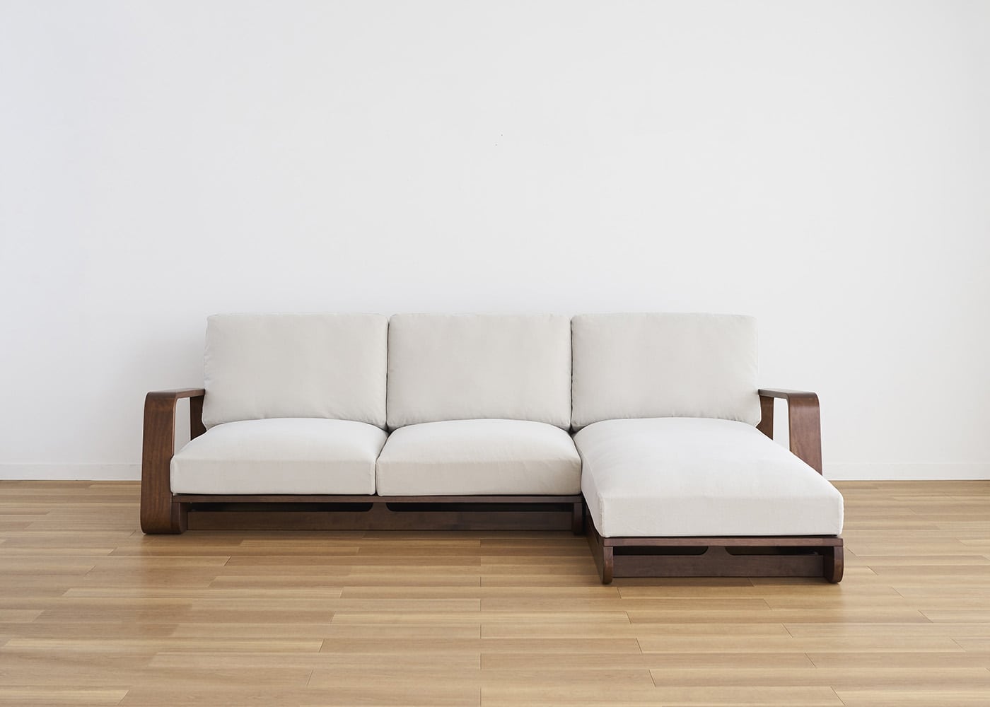 もう一つの特徴として、アーム着脱機能があります。アームを着脱することで、お部屋の間取り・家族構成の変化に合わせてソファを組み替えできます。カウチソファの位置を左右入れ替えることもできます。あなたのライフステージと共に歩むソファです。