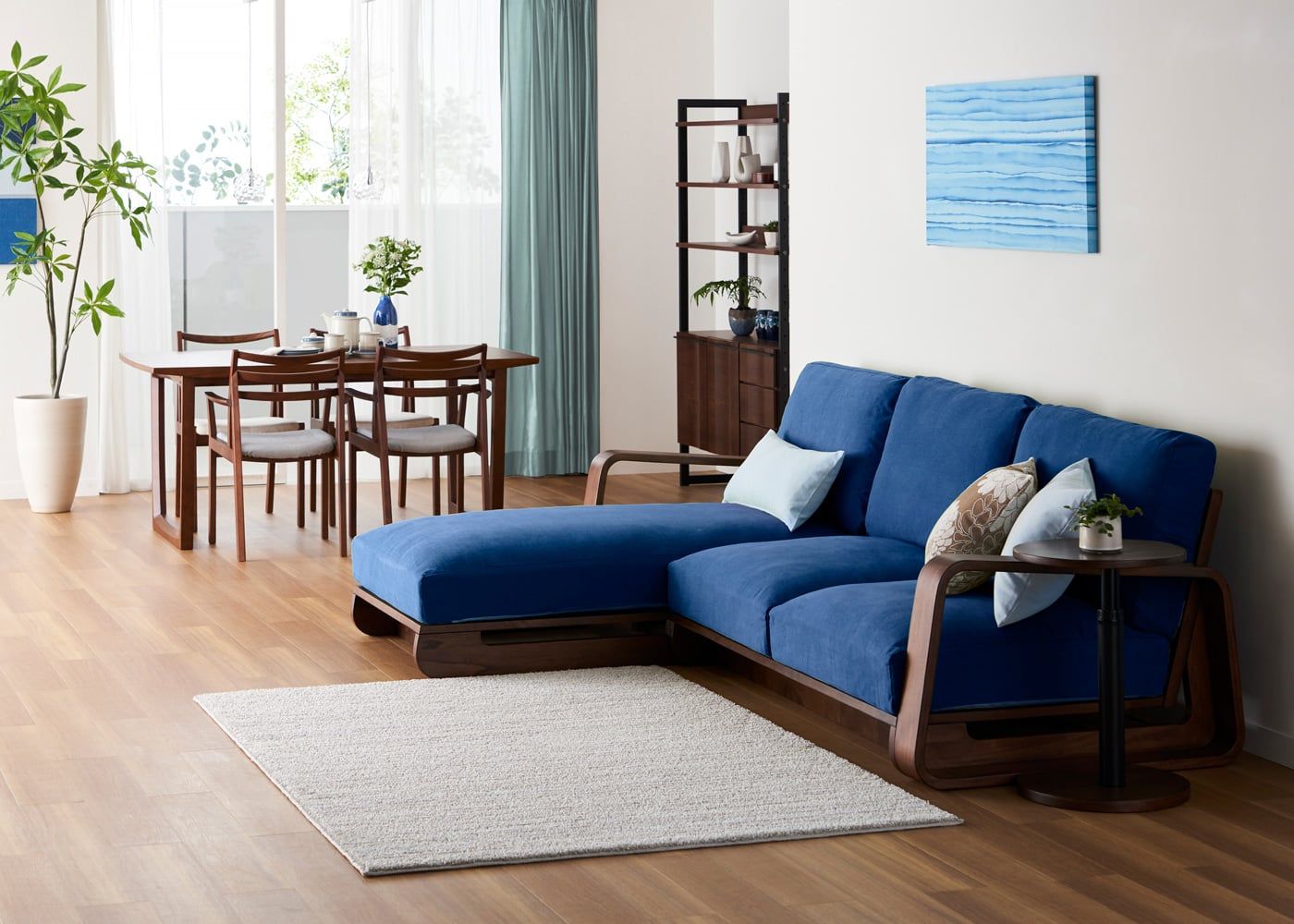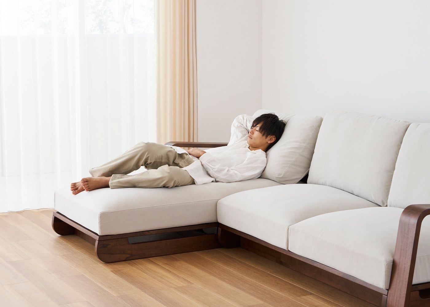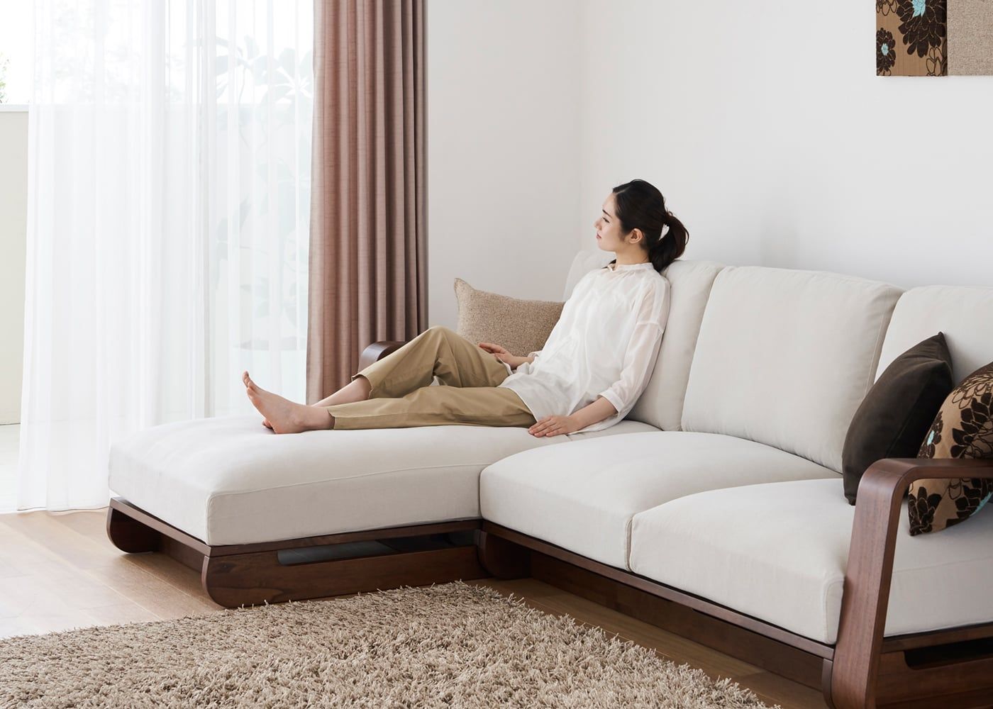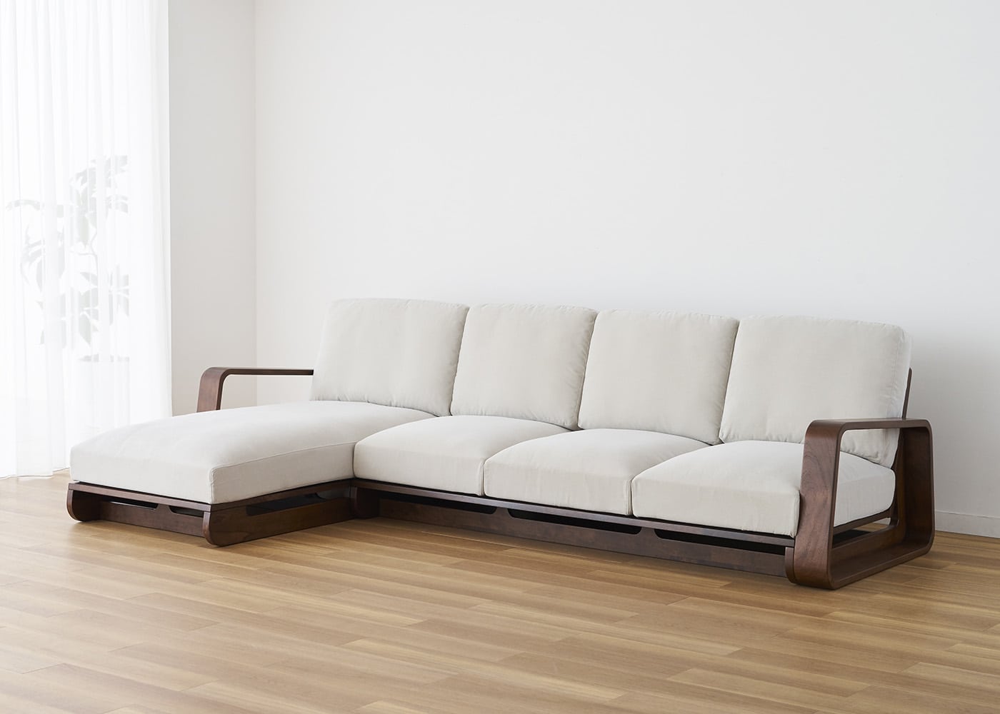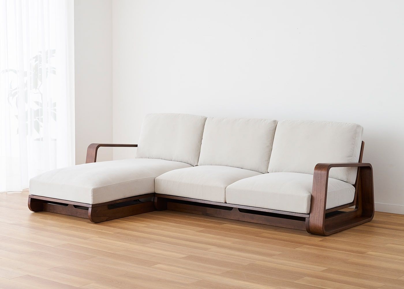 もう一つの特徴として、アーム着脱機能があります。アームを着脱することで、お部屋の間取り・家族構成の変化に合わせてソファを組み替えできます。カウチソファの位置を左右入れ替えることもできます。あなたのライフステージと共に歩むソファです。