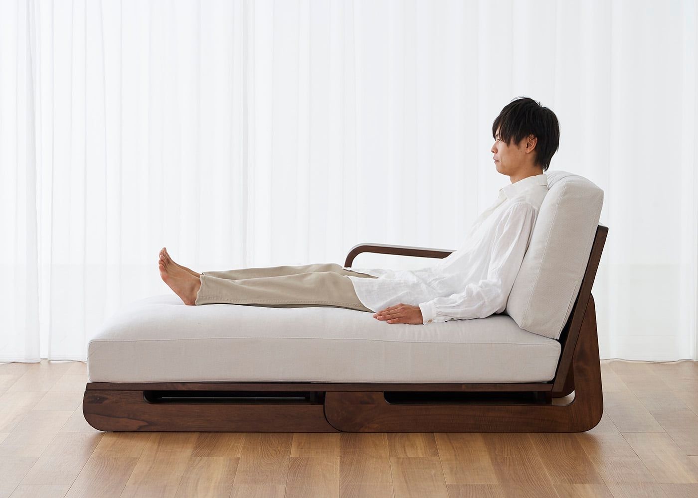 通常のカウチに比べて座面幅と奥行きが広々しているため、よりゆったりとくつろげるのが魅力です。
