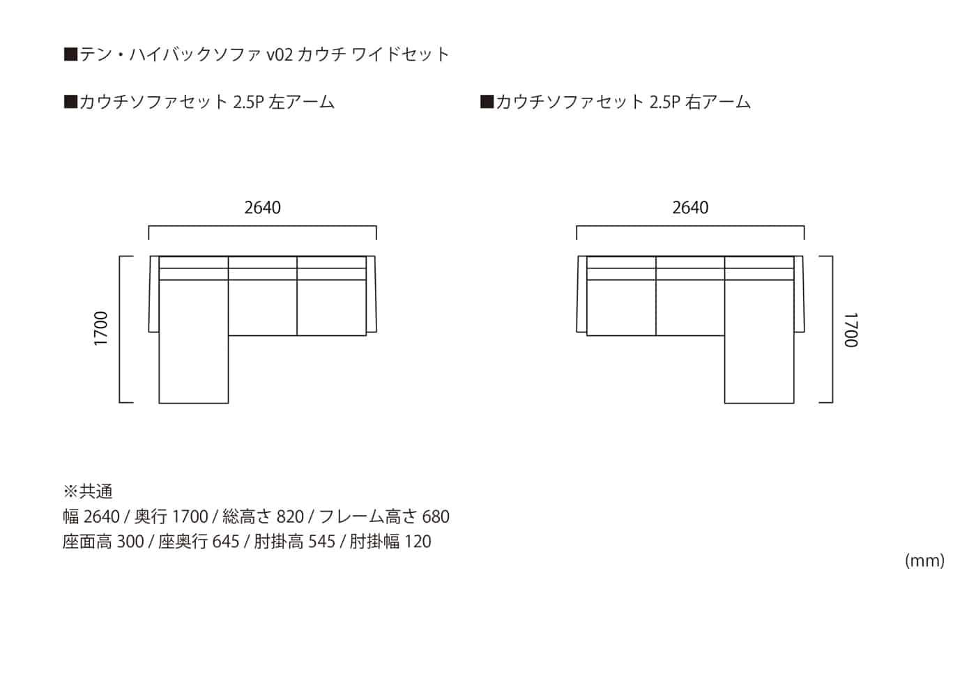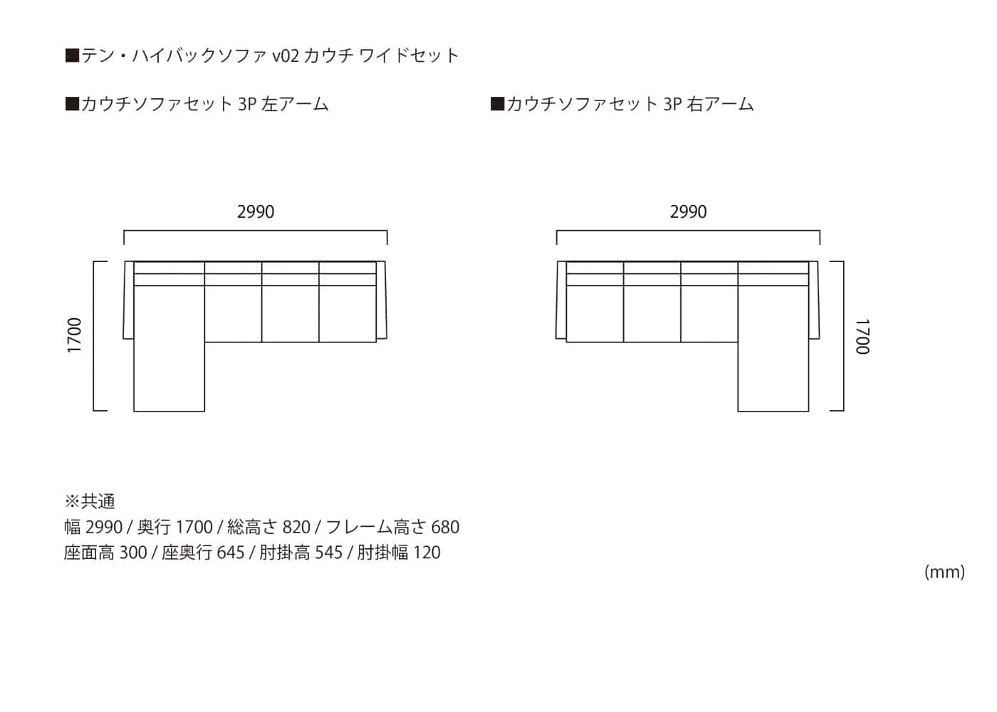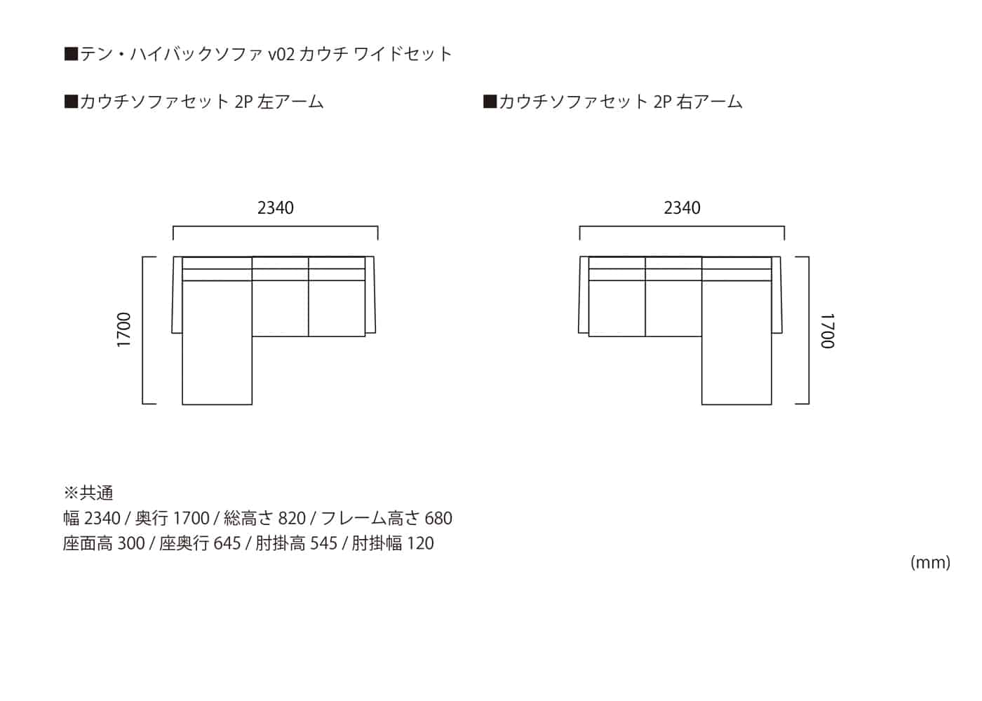 v02 カウチ ワイドセットは、カウチソファをベースとして、お部屋の広さに合わせて片アームソファのサイズとカウチの位置が選べます。