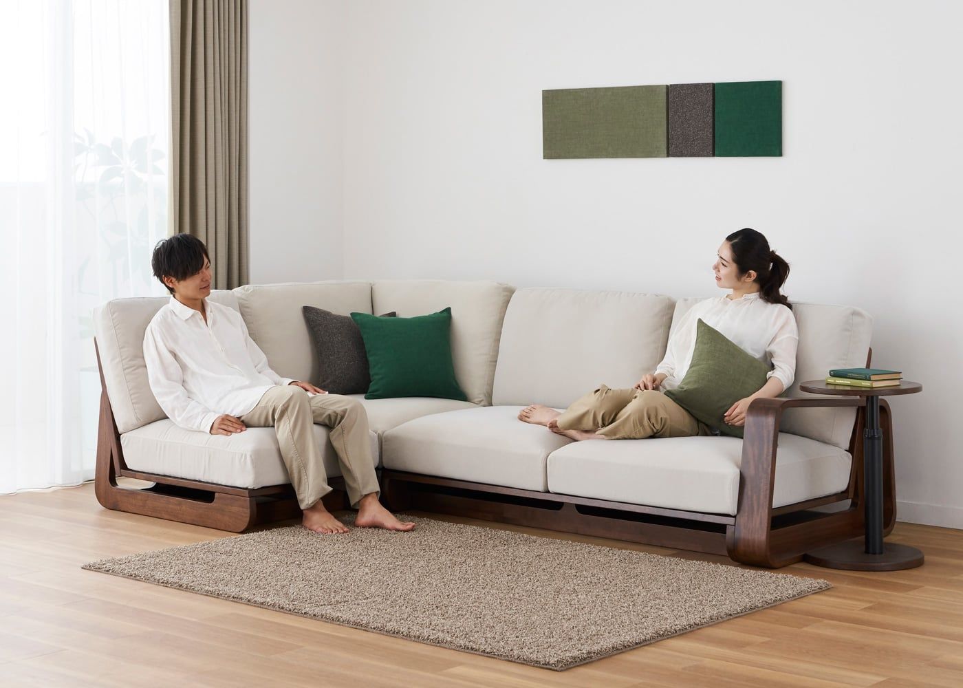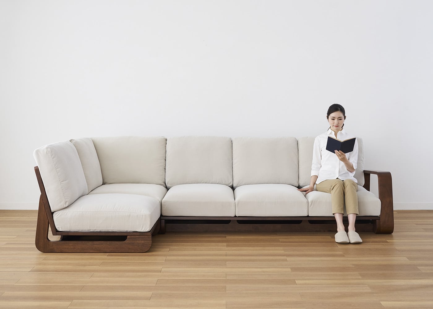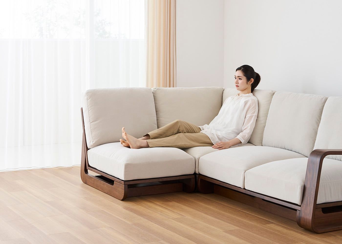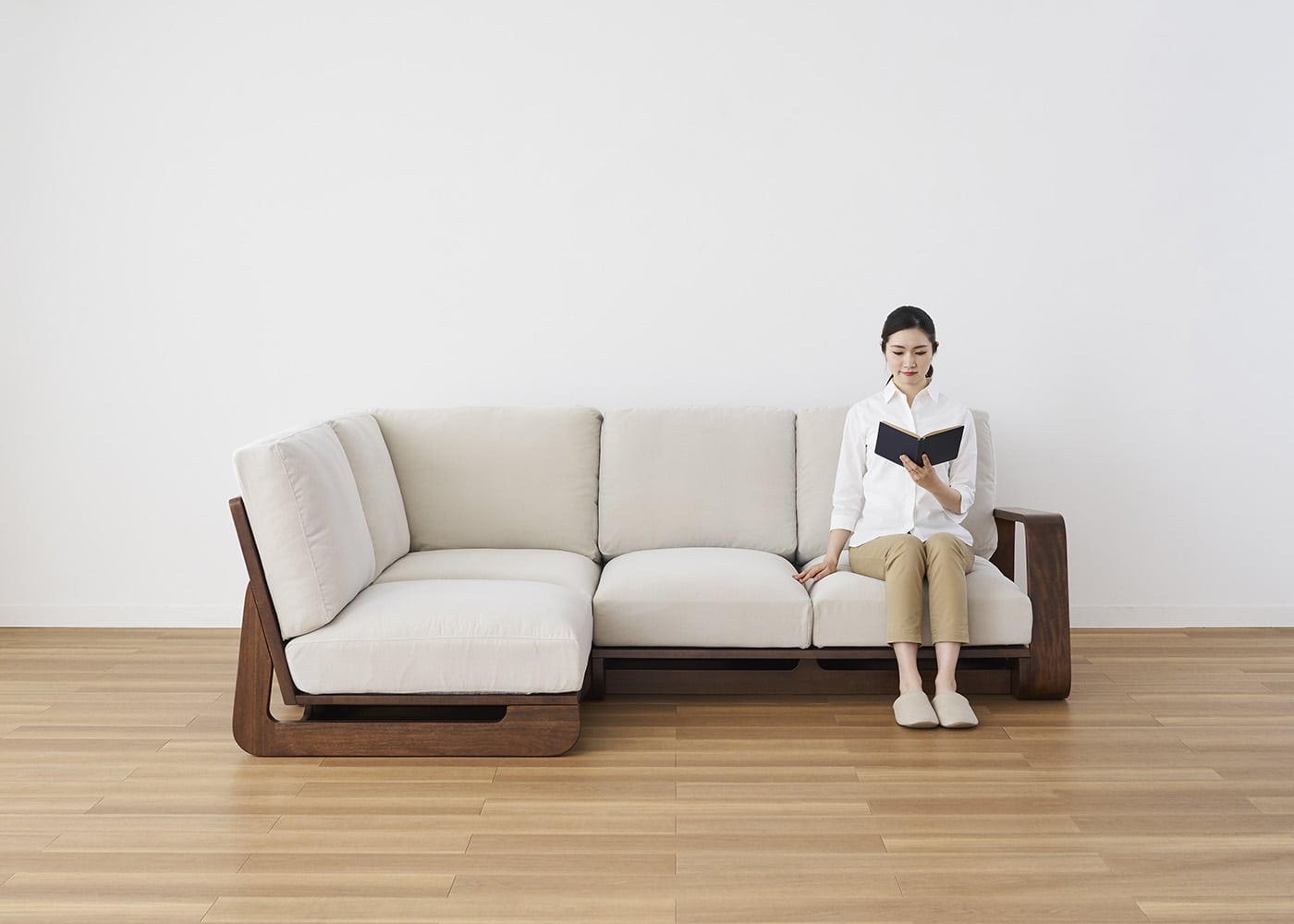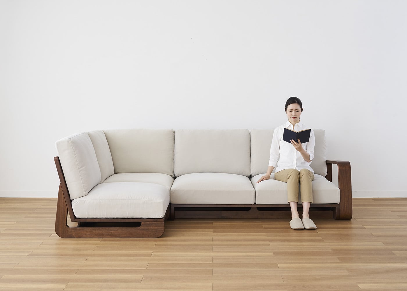 a.flatのソファはカバーの着せ替えができるのが魅力。約100色のファブリックから素材や色を選んで、あなただけのカラーコーディネートをお楽しみください。(別売、受注生産)