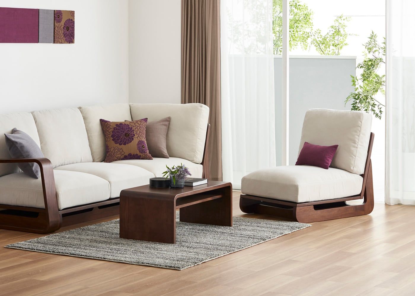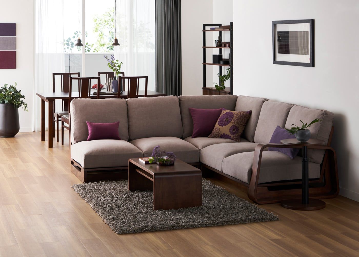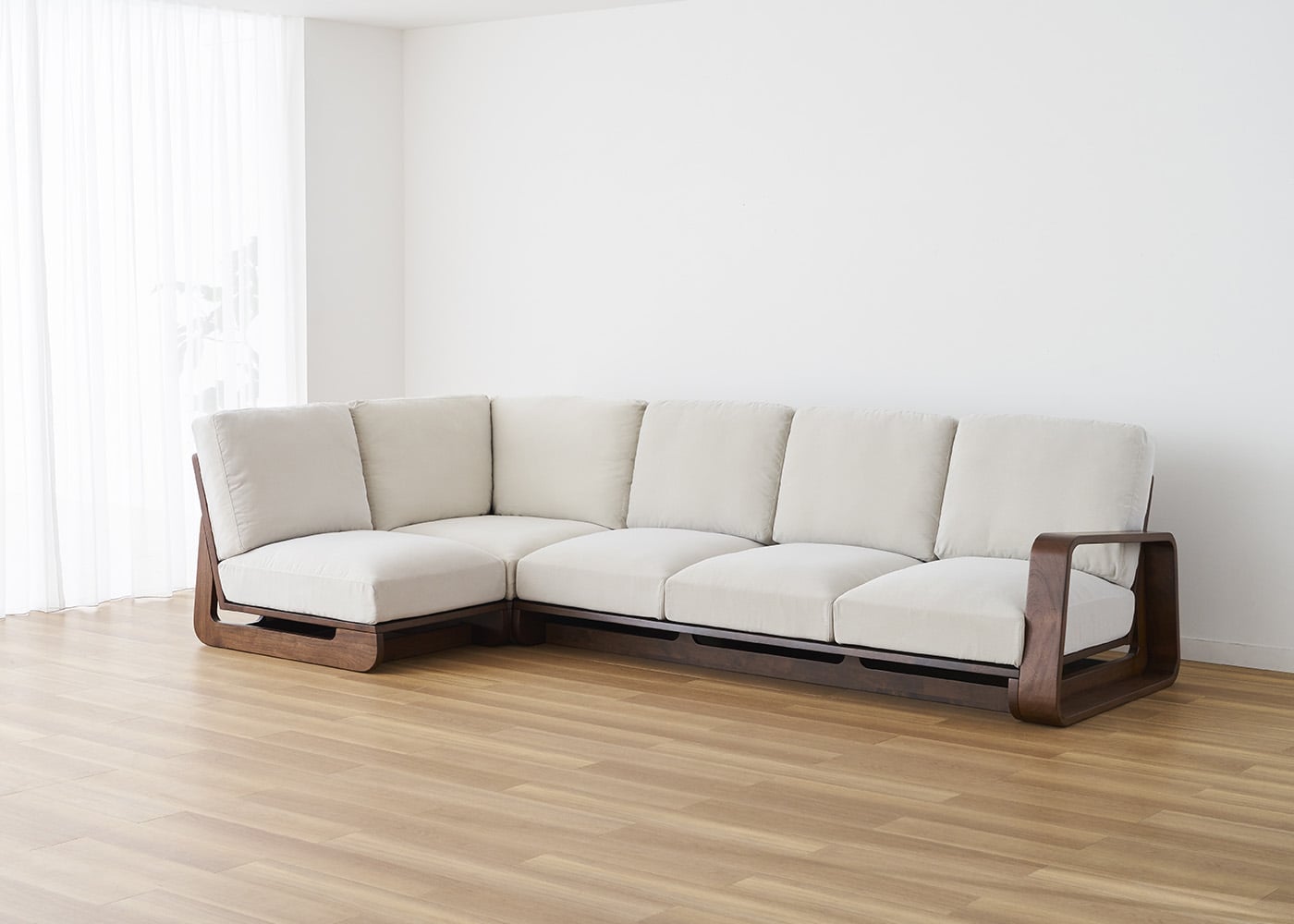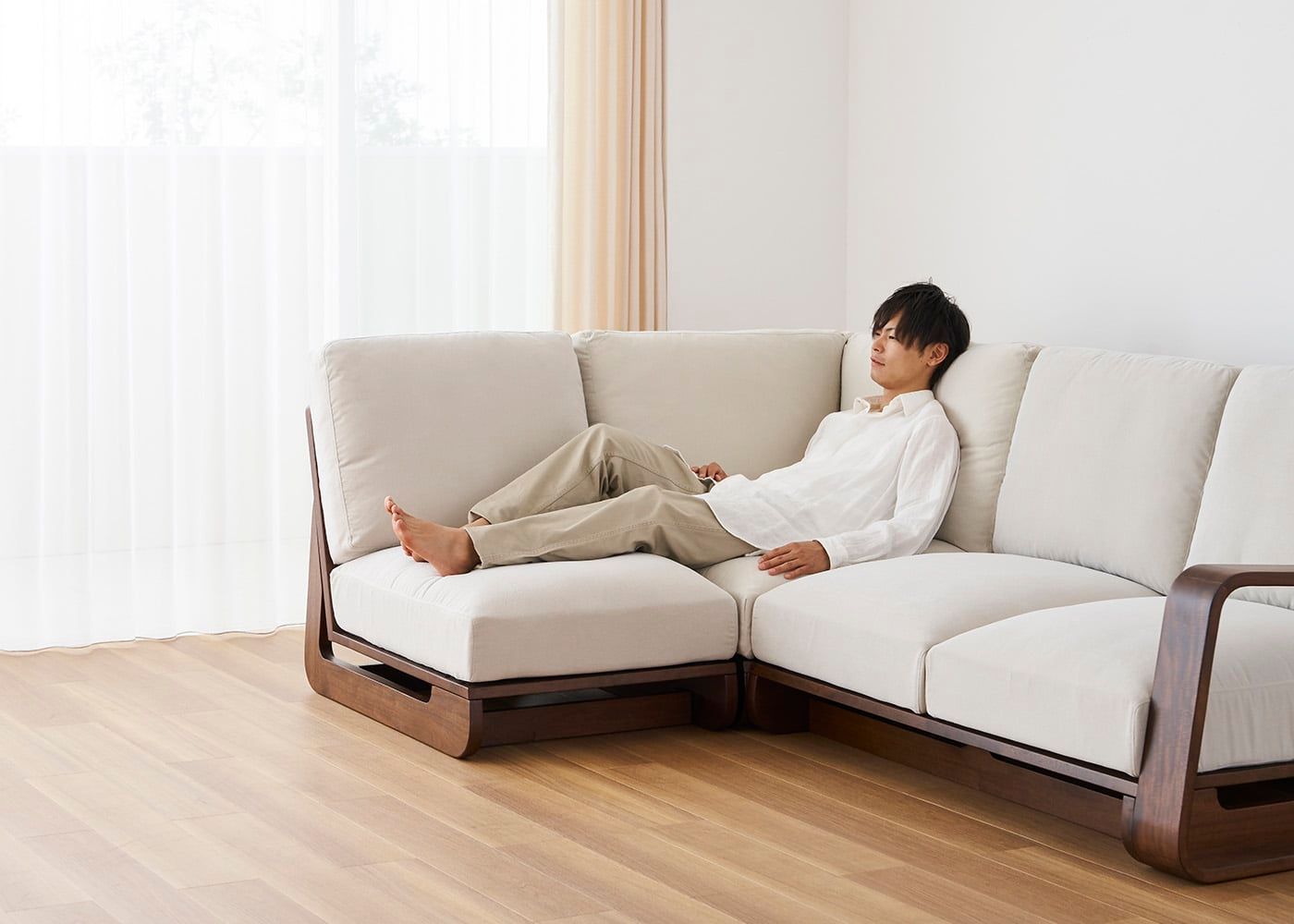 a.flatのソファはカバーの着せ替えができるのが魅力。約100色のファブリックから素材や色を選んで、あなただけのカラーコーディネートをお楽しみください。(別売、受注生産)