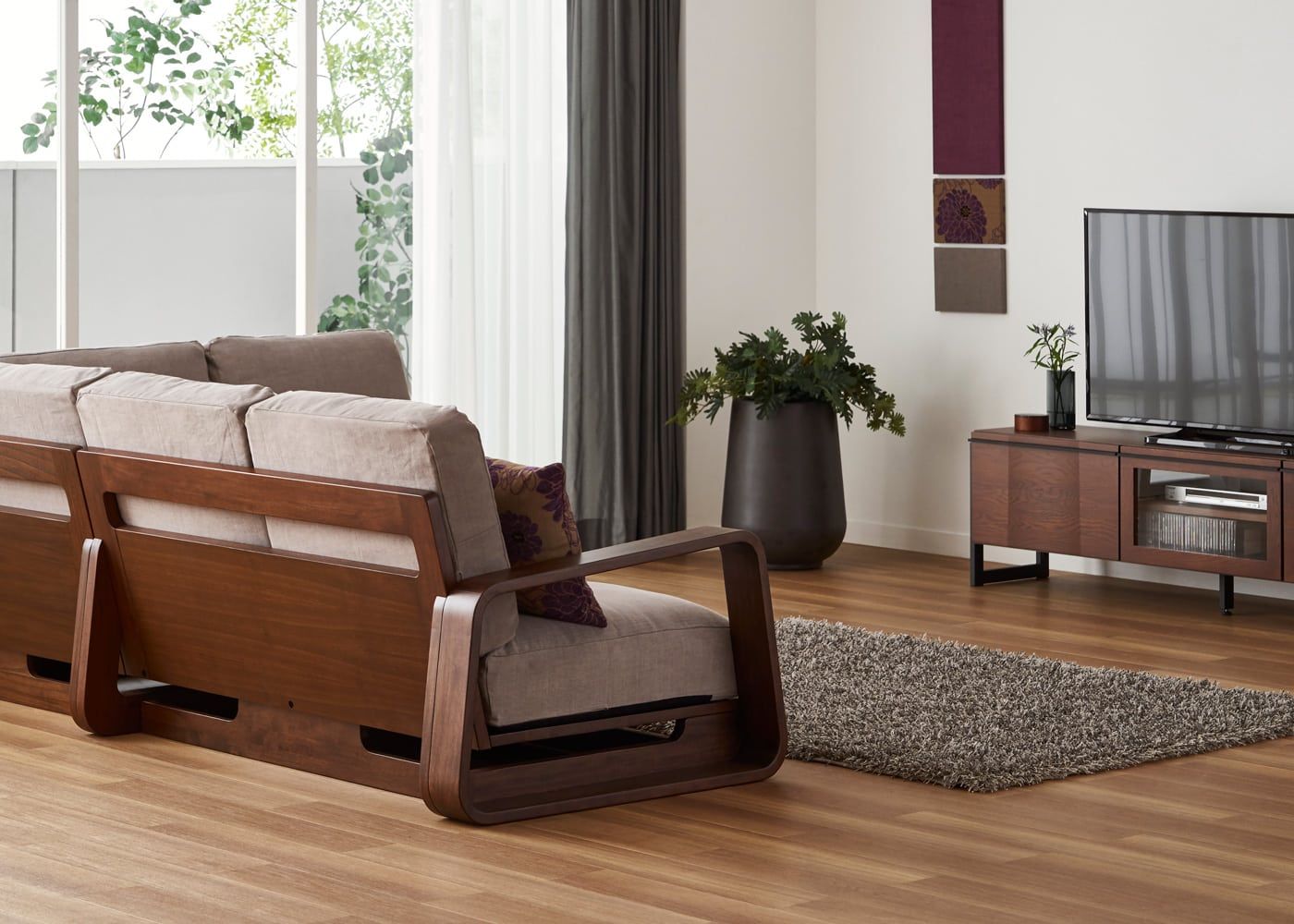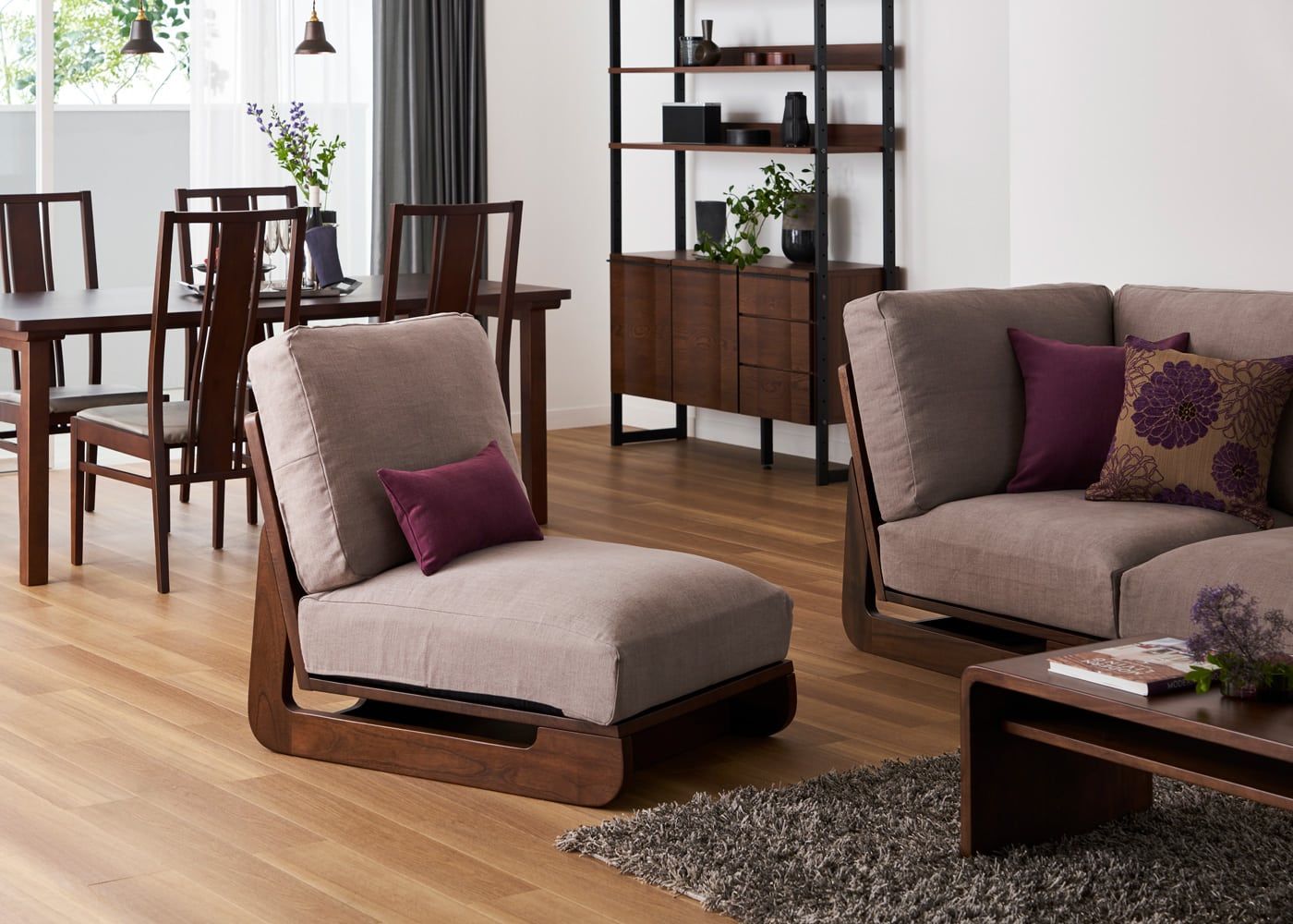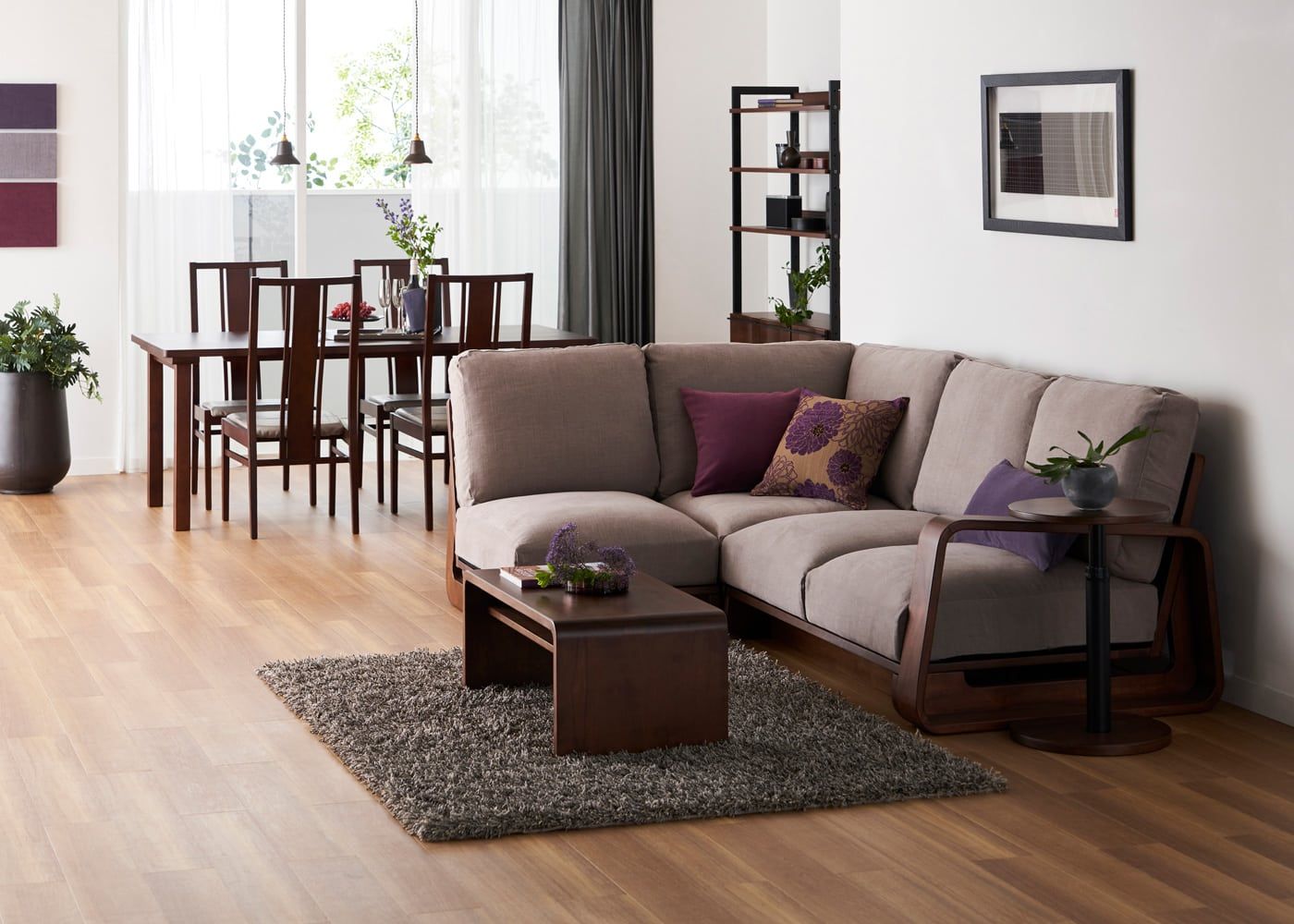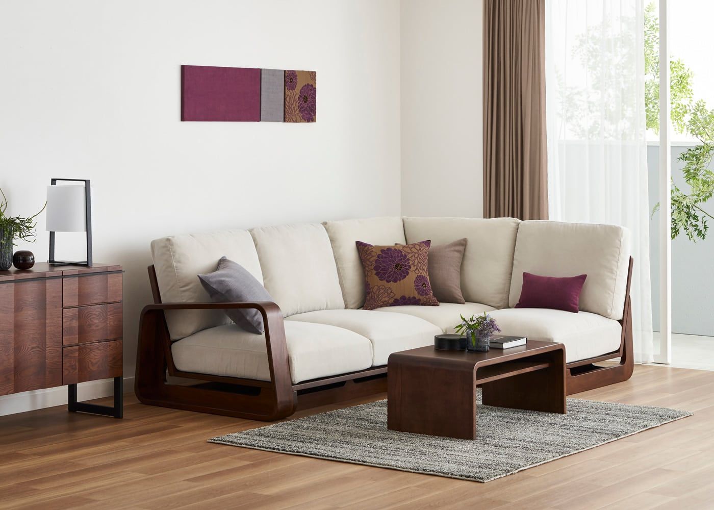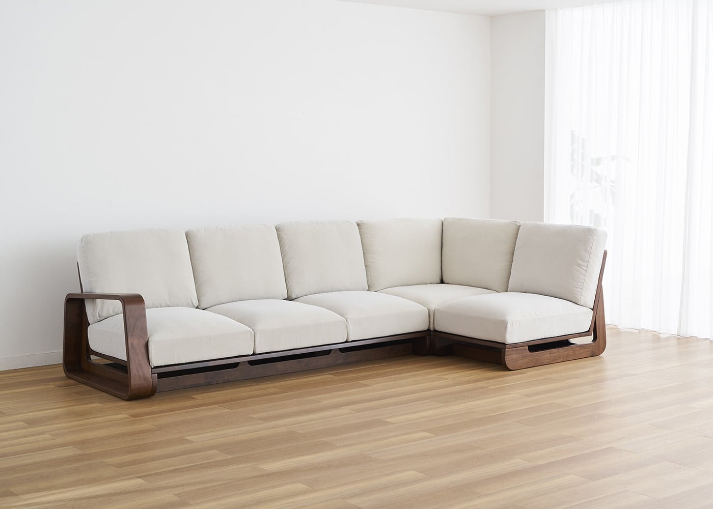 a.flatのソファはカバーの着せ替えができるのが魅力。約100色のファブリックから素材や色を選んで、あなただけのカラーコーディネートをお楽しみください。(別売、受注生産)