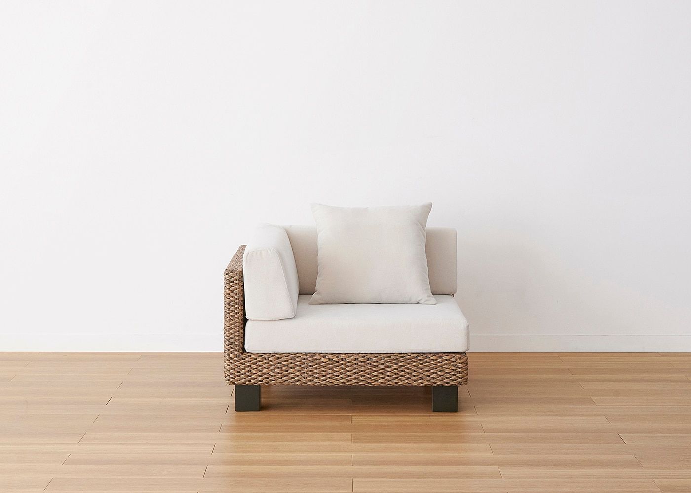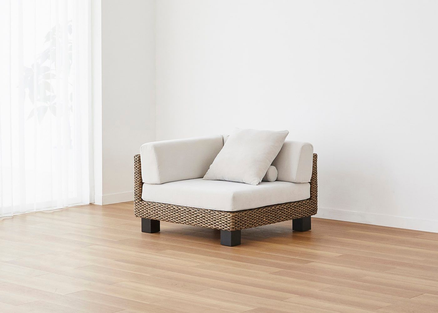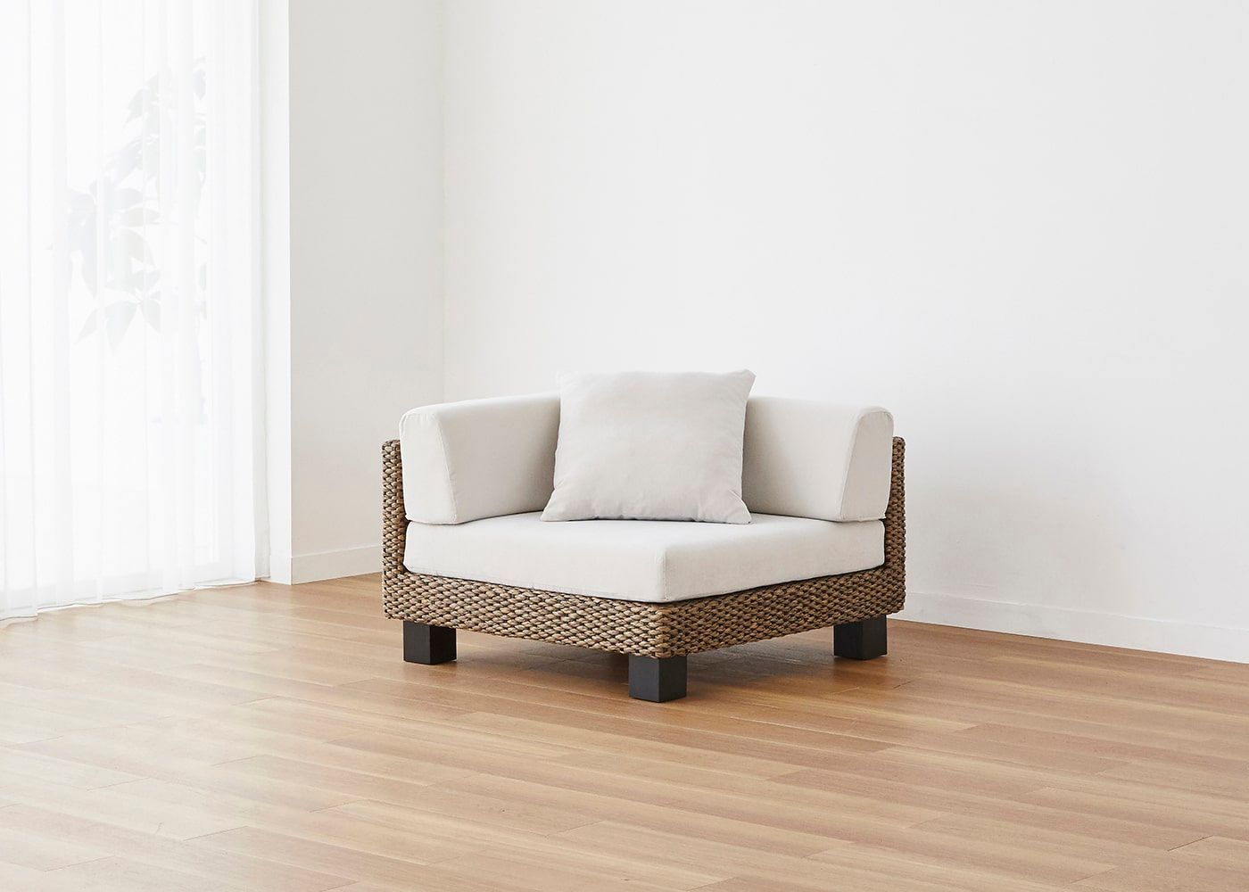 他のサイズと組み合わせる時の起点となるコーナー。このソファパーツがあれば、L字ソファやI字ソファなど、自由にソファセットを組むことができます。