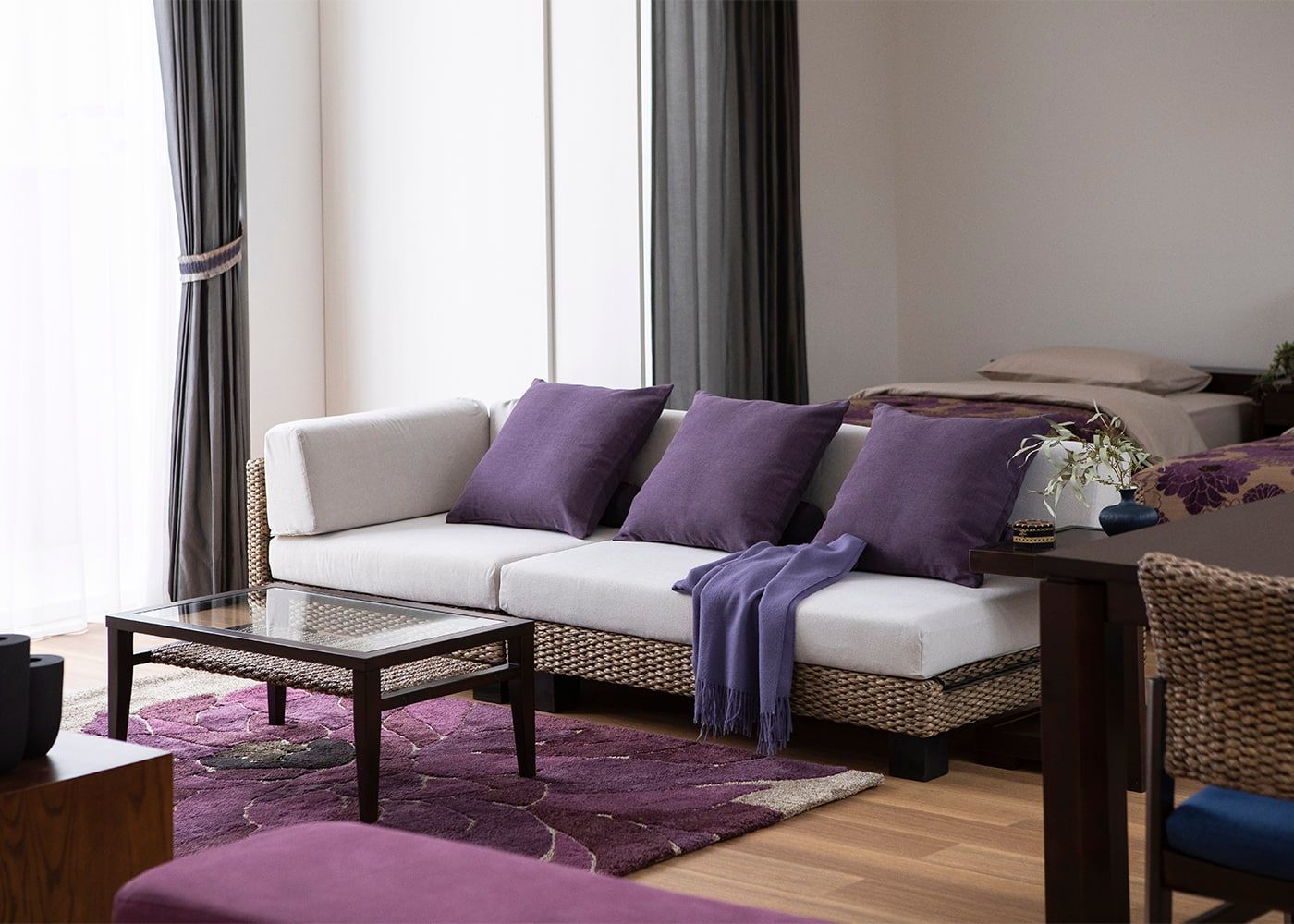 ケイ・ローソファ(ヒヤシンス)は計8タイプの豊富なラインアップで、アームの着脱機能も備えています。ライフステージの変化に応じて組み替えや拡張が可能で、一人暮らしから家族暮らしまで長く使えるソファです。