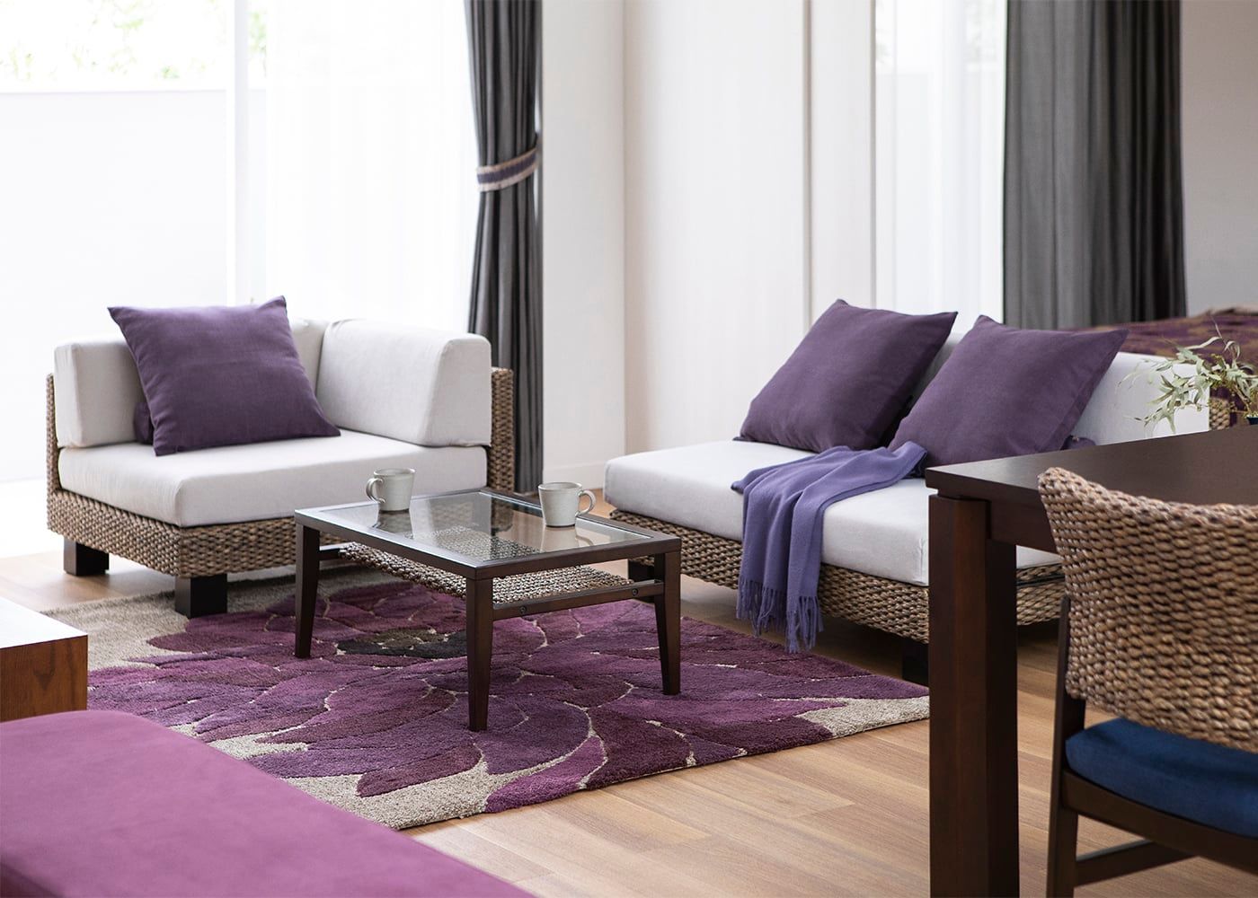 コーナー部分をセパレートすれば、ゲストが来た時には視線が合わせやすいL字型のレイアウトを組むことも可能です。自分の理想的な過ごし方に合わせて、組み合わせパターンを考えてみましょう。(写真は