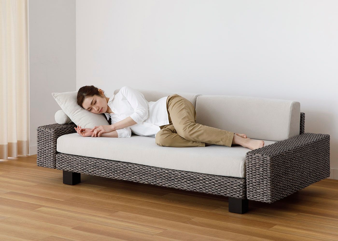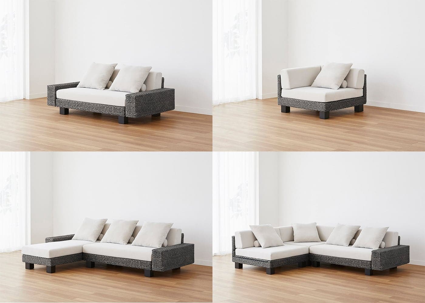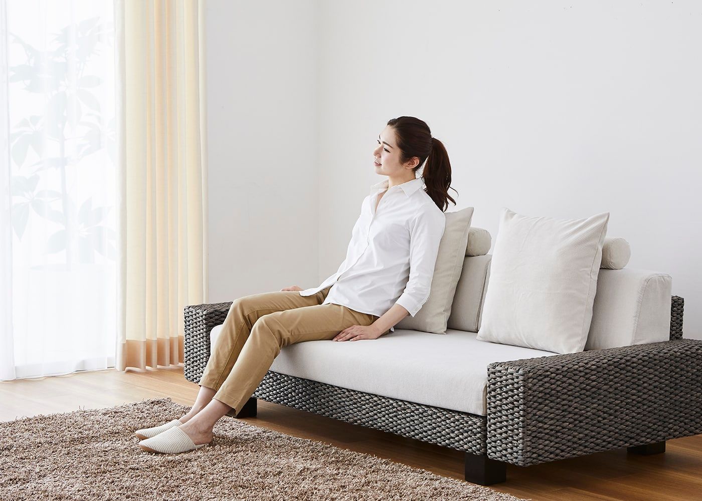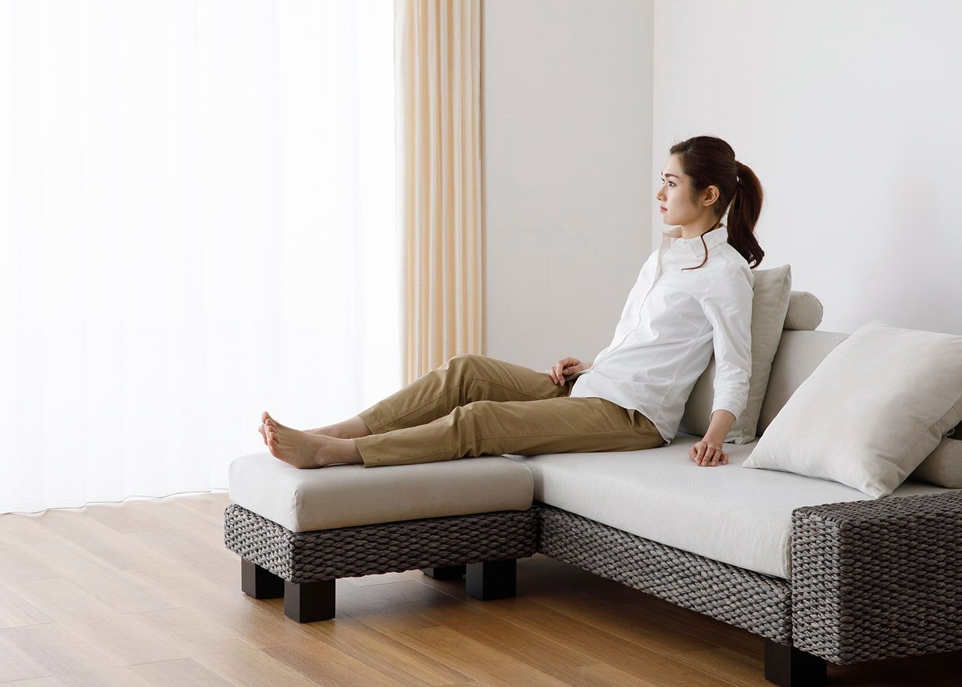a.flatのソファはカバーの着せ替えができるのが魅力。約100色のファブリックから素材や色を選んで、あなただけのカラーコーディネートをお楽しみください。(別売、受注生産)