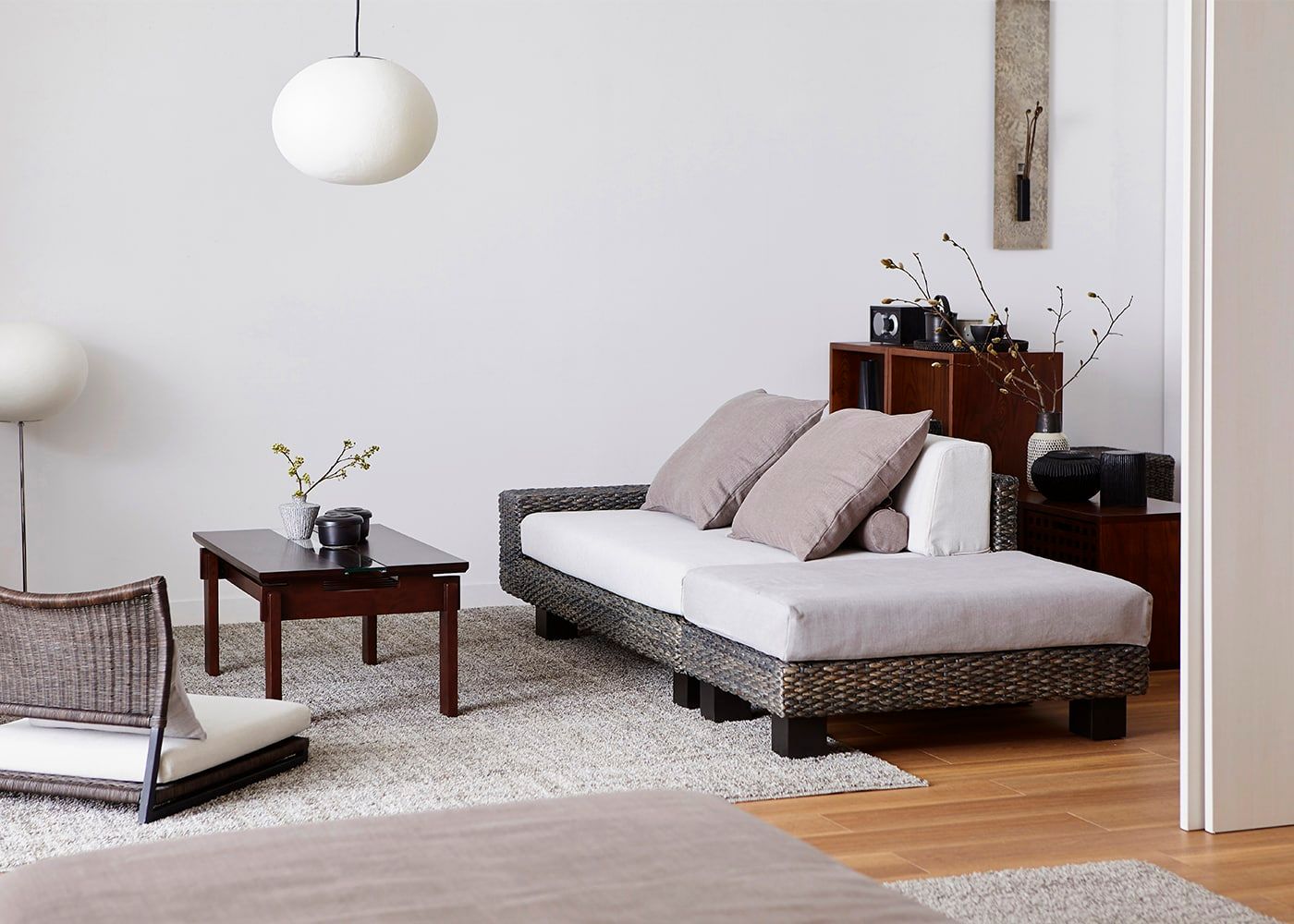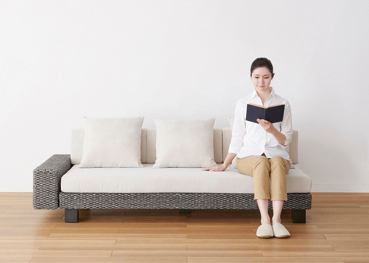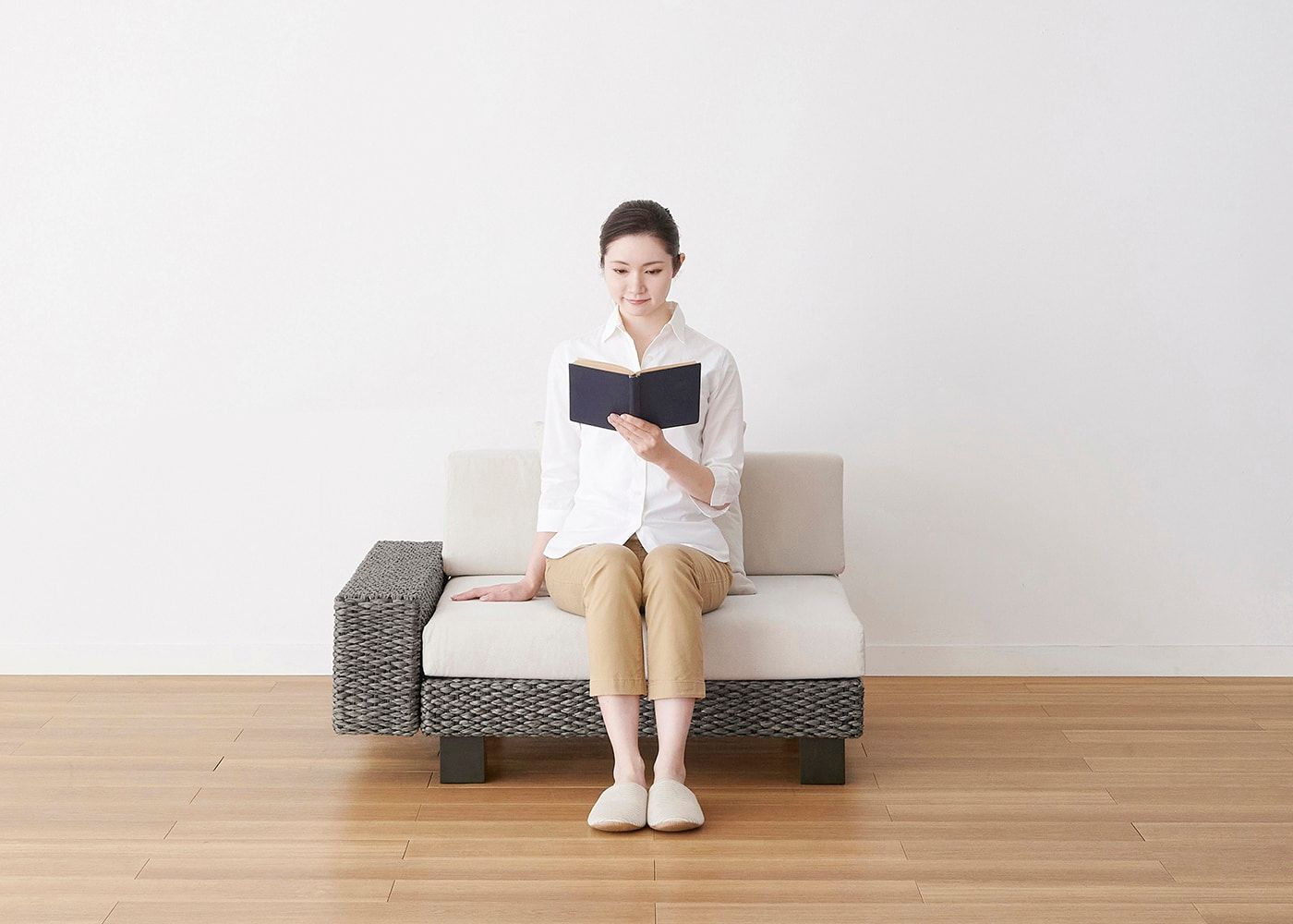 a.flatのソファはカバーの着せ替えができるのが魅力。約100色のファブリックから素材や色を選んで、あなただけのカラーコーディネートをお楽しみください。(別売、受注生産)