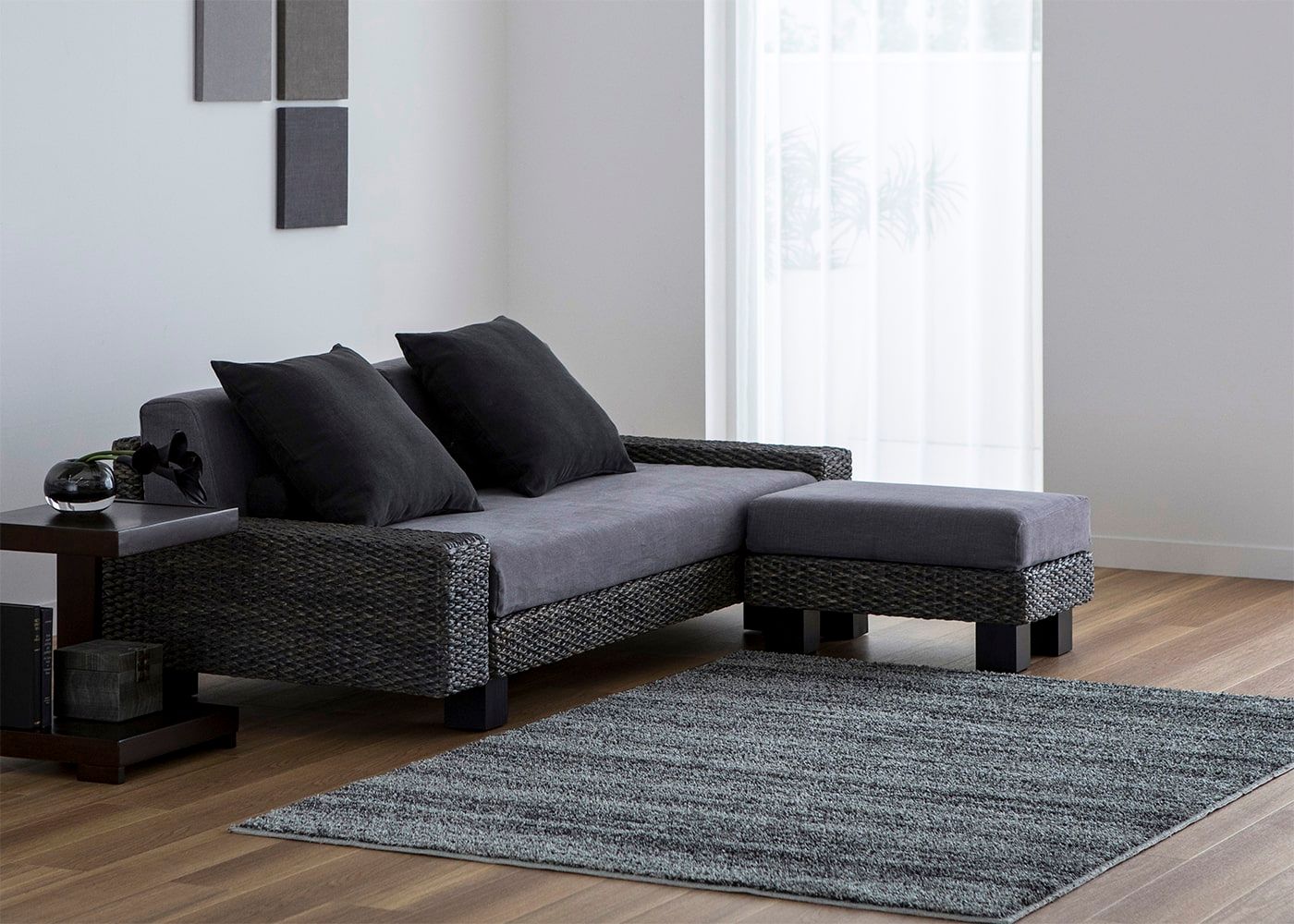部屋を広く見せるためのフレームデザインや全体のプロポーションにこだわりました。フレームにはアジアンリゾートな空間を演出しやすい、自然素材のヒヤシンスをしっかりと編み込んでいます。