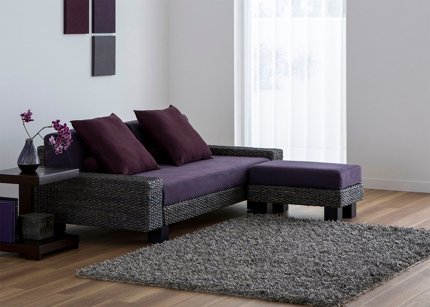ダークグレーのヒヤシンスは、落ち着いた色合いで大人のアジアンリゾートを演出するカラーです。素材に塗料をしっかり浸透させ、塗装を何度も繰り返し、時間をかけて着色しています。