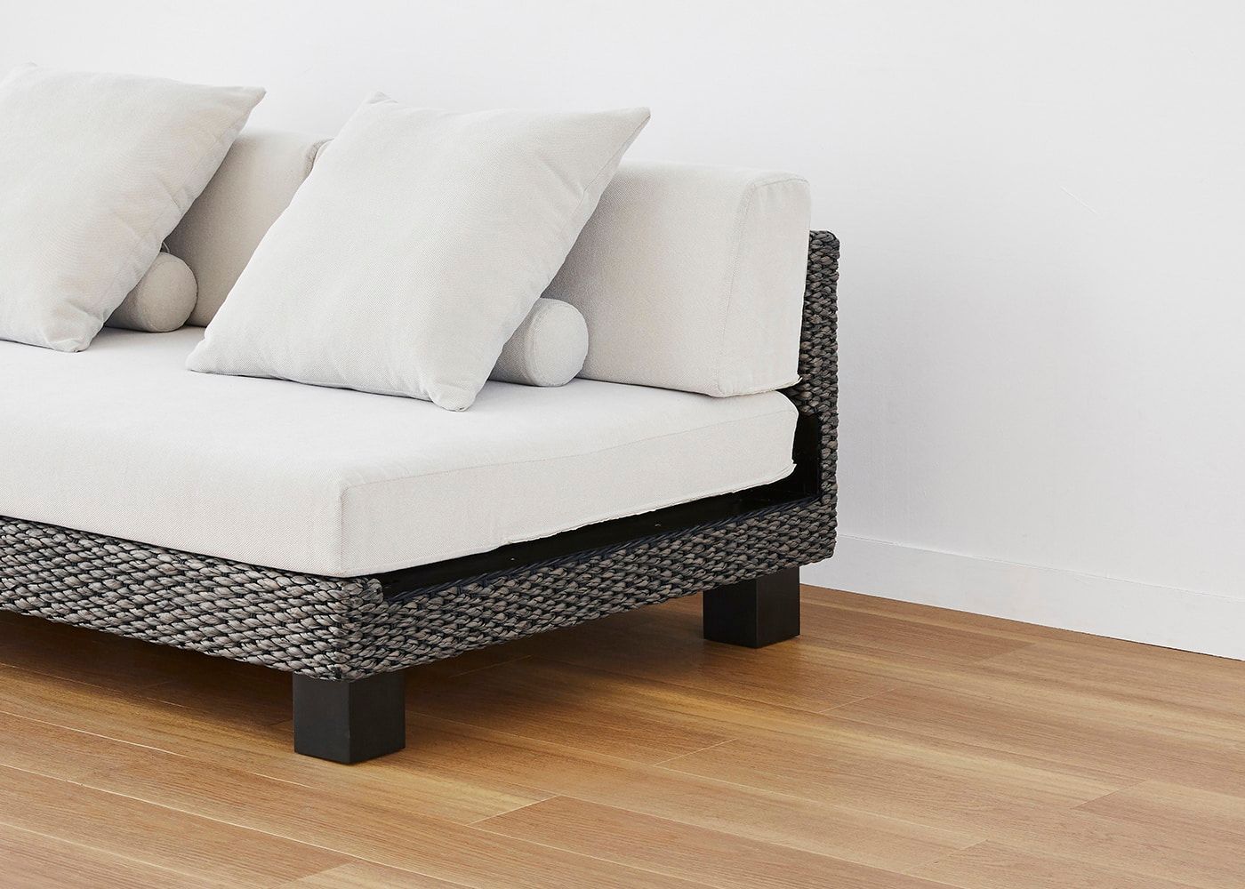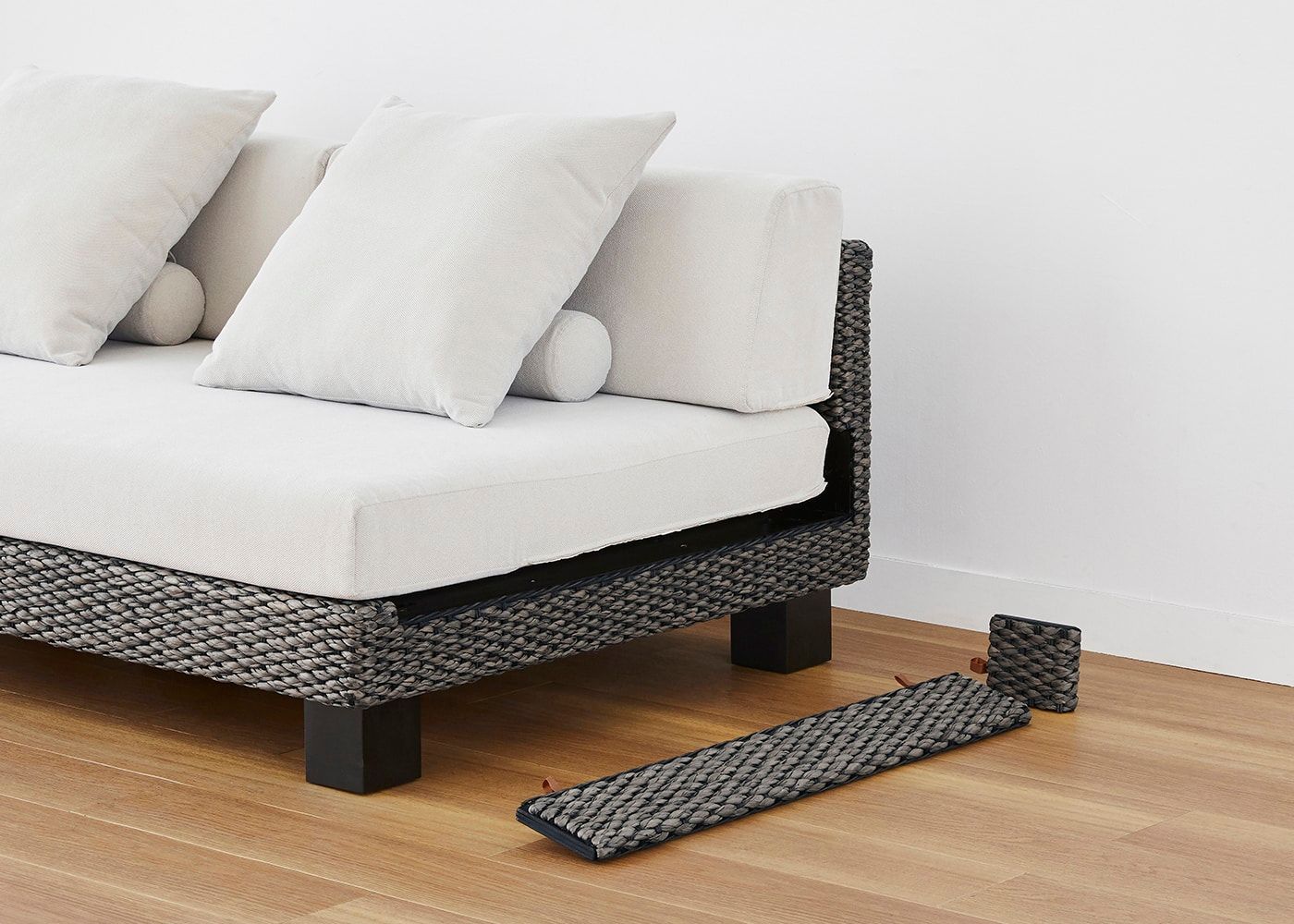 アームを外した部分の隙間を埋めるパネルを取り付けると、片アームソファの完成です。