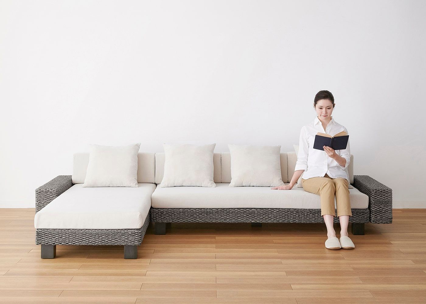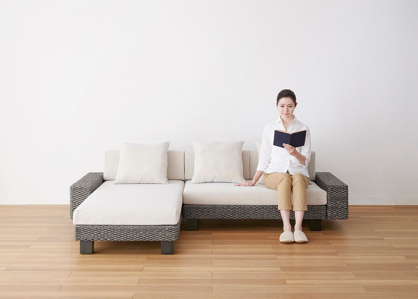 a.flatのソファはカバーの着せ替えができるのが魅力。約100色のファブリックから素材や色を選んで、あなただけのカラーコーディネートをお楽しみください。(別売、受注生産)
