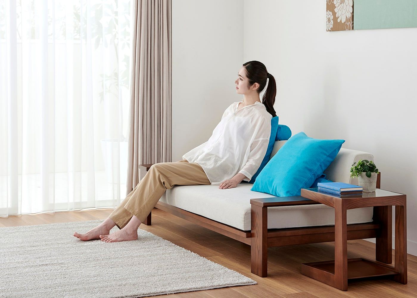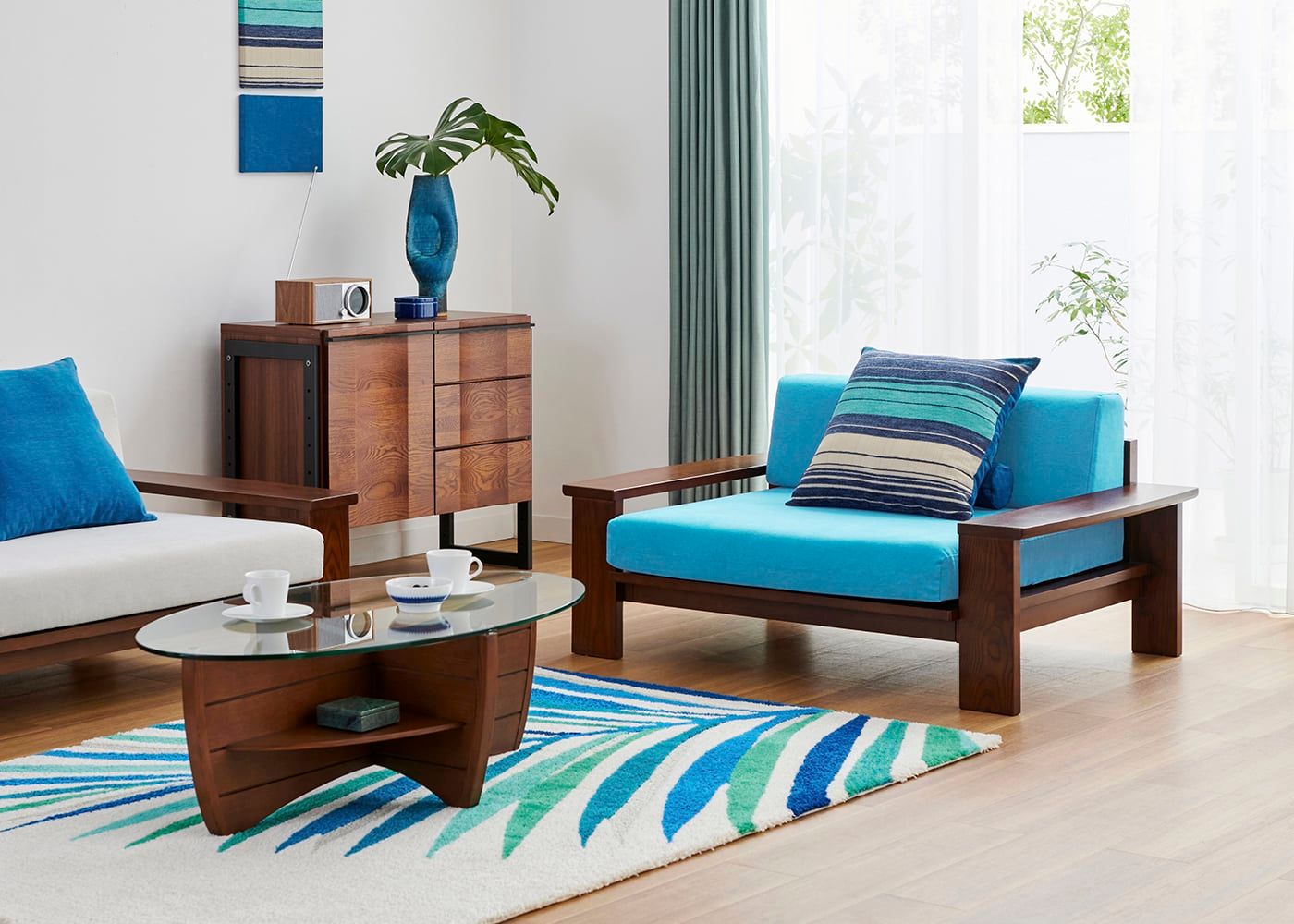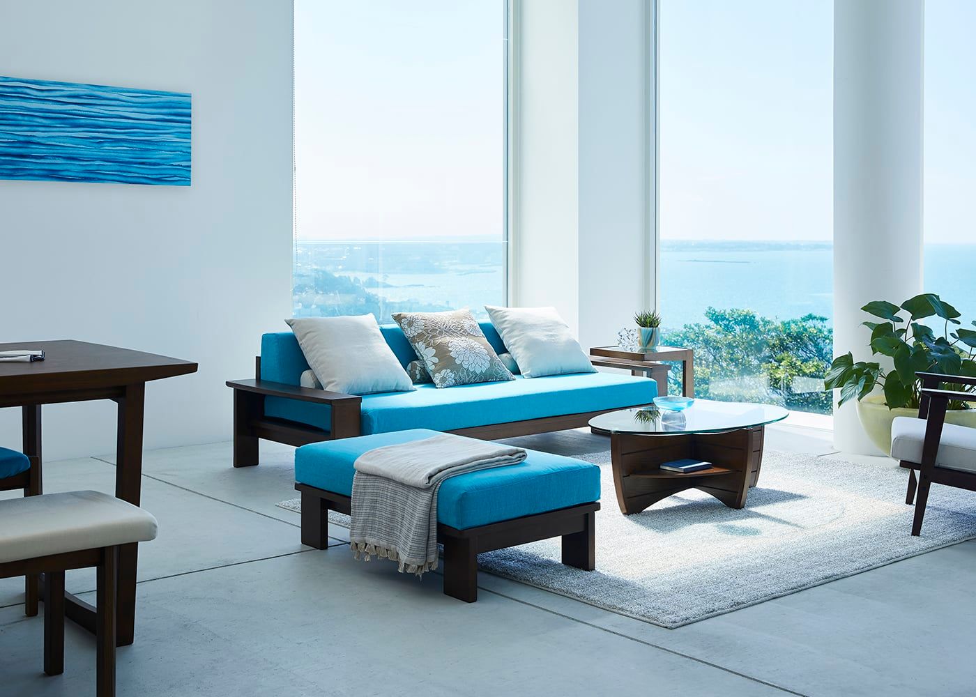クッションに色を加えるだけでもアクセントとなり、お部屋の印象を大きく変えてくれます。リゾートの風と自然を感じるa.flatスタイルカラーの中から、あなただけの組み合わせをお楽しみください。(別売、受注生産)