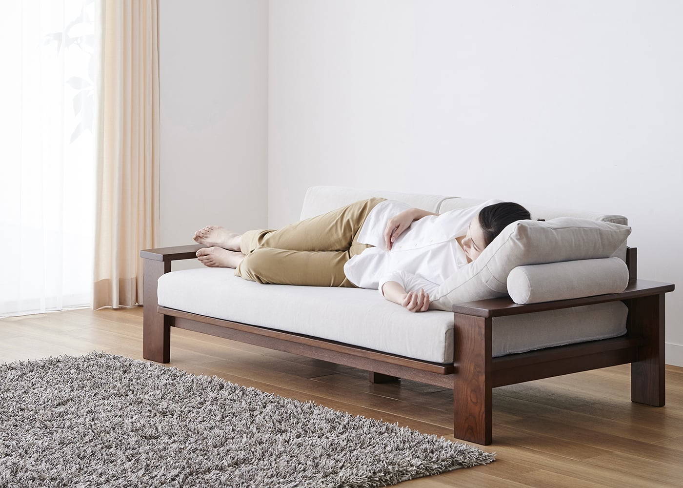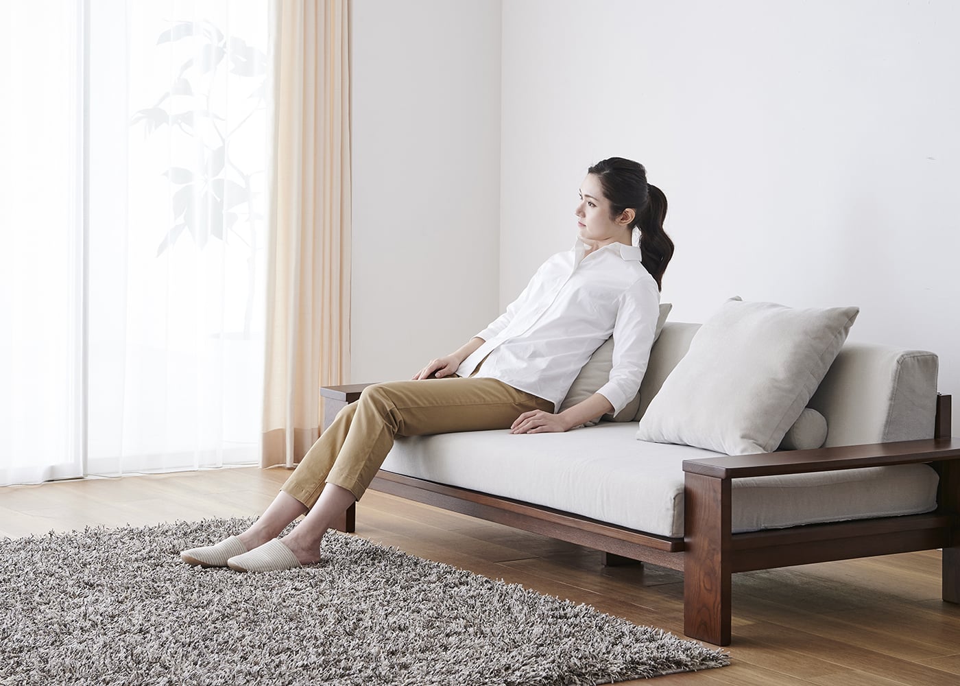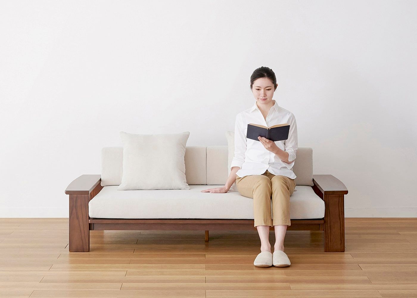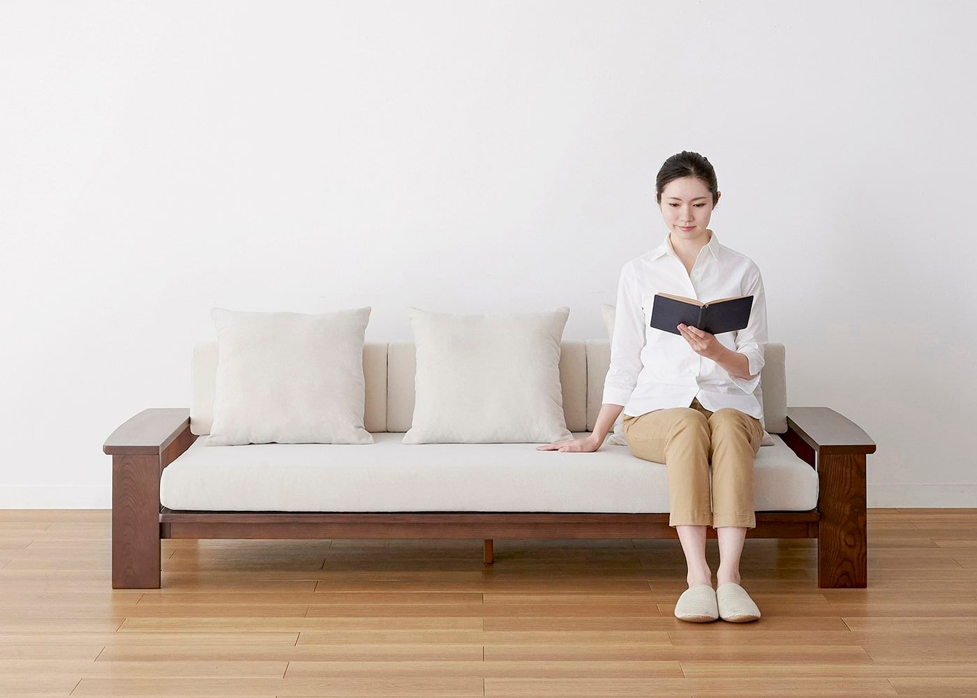 a.flatのソファはカバーの着せ替えができるのが魅力。約100色のファブリックから素材や色を選んで、あなただけのカラーコーディネートをお楽しみください。(別売、受注生産)