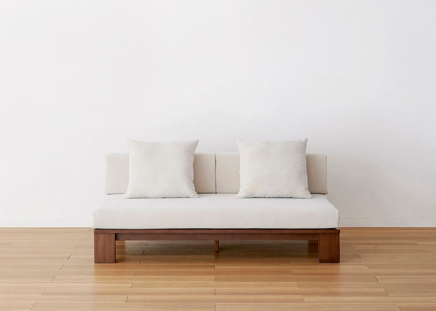 ベンチから両アームのソファに組み替えた状態です。その時の間取りや部屋のイメージに合わせて、組み替えできるのがセイル・ローソファの大きなメリットの一つです。(写真は2.5人掛け 両アームに組み替えした例)≫専用アームと組み替え方法はこちら