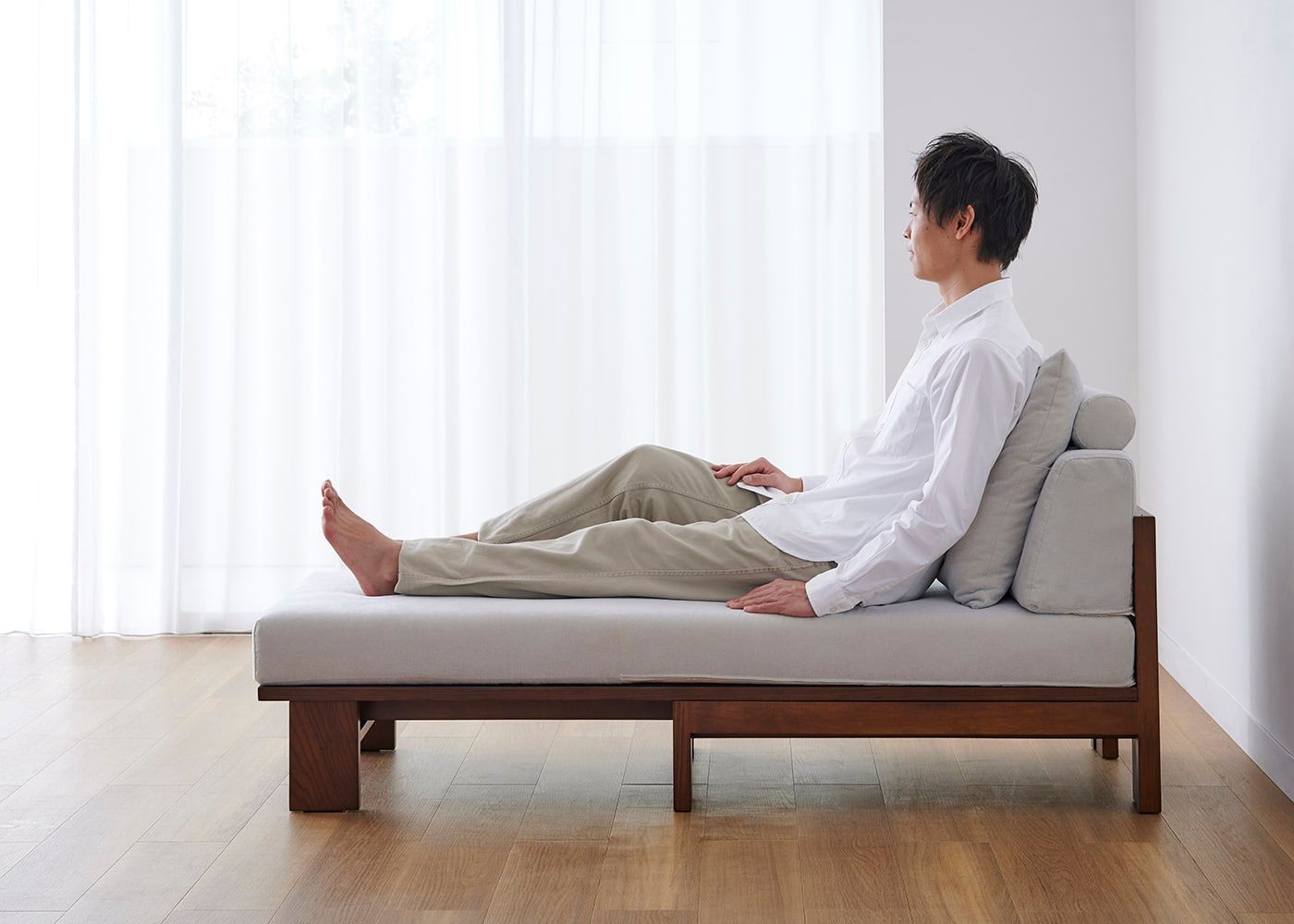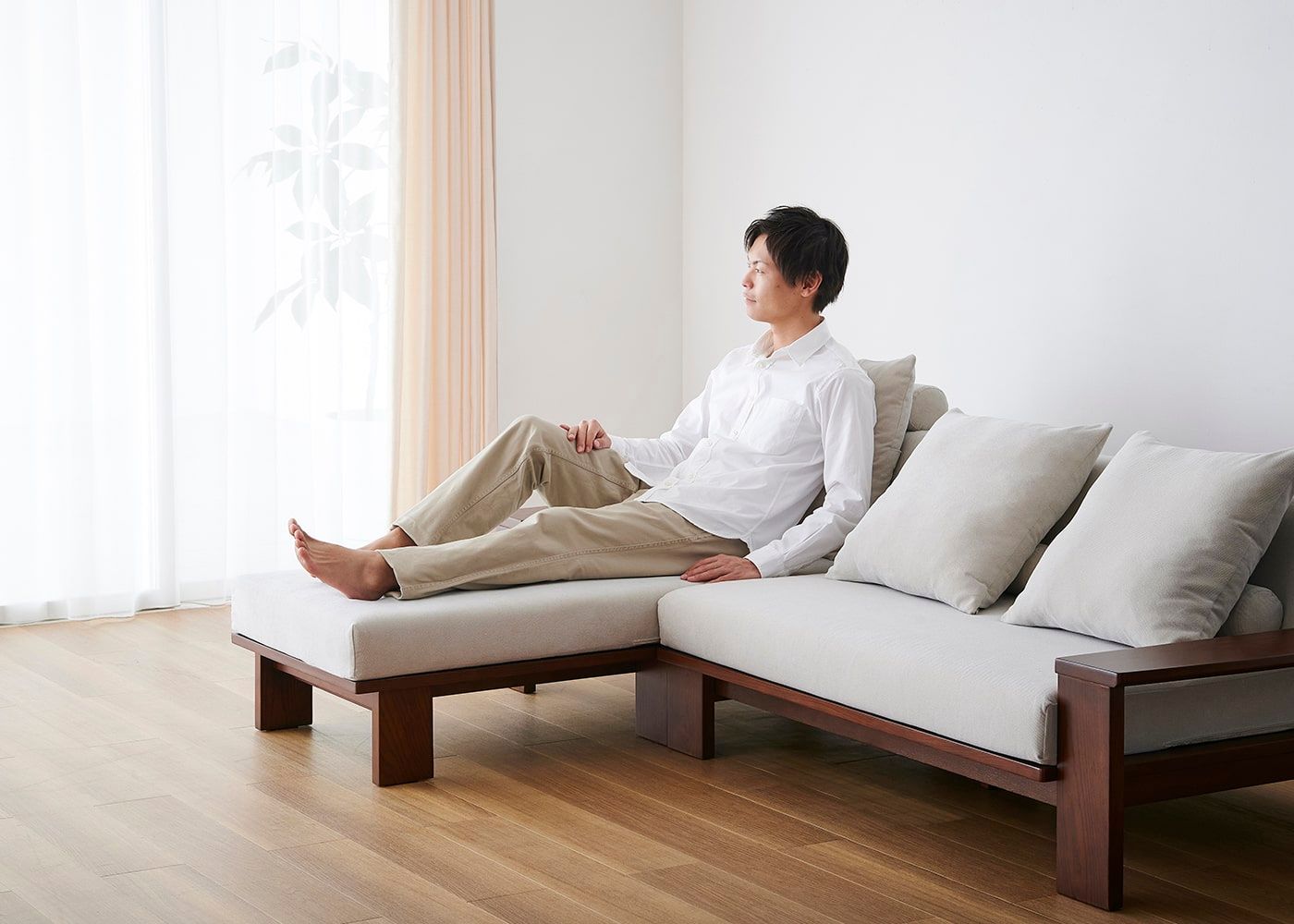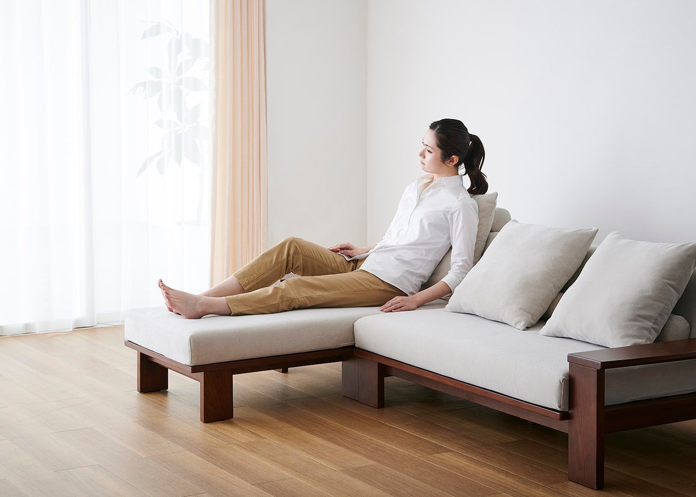 a.flatのソファはカバーの着せ替えができるのが魅力。約100色のファブリックから素材や色を選んで、あなただけのカラーコーディネートをお楽しみください。(別売、受注生産)