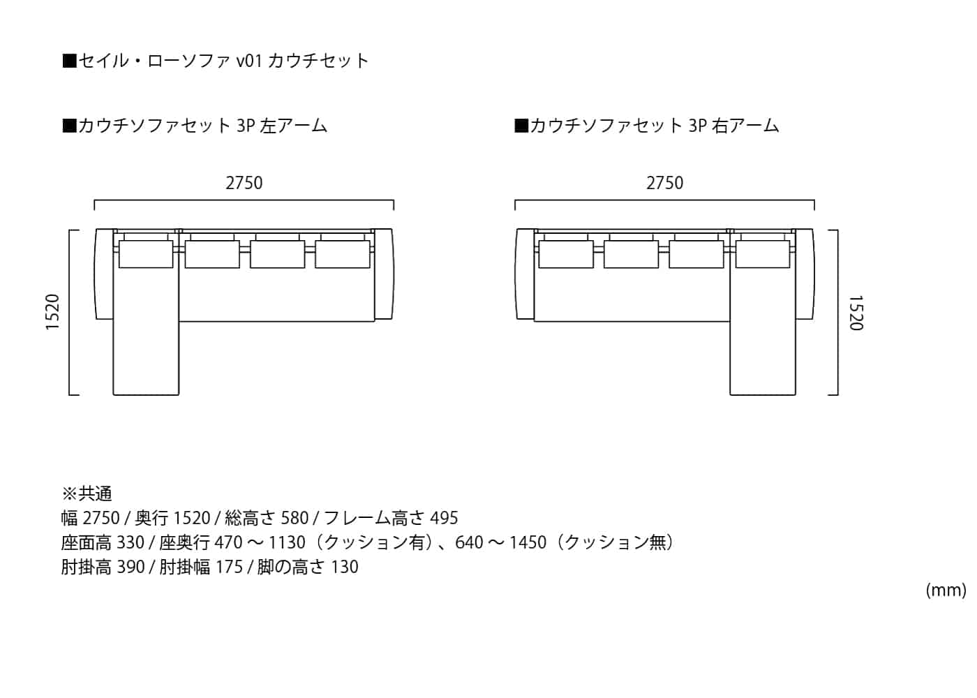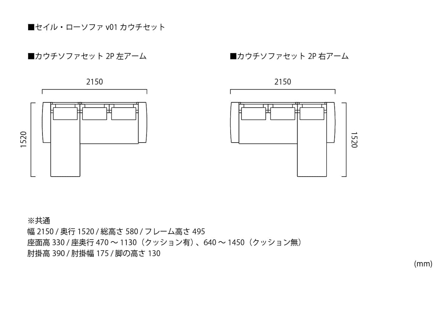 2人掛け 右アームカウチ 左アーム