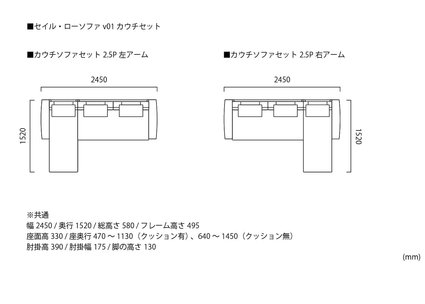 2.5人掛け 左アーム ・ カウチ 右アーム