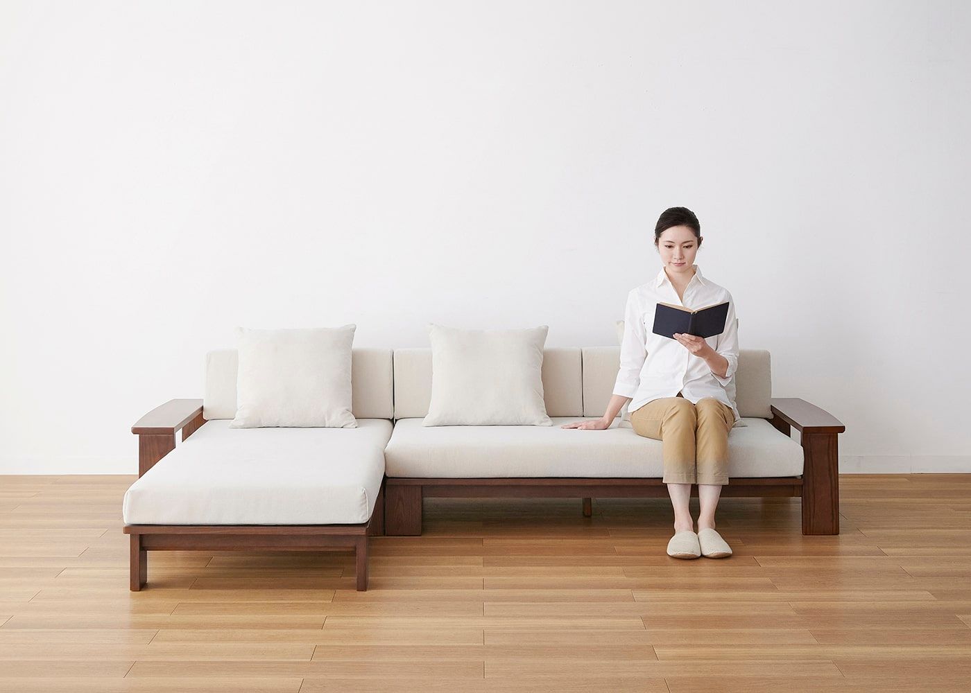 a.flatのソファはカバーの着せ替えができるのが魅力。約100色のファブリックから素材や色を選んで、あなただけのカラーコーディネートをお楽しみください。(別売、受注生産)